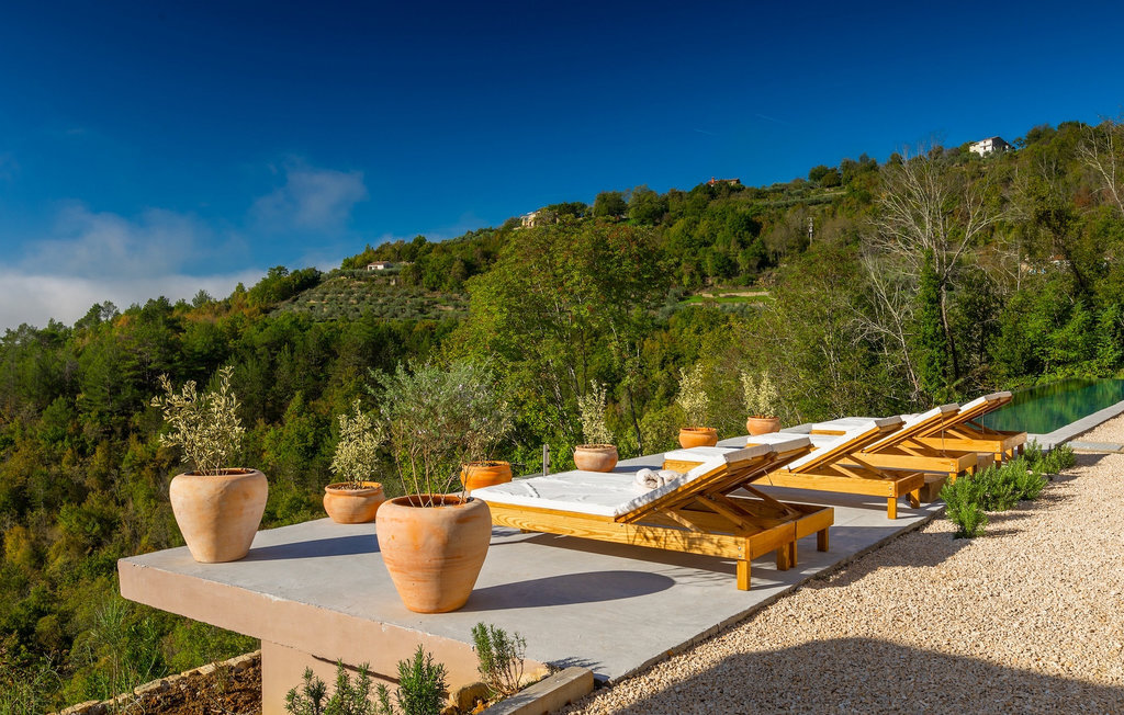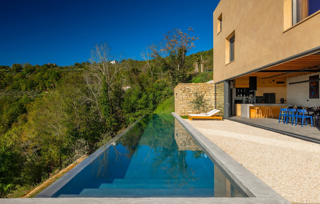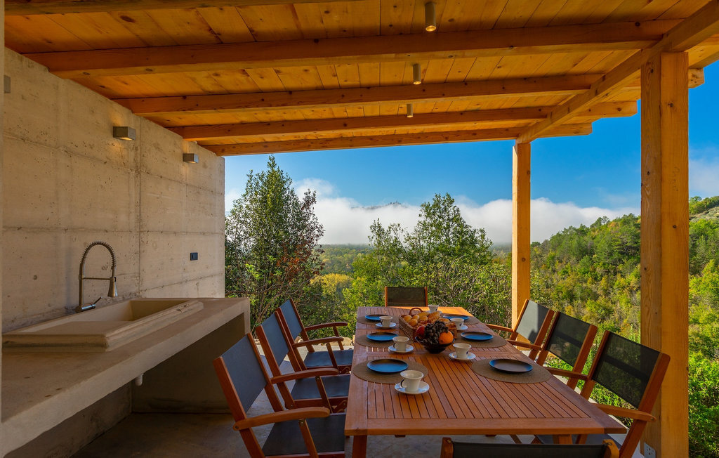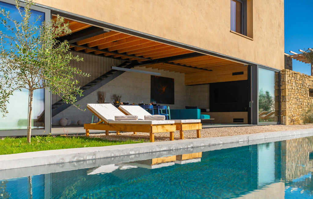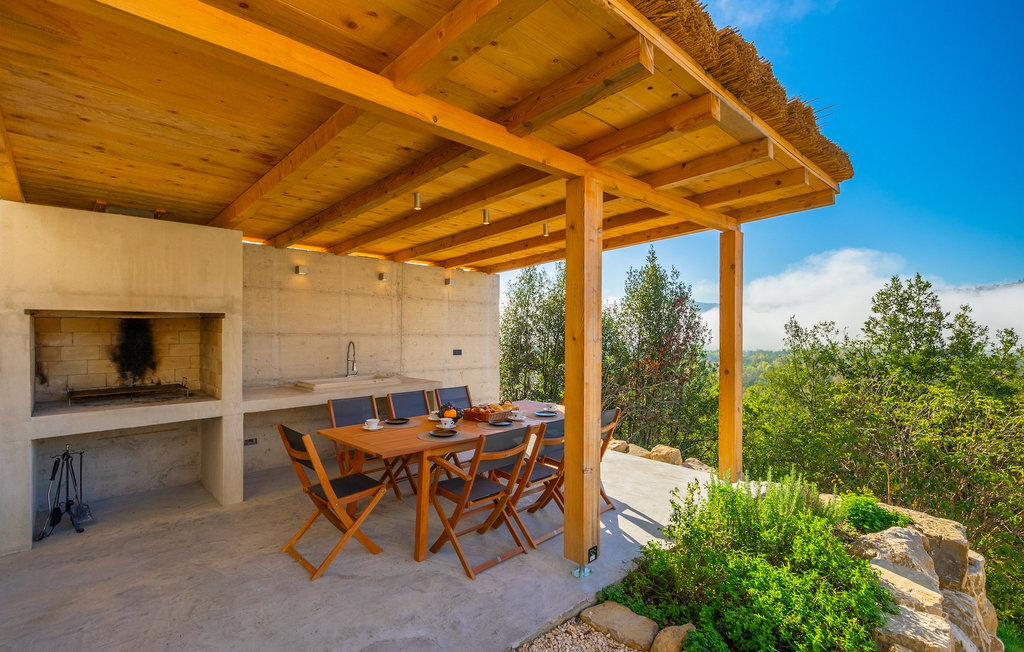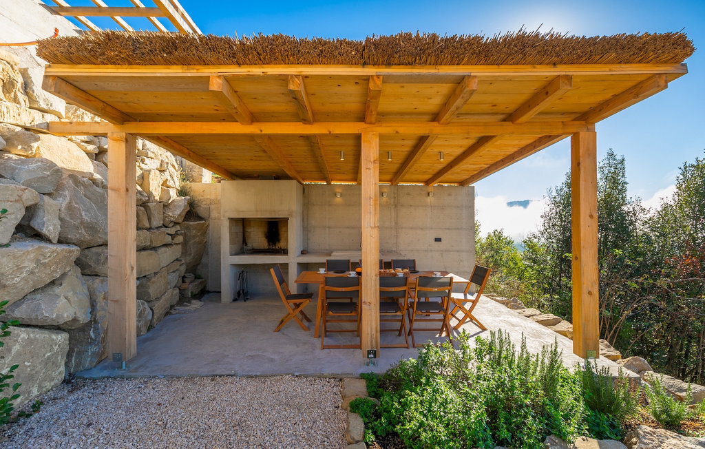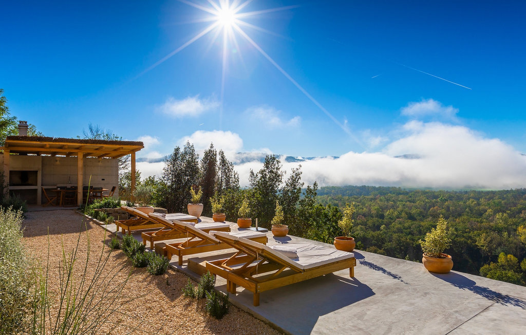 Profitez de l'intimité d'un terrain d'environ 13000m2, où la maison de rêve est vraiment mise en valeur. La rafraîchissante piscine privée à débordement est le cœur de cette villa et l'endroit où vous passerez le plus clair de vos vacances reposantes. Détendez-vous sur l'une des confortables chaises longues et laissez votre regard vagabonder. Sur la vaste terrasse, vous pouvez préparer des spécialités locales sur le barbecue au charbon de bois et les déguster directement avec vos proches à la table à manger couverte.