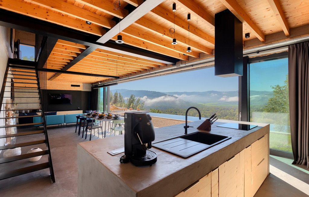 L'intérieur élégamment aménagé de la Villa Terra Motovun vous étonnera. Répartie sur trois étages, cette villa offre suffisamment de place et de confort pour accueillir jusqu'à 8 hôtes. Au rez-de-chaussée, vous entrez dans le salon ouvert et climatisé avec une cuisine entièrement équipée et un coin repas. Au même niveau, vous pourrez profiter des bienfaits du sauna et du jacuzzi dans l'espace spa. Une douche, les toilettes pour les invités et la buanderie complètent cet étage. Au premier et au deuxième étage, deux chambres à coucher vous promettent des nuits reposantes - à moins que vous ne préfériez profiter de la superbe vue avec un ciel étoilé jusque tard dans la nuit. :-) Chaque chambre dispose d'un grand lit double confortable et d'une salle de bain privée avec douche.