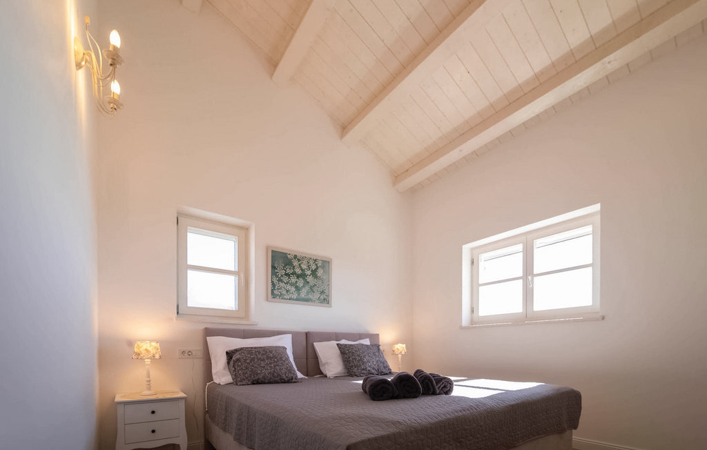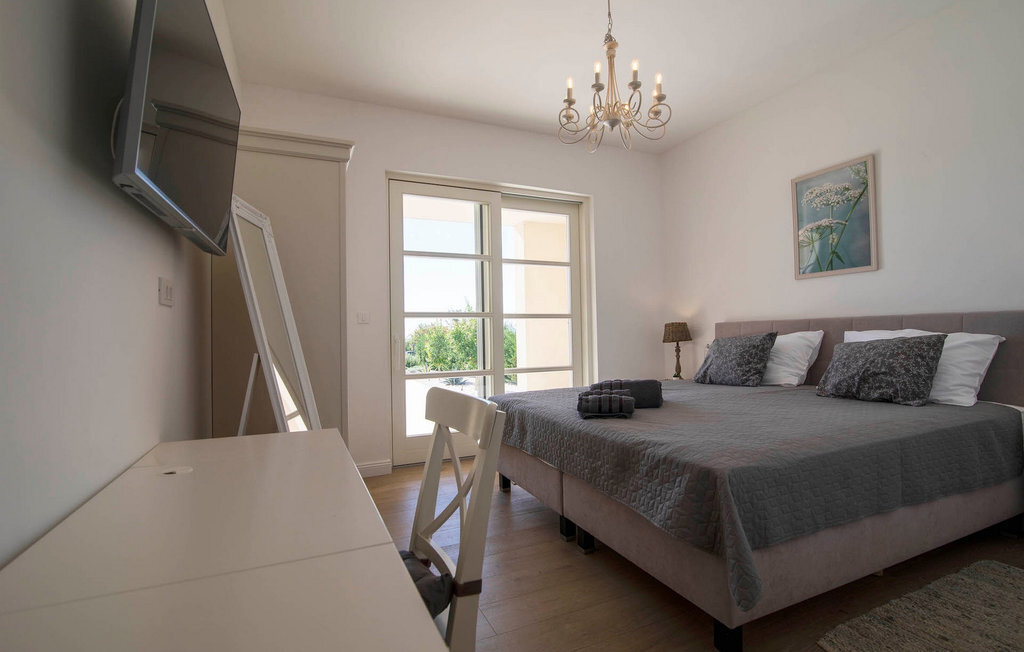 Si vous cherchez une villa pour des vacances parfaites, la Villa Luna Smoljanci est un bon choix pour vous. Cette charmante villa dispose de quatre chambres pouvant accueillir jusqu'à huit personnes. Les poutres en bois qui s'étendent sur les plafonds de toutes les pièces confèrent à la villa un charme particulier. Trois chambres à coucher se trouvent au premier étage. Elles sont spacieuses et confortables et disposent chacune d'une salle de bain privée, de la climatisation et d'un accès à un balcon commun. La quatrième chambre, avec salle de bain privée et climatisation, se trouve au rez-de-chaussée. Dans trois chambres, vous trouverez deux lits simples qui peuvent être réunis pour former un lit double. Dans la quatrième chambre, il y a un lit double. Deux chambres ont une télévision. Au rez-de-chaussée de la villa, vous trouverez un salon avec un canapé et une télévision, relié à la salle à manger et à une cuisine entièrement équipée. Toute la pièce est climatisée. À côté de la maison se trouve une terrasse couverte avec une table à manger où vous pourrez déguster de délicieux plats préparés sur le barbecue qui est à votre disposition. Dans le jardin de la villa, vous trouverez une piscine et des chaises longues où vous pourrez vous détendre en lisant un livre ou en buvant une boisson rafraîchissante, ainsi qu'une table de ping-pong pour vous divertir. Le terrain est entièrement clôturé et dispose d'un parking privé pour 4 voitures. Réservez votre logement à la Villa Luna Smoljanci et passez des vacances inoubliables en famille ou entre amis.La Villa Luna Smoljanci est située au cœur de l'Istrie rurale, à mi-chemin entre Pazin et Pula. L'Istrie centrale est connue pour ses oliveraies et ses vignobles, ainsi que pour ses petites villes médiévales pittoresques. Dans la ville voisine de Svetvinenat, on trouve des restaurants, des cafés, des vignobles et des magasins. Cette charmante localité n'est pas seulement connue pour ses sites historiques et culturels, mais aussi pour son excellente et délicieuse cuisine istrienne. Nous vous recommandons de goûter à des spécialités telles que le prosciutto d'Istrie fait maison, la pâte d'Istrie (Fui) et les spécialités méditerranéennes faites maison. De nombreux itinéraires de randonnée et de vélo sont à votre disposition dans cette région pour une véritable expérience de l'Istrie. Les célèbres villes animées le long de la magnifique côte ainsi que les plages ne sont qu'à une courte distance en voiture à travers les environs pittoresques.
