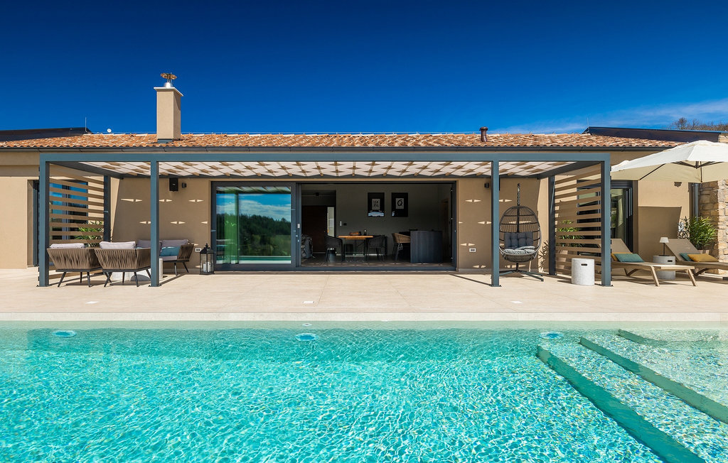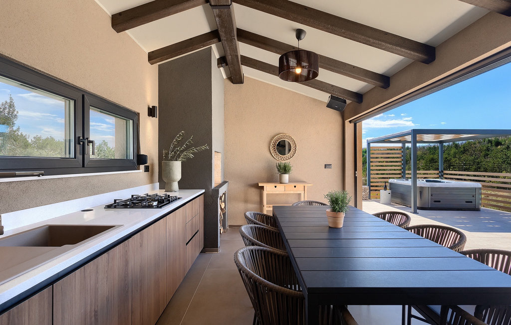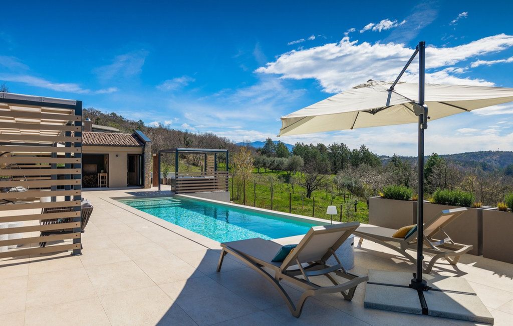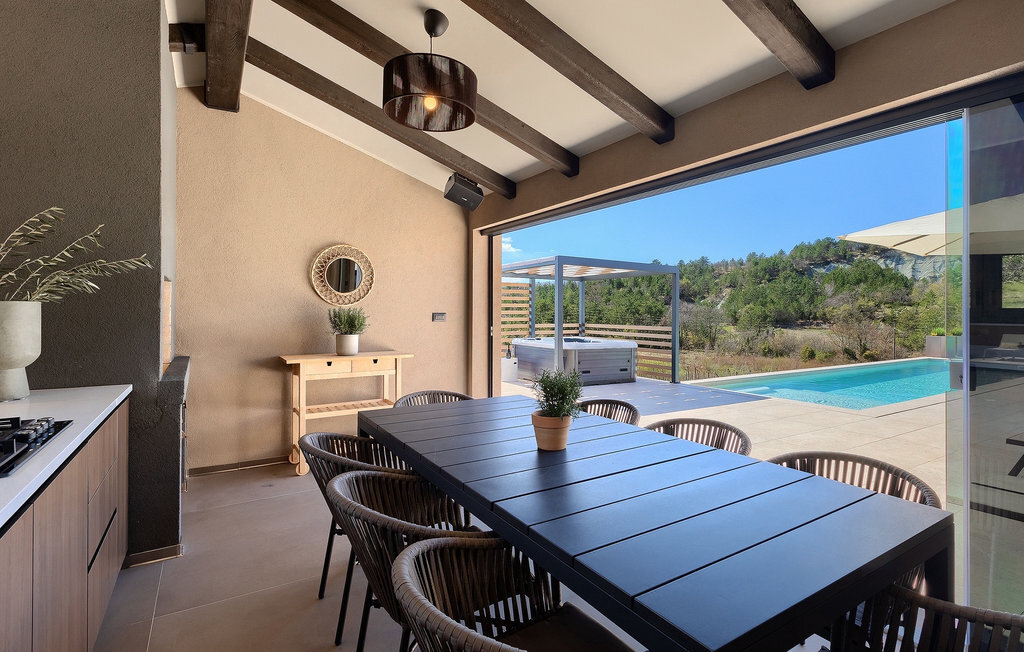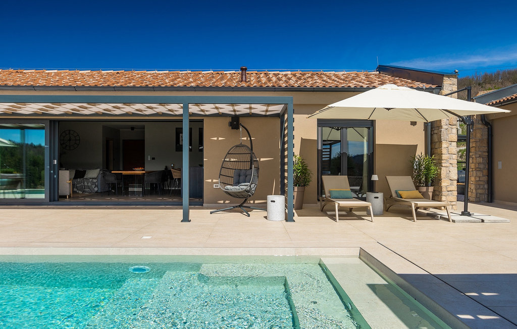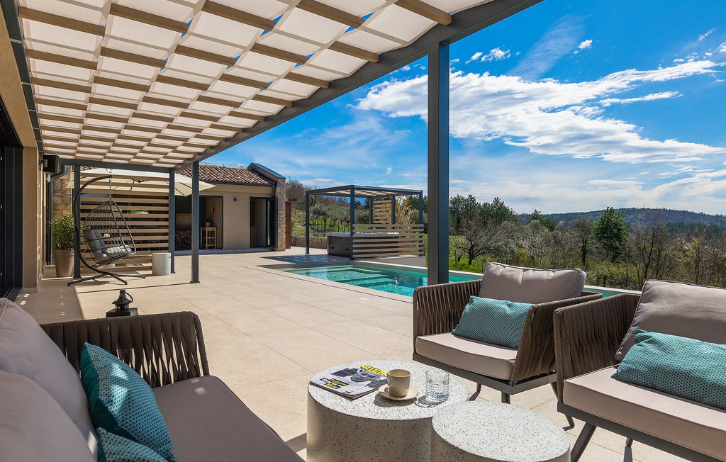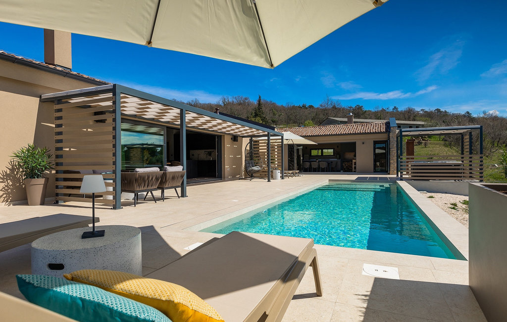Bien-être à l'extérieur : Location de vacances disposant de chaises-longues et d'un ou plusieurs équipements tels que piscine extérieure, jacuzzi extérieur, lit à baldaquin de jardin etc...