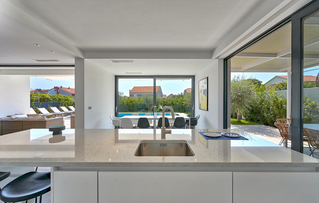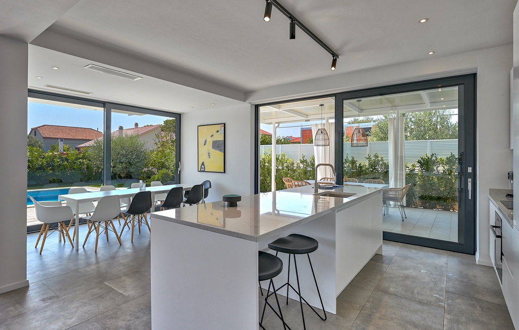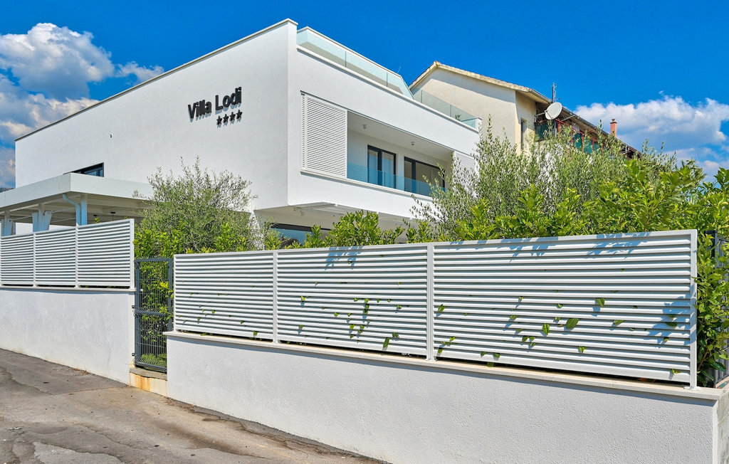 L'étonnante et moderne Villa Lodi est située à Kastel Stafilic, entre les sites de Split et de Trogir, classés au patrimoine mondial de l'UNESCO. La villa est située à seulement 100 mètres de la mer et à 5 minutes à pied du centre-ville. Cette belle villa peut accueillir jusqu'à 11 personnes. La villa est répartie sur trois étages : le rez-de-chaussée, le premier étage et le deuxième étage avec une grande terrasse. Le rez-de-chaussée de la villa se compose d'un magnifique et agréable salon avec cuisine et salle à manger. La villa offre 5 chambres à coucher magnifiquement aménagées, chacune avec climatisation et télévision. Le premier étage est conçu comme une zone de couchage et offre 4 chambres à coucher confortables.