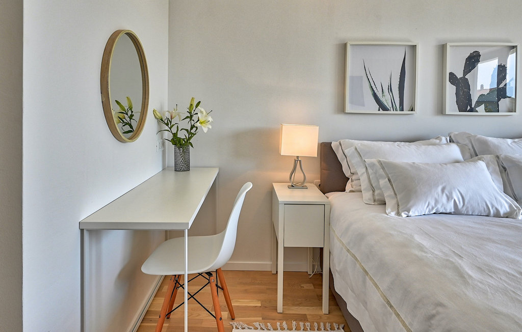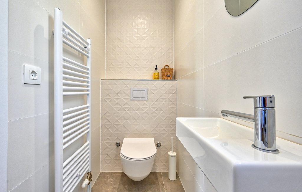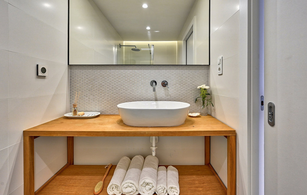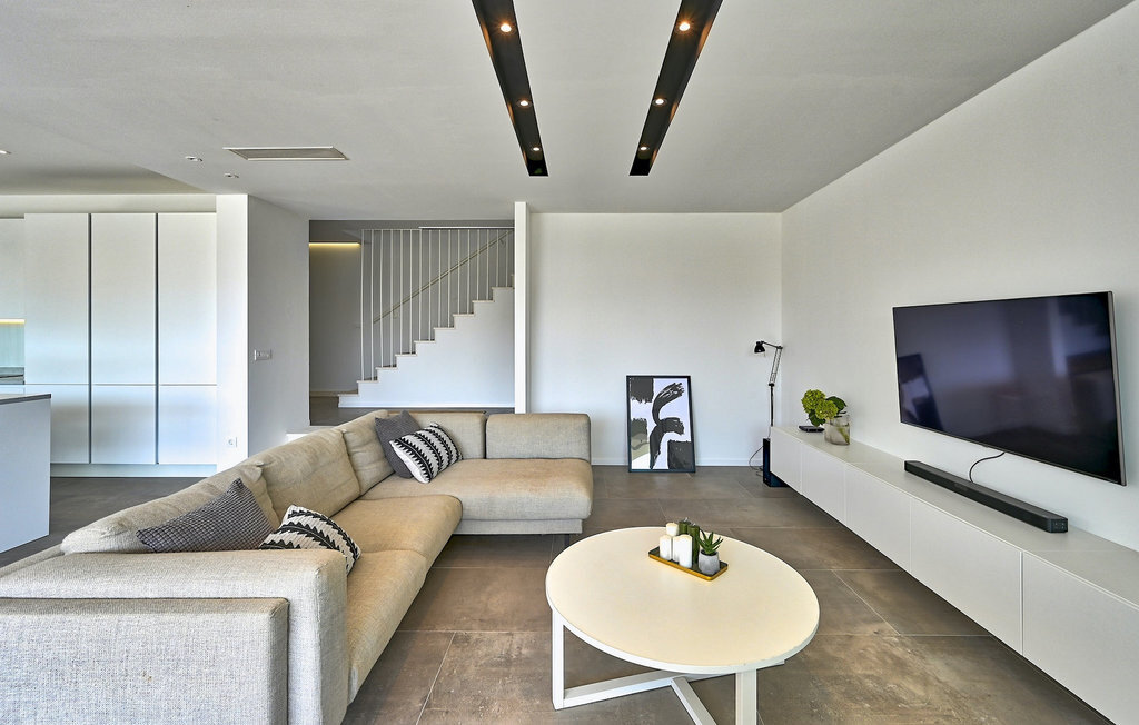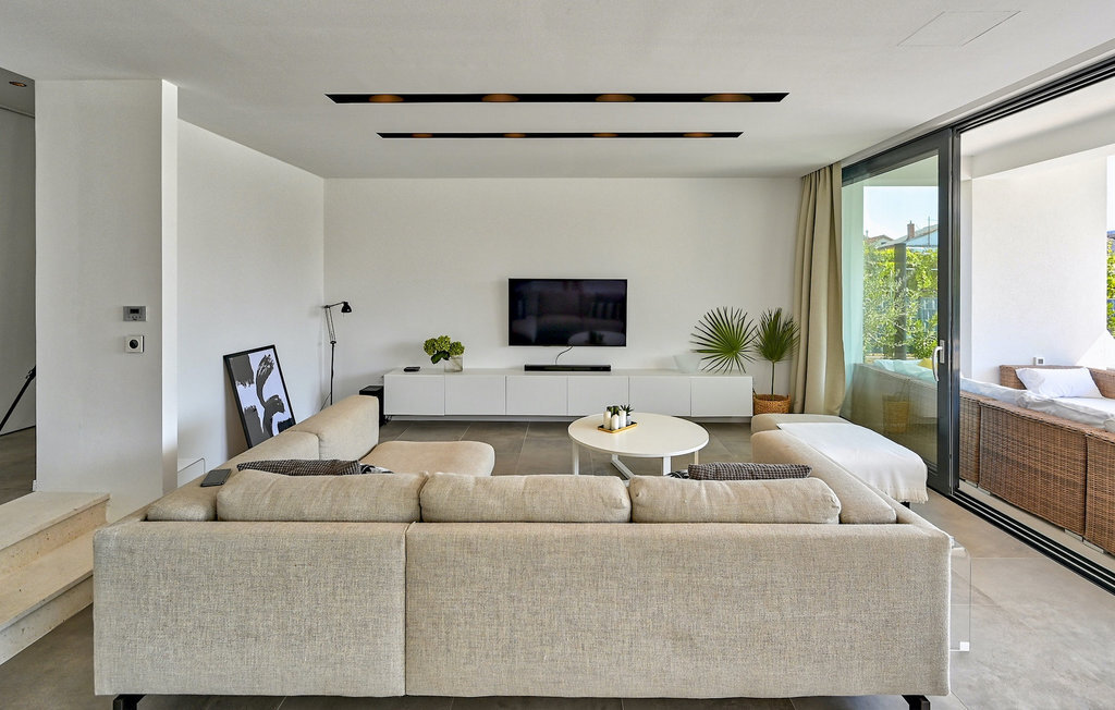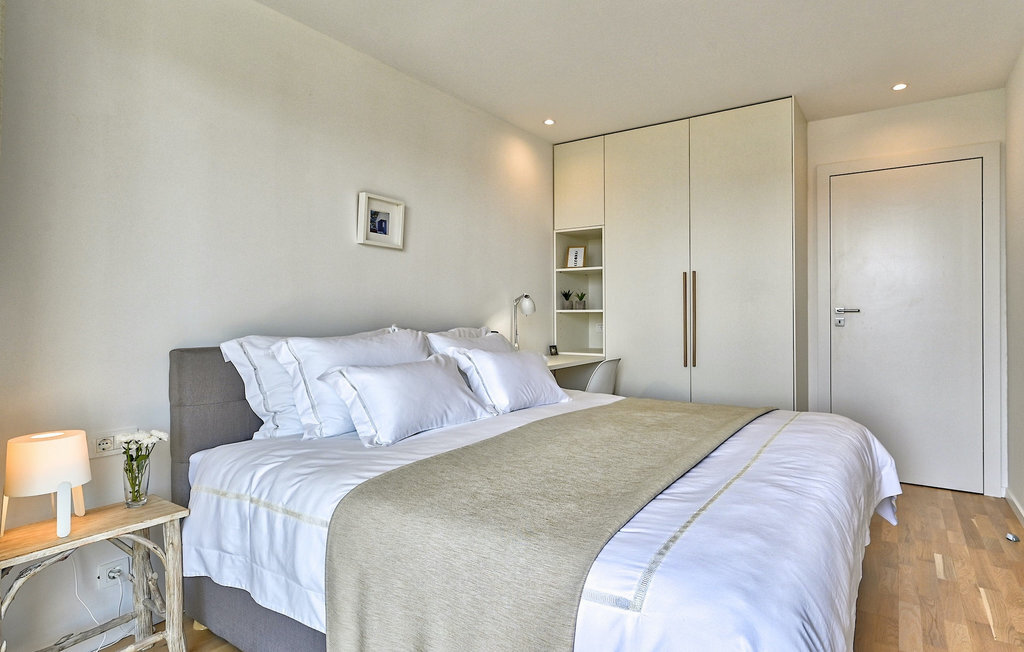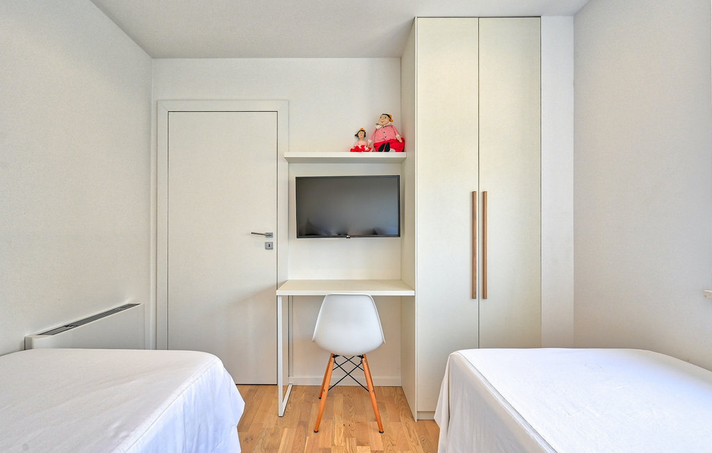 Deux des chambres disposent chacune d'un lit double et d'une salle de bain privée ainsi que d'un balcon. Les deux autres chambres et une salle de bain sont plutôt conçues comme un espace familial. Il se compose d'une chambre à coucher avec un lit double et un balcon, tandis que la deuxième chambre comporte deux lits simples qui peuvent être réunis si nécessaire. Ces deux chambres partagent une salle de bain. Au dernier étage, vous pourrez vous détendre dans une chambre confortable avec salle de bain et grande terrasse avec vue sur la mer.