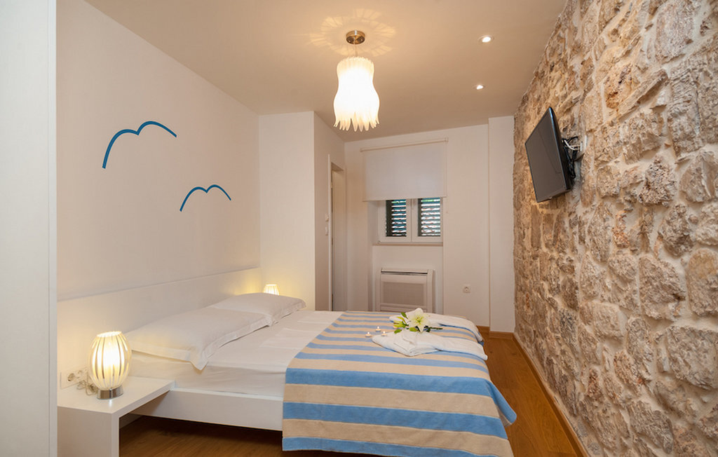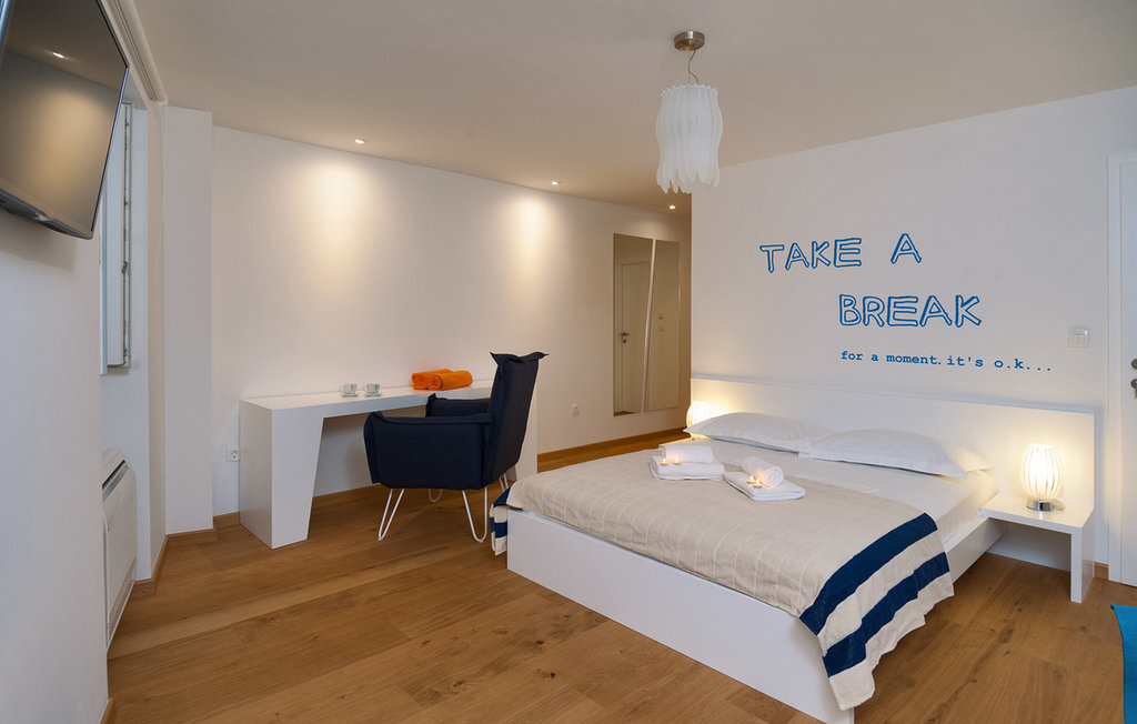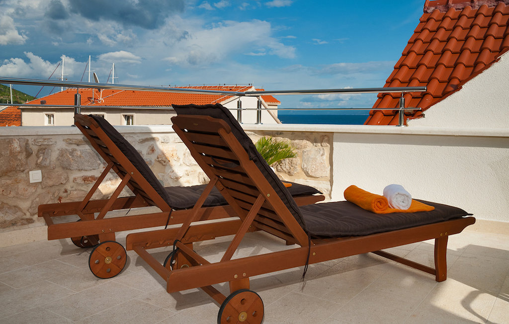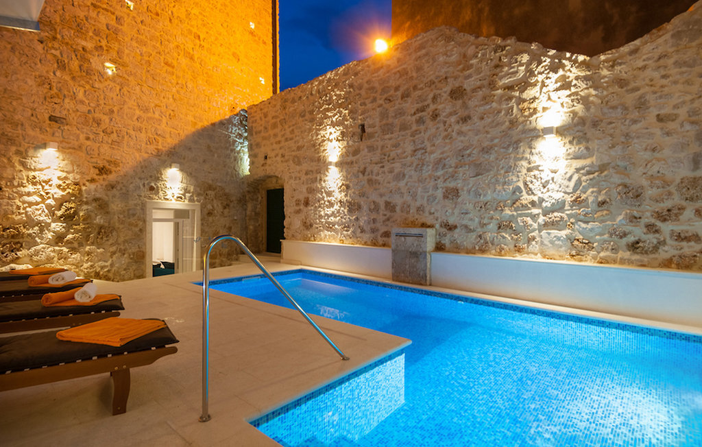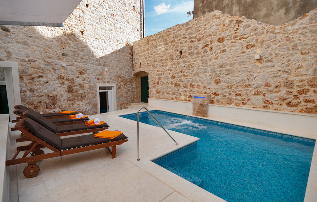 La Villa Majestic est située sur l'île de Brac, l'une des plus grandes îles de Croatie, où les plages sont à couper le souffle et où l'air sent bon les pins. Cette charmante villa en pierre se trouve à quelques minutes à pied de la plage, du restaurant et du magasin les plus proches. La villa a la forme d'une maison dalmate traditionnelle. En même temps, la villa est extrêmement moderne et dispose de la climatisation, du WiFi, d'un jacuzzi privé et d'un sauna. Les pièces sont réparties sur quatre étages. Au rez-de-chaussée, vous trouverez le salon élégant et coloré, qui est relié à la salle à manger et à la cuisine. Au rez-de-chaussée se trouvent également le sauna et le jacuzzi. Les chambres à coucher se trouvent aux étages supérieurs : 2 chambres sont au premier étage, 2 chambres au deuxième étage et 1 chambre au troisième étage. Au dernier étage, il y a aussi une terrasse avec une vue magnifique sur les environs et la mer Adriatique. Dans le jardin, vous pouvez profiter des journées chaudes et ensoleillées au bord de la piscine privée.Des plages magnifiques, des rues étroites, des journées ensoleillées et l'odeur du pin - si vous avez décidé de passer vos vacances sur l'île de Brac, vous ne le regretterez pas ! L'île de Brac est la plus grande des îles de Dalmatie centrale et est facilement accessible par ferry depuis la partie continentale de la Croatie. La villa se trouve à Bol, aujourd'hui une destination touristique connue. Autrefois, Bol était surtout un village de pêcheurs, connu entre autres pour son industrie viticole. Aujourd'hui, l'attraction principale de la ville est la plage de Zlatni rat, dont la photo se trouve sur de nombreuses cartes postales. Grâce au fait que Zlatni rat change de position et de forme en fonction du vent, la plage est très appréciée aussi bien par les habitants que par les étrangers. A Bol, il y a plusieurs lieux de culte que vous pouvez visiter, par exemple l'église pré-romane Saint-Jean et Tudor du XIe siècle, l'église Notre-Dame-de-la-Grâce du XVe siècle ou la résidence d'été gothique fortifiée du XVe siècle. Si vous aimez passer du temps dans les grandes villes, Split, avec son mélange parfait de tradition et de style de vie moderne, n'est qu'à un trajet en ferry.
