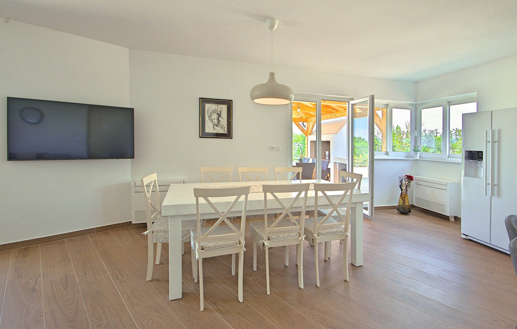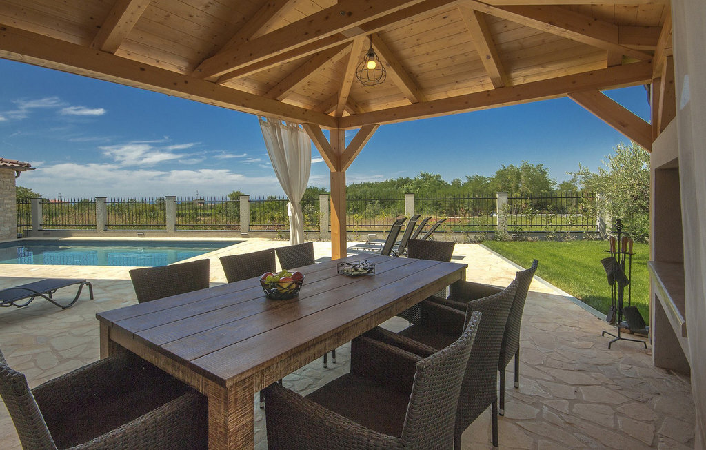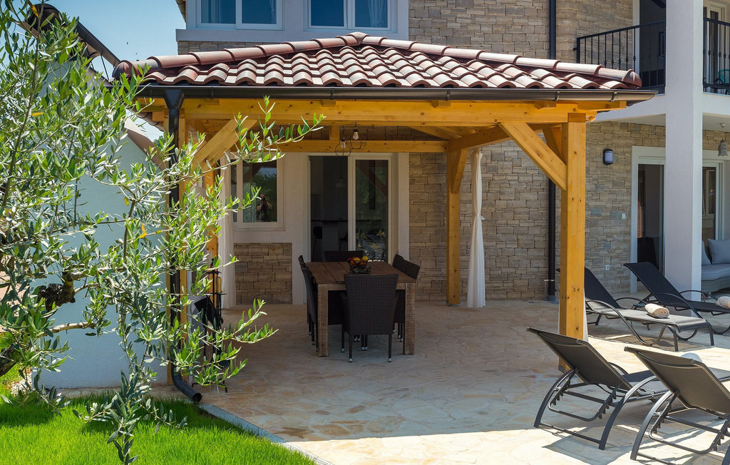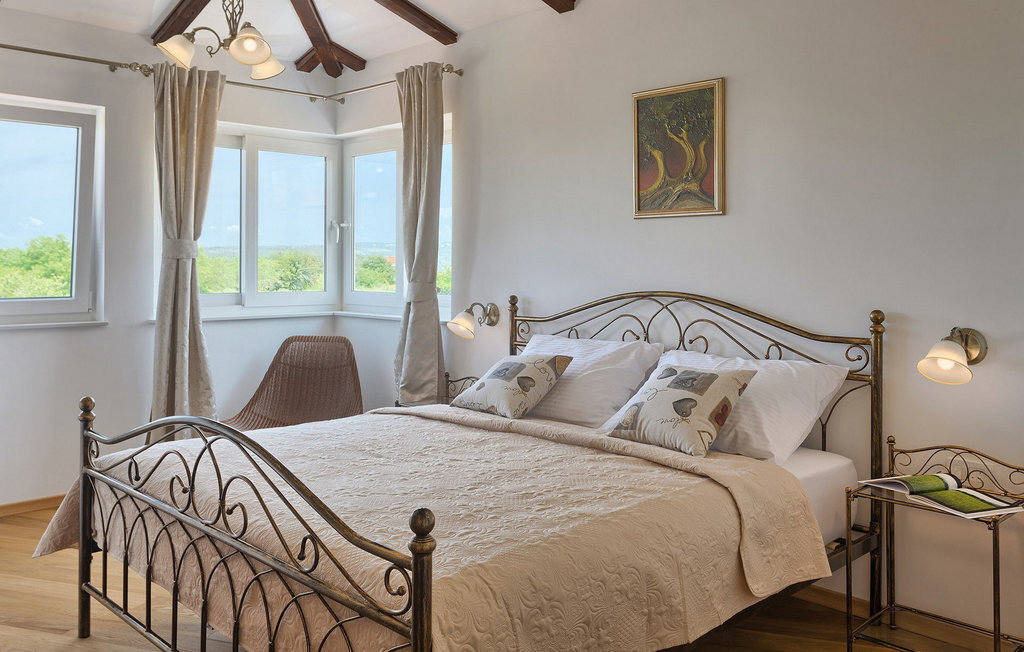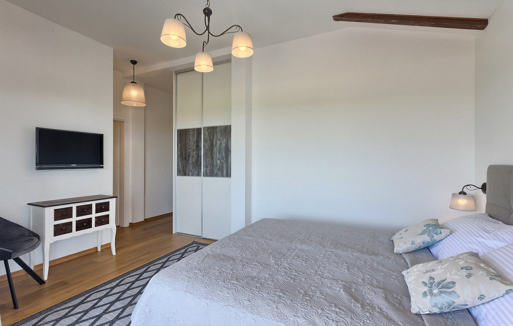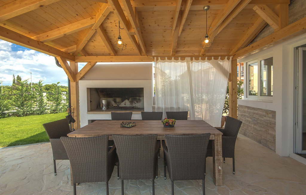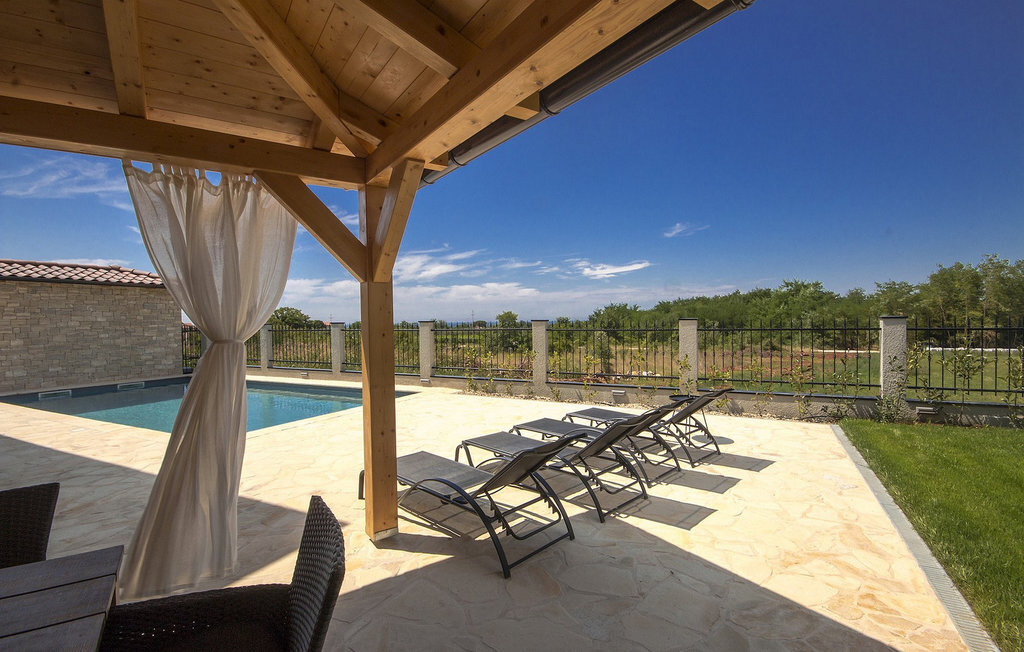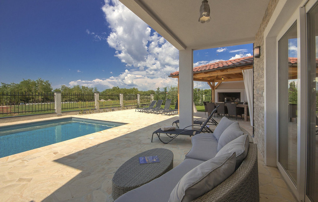 Cette magnifique villa dispose d'une belle piscine privée, d'un jacuzzi extérieur et d'un sauna - tout ce dont vous rêvez pour des vacances reposantes ! Détendez-vous sur les chaises longues à côté de la piscine ou savourez un repas au barbecue dans la salle à manger située juste à côté de la piscine. La Villa Vespera vous séduira par son intérieur aménagé avec goût. Au rez-de-chaussée se trouve un espace ouvert divisé en une cuisine entièrement équipée avec coin repas et un salon spacieux. Au rez-de-chaussée se trouve l'une des quatre chambres à coucher magnifiquement aménagées avec salle de bain privée ainsi que le sauna. Les trois autres chambres et salles de bains se trouvent à l'étage. Toutes les chambres sont climatisées et disposent d'une télévision. Savourez votre café du matin avec une légère brise et une belle vue depuis la terrasse à l'étage supérieur de la villa. Réservez la Villa Vespera et passez de fabuleuses vacances près de Porec.Située dans la partie calme de Porec, mais à une courte distance en voiture du centre-ville, cette villa est idéale aussi bien pour ceux qui préfèrent des vacances relaxantes que pour ceux qui aiment l'agitation des villes touristiques. À Porec, vous trouverez toutes sortes d'activités, de restaurants, de bars et de clubs. Comme Porec était autrefois une colonie romaine, la ville est surtout connue pour son riche patrimoine culturel. L'étonnante basilique d'Euphrasius, protégée par l'UNESCO, est la meilleure preuve de la gloire de l'histoire de Porec. Les villes médiévales de Motovun et Groznjan ainsi que les villes côtières de Rovinj et Versar ne sont qu'à une courte distance en voiture de la villa. Si vous êtes intéressé par des parties plus éloignées de l'Istrie, les îles Brijuni et l'amphithéâtre romain de Pula sont facilement accessibles depuis cette région.