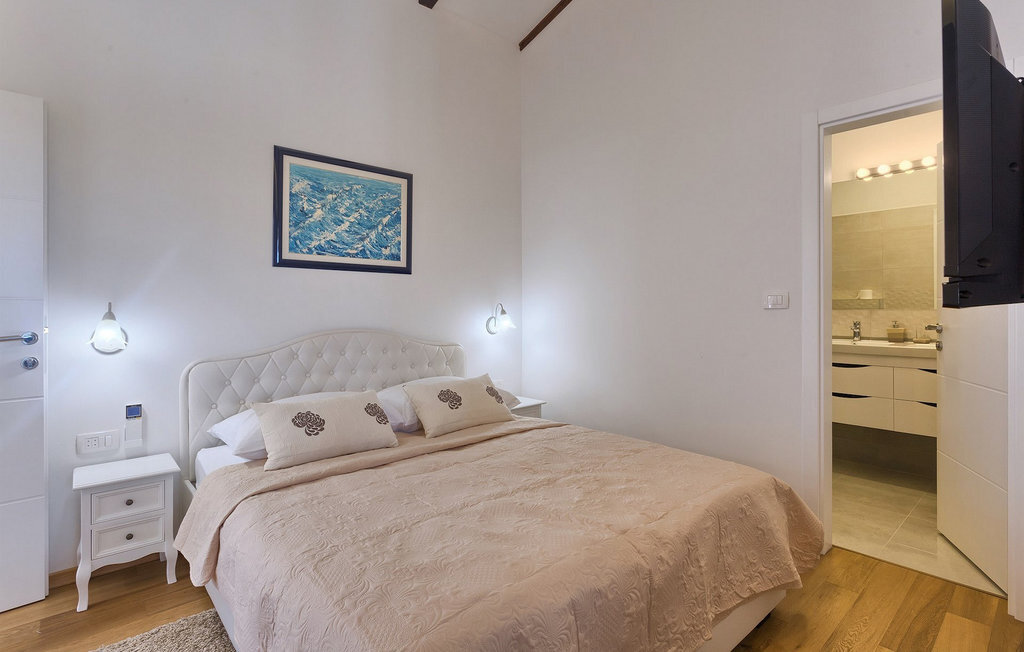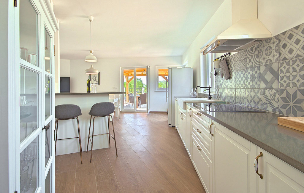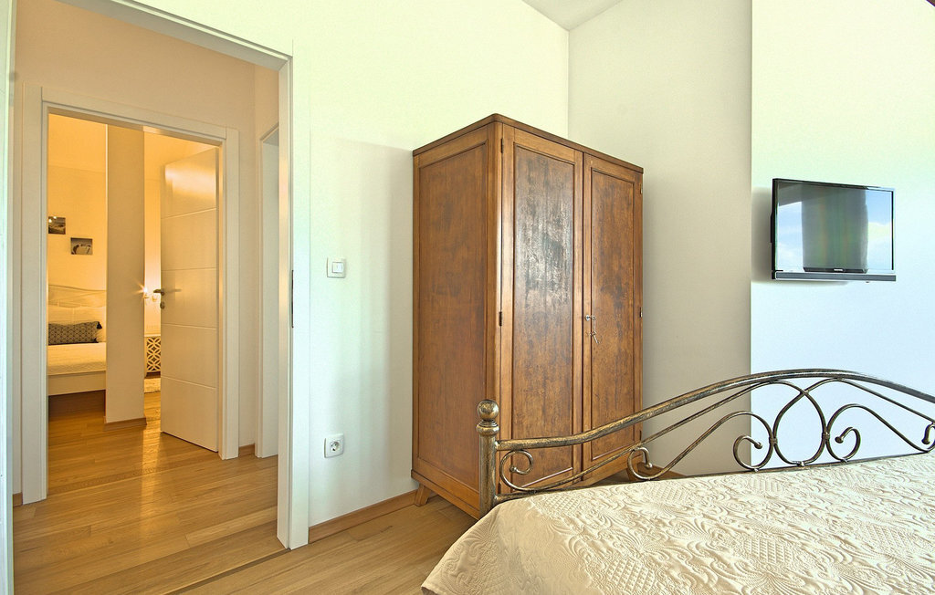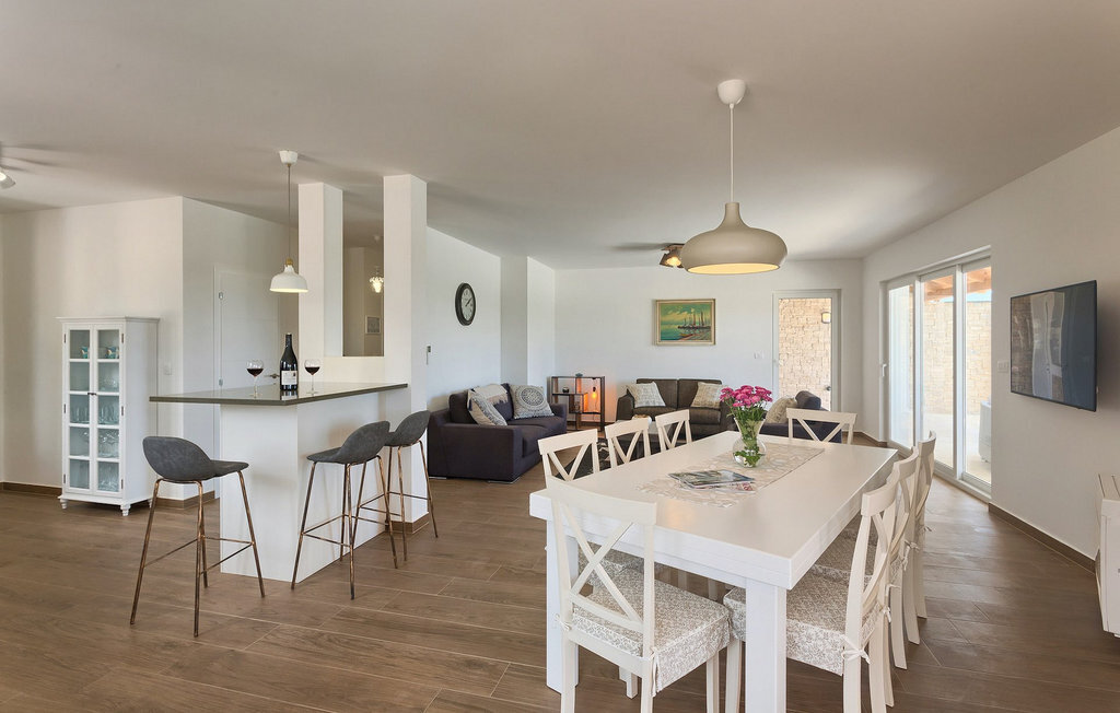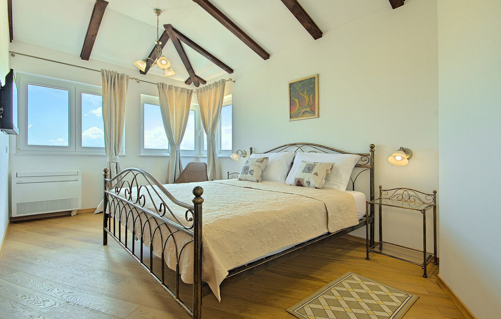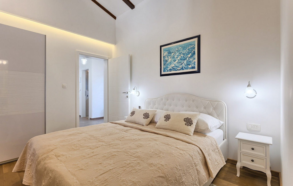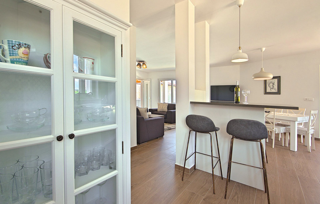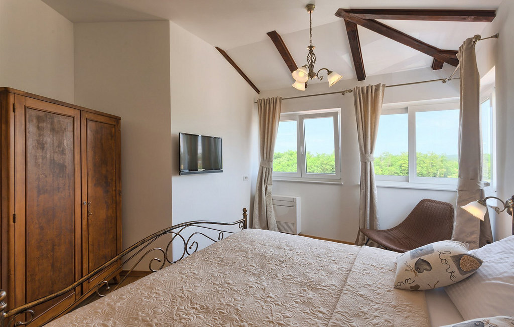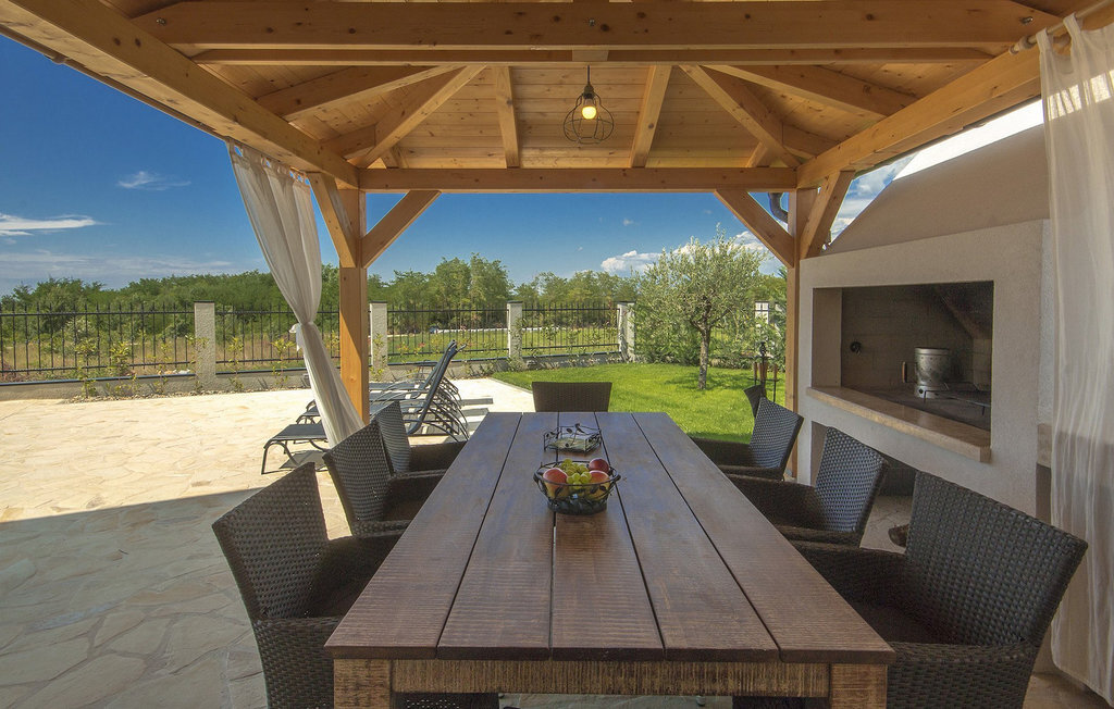 Cette magnifique villa dispose d'une belle piscine privée, d'un jacuzzi extérieur et d'un sauna - tout ce dont vous rêvez pour des vacances reposantes ! Détendez-vous sur les chaises longues à côté de la piscine ou savourez un repas au barbecue dans la salle à manger située juste à côté de la piscine. La Villa Vespera vous séduira par son intérieur aménagé avec goût. Au rez-de-chaussée se trouve un espace ouvert divisé en une cuisine entièrement équipée avec coin repas et un salon spacieux. Au rez-de-chaussée se trouve l'une des quatre chambres à coucher magnifiquement aménagées avec salle de bain privée ainsi que le sauna. Les trois autres chambres et salles de bains se trouvent à l'étage. Toutes les chambres sont climatisées et disposent d'une télévision. Savourez votre café du matin avec une légère brise et une belle vue depuis la terrasse à l'étage supérieur de la villa. Réservez la Villa Vespera et passez de fabuleuses vacances près de Porec.Située dans la partie calme de Porec, mais à une courte distance en voiture du centre-ville, cette villa est idéale aussi bien pour ceux qui préfèrent des vacances relaxantes que pour ceux qui aiment l'agitation des villes touristiques. À Porec, vous trouverez toutes sortes d'activités, de restaurants, de bars et de clubs. Comme Porec était autrefois une colonie romaine, la ville est surtout connue pour son riche patrimoine culturel. L'étonnante basilique d'Euphrasius, protégée par l'UNESCO, est la meilleure preuve de la gloire de l'histoire de Porec. Les villes médiévales de Motovun et Groznjan ainsi que les villes côtières de Rovinj et Versar ne sont qu'à une courte distance en voiture de la villa. Si vous êtes intéressé par des parties plus éloignées de l'Istrie, les îles Brijuni et l'amphithéâtre romain de Pula sont facilement accessibles depuis cette région.