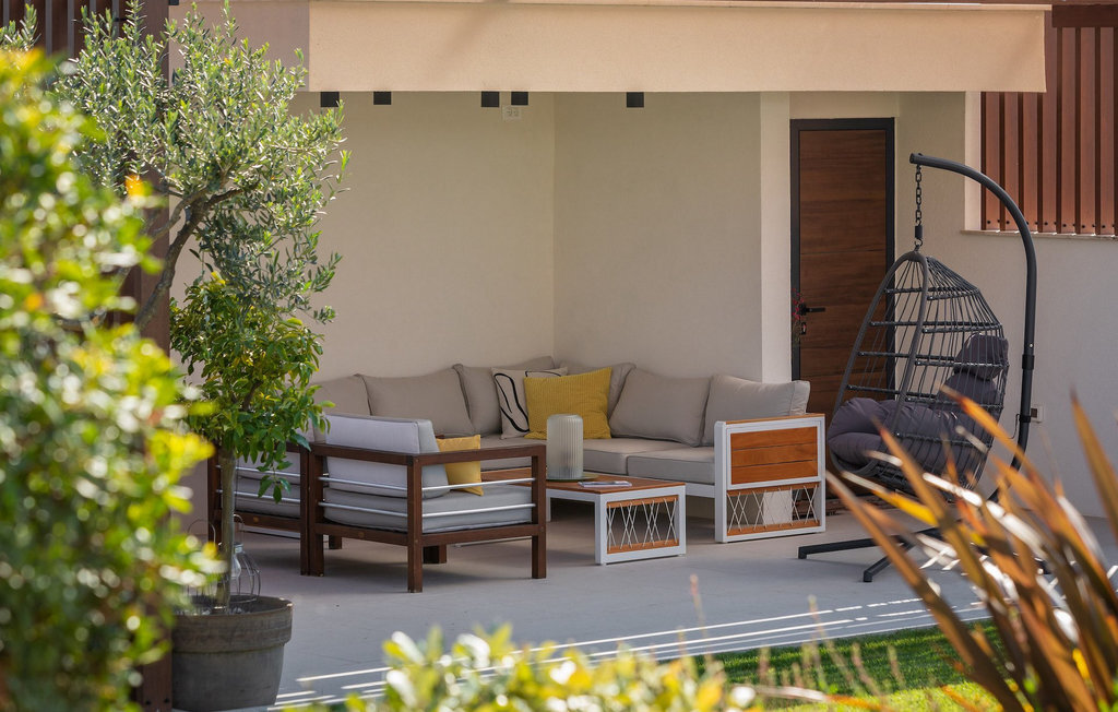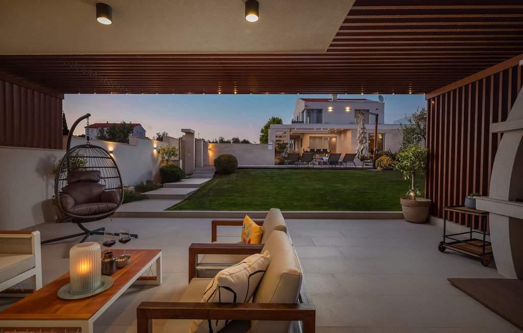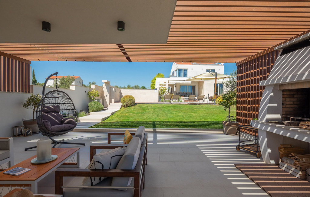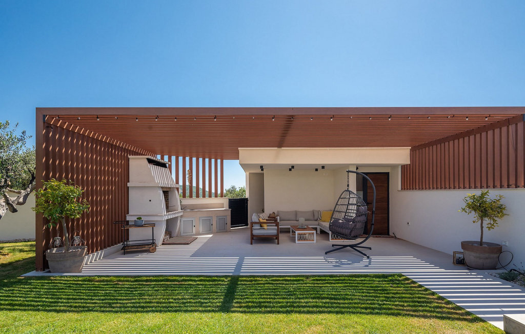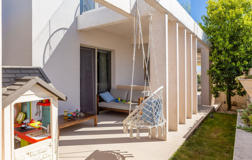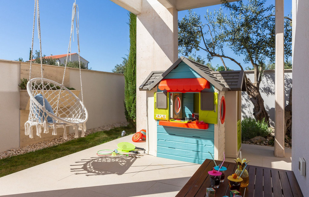 L'espace extérieur est encore plus passionnant, si nous pouvons le dire ainsi. À l'ombre de la terrasse, vous pouvez vous détendre et profiter de l'été, lorsque la vie est plus lente. Vos enfants peuvent jouer sur leur propre terrain de jeu. Vous pouvez également préparer vos repas à l'extérieur. Il y a un barbecue au charbon de bois pour les plus fins gourmets. Et ce que nous préférons, ce sont les soirées. La vue panoramique est tout simplement extraordinaire et vous pourrez plus tard vous laisser emporter dans un monde de rêve sous les étoiles.