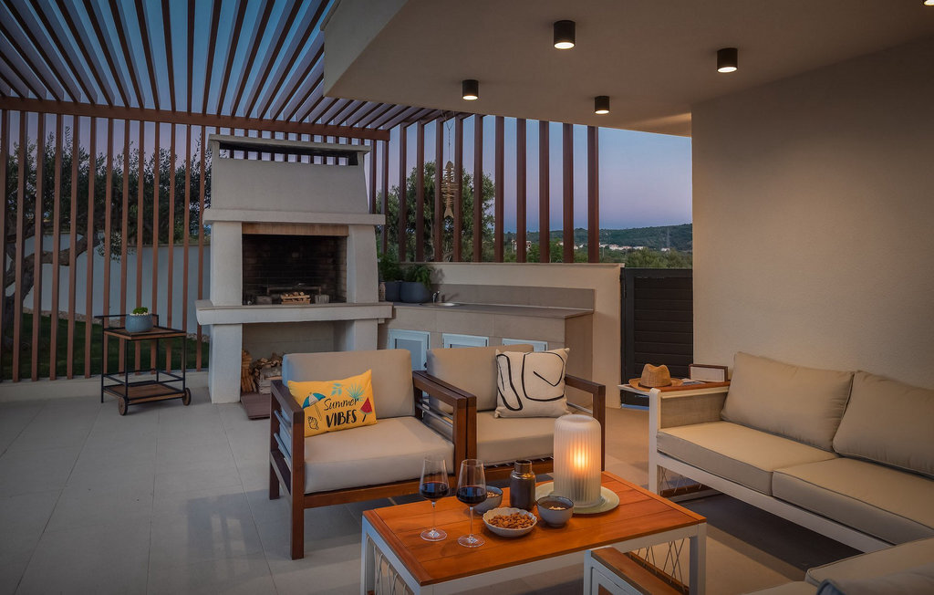 Prêt à faire vos valises ? La Villa Domino est située à Primosten, l'une des plus belles villes de l'Adriatique et un célèbre point chaud touristique en Dalmatie. Cette villa est l'endroit idéal pour des vacances relaxantes avec une vue spectaculaire sur le paysage méditerranéen intact et la mer cristalline. Primosten offre tout ce dont un hôte a besoin pour ses vacances - des magasins, des restaurants, des possibilités d'activités diverses, le très célèbre club Aurora où se produisent souvent des stars nationales et internationales, des événements dans la ville pour votre divertissement et, le plus important, le magnifique paysage avec de belles plages pour tous les goûts. Le port de Primosten est bien protégé des vents du nord-ouest et du nord-est. Sur les pentes environnantes se trouvent les vignobles bien connus de Primosten. Un trajet en bateau de 30 minutes seulement vous amène au parc national de Kornati avec plus de 60 îles. Il y a également un sentier de VTT qui passe juste à côté de la Villa Adriana.