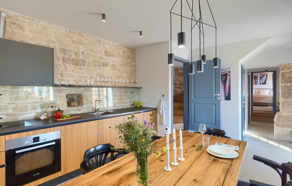 La villa Spirit of Istria est une maison en pierre magnifiquement restaurée, vieille de plusieurs siècles, qui a conservé de nombreux détails originaux et traditionnels. Cette villa aménagée de manière intéressante se trouve à proximité de la ville de Rovinj et peut accueillir jusqu'à 6 personnes. Au rez-de-chaussée se trouvent une chambre à coucher avec un lit double, une belle cuisine lumineuse avec un coin repas et un salon avec un accès direct à la piscine. Si vous montez, vous arriverez au premier étage où vous pourrez profiter d'une belle chambre double avec salle de bain privée. Cette villa vous offre également un studio-appartement dans le jardin avec une plus petite chambre avec deux lits simples et des toilettes et une douche séparées. Dans le jardin, vous pouvez profiter de votre temps en vous relaxant dans le jacuzzi extérieur ou dans la belle cuisine d'été, qui offre tout ce dont vous avez besoin, par exemple une cheminée, un grand réfrigérateur avec congélateur et une magnifique salle à manger en plein air. Lors des chaudes journées d'été, vous pouvez vous rafraîchir dans la piscine ou faire un barbecue pour toute la famille. Si vous souhaitez créer de beaux moments en famille, vous êtes à la bonne adresse à la Villa Spirit of Istria.Cette villa magnifiquement rénovée se trouve dans le petit village de Kurili, près de Rovinj. Cet environnement idéal est parfait pour des vacances reposantes. L'avantage est la grande disponibilité de tout le contenu de la riche offre que l'Istrie a à offrir. En tout cas, une offre gastronomique indispensable et excellente, les meilleures huiles d'olive du monde, un riche patrimoine historique, de nombreuses curiosités culturelles et de nombreux événements culturels et divertissants. Ne manquez pas de visiter la baie de Lim, un paysage protégé et l'une des ressources les plus belles et les plus naturelles d'Istrie. La villa se trouve à seulement 12 km de la magnifique ville de Rovinj, la meilleure destination de vacances et la ville la plus romantique de Croatie.