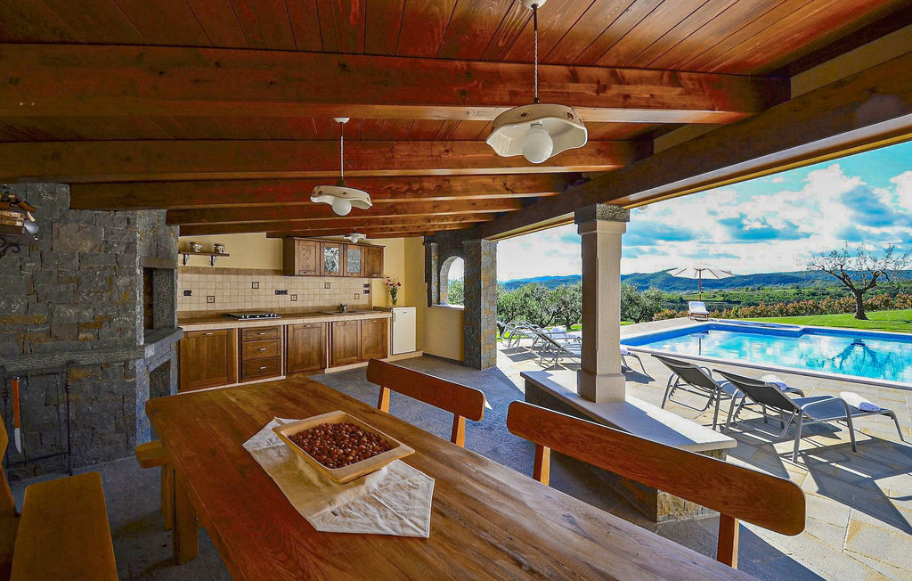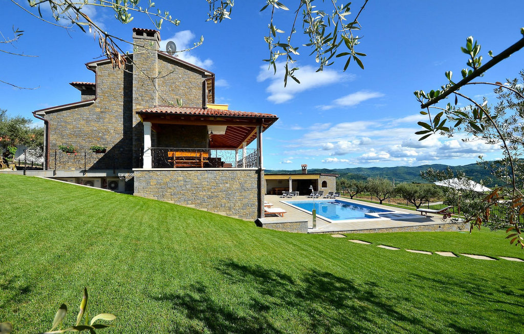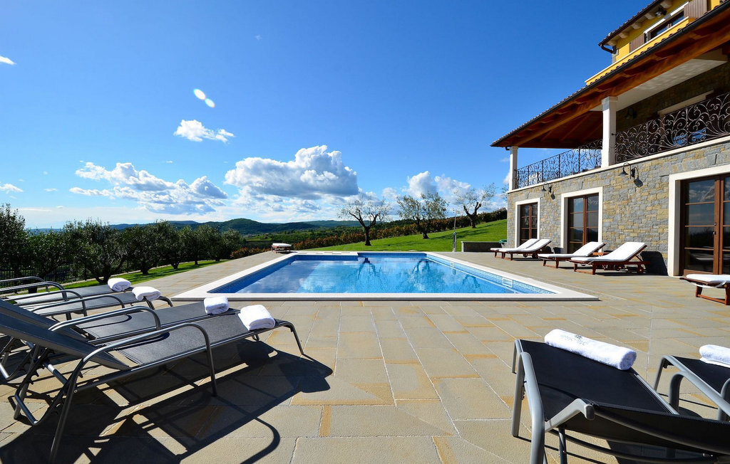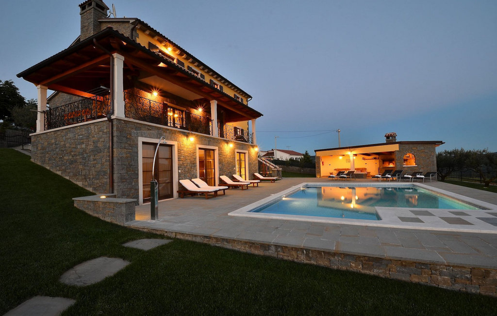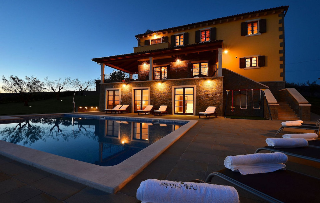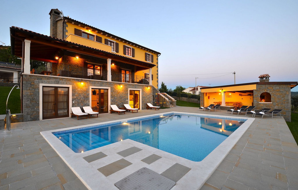 Si vous avez envie de vous rafraîchir pendant les chauds mois d'été, il y a une piscine de 50 m2 avec des pompes d'hydro-massage. Vous pouvez prendre un peu de soleil sur l'une des douze chaises longues et si vous souhaitez un endroit moins isolé, prenez l'un des oliviers qui peut vous donner un peu d'ombre. Pendant que vous profitez sans souci de la vue sur le lac et les arbres centenaires qui l'entourent, vos plus jeunes pourront s'amuser dans le bac à sable, sur la bascule ou sur les balançoires. Dans le jardin se trouve également une cuisine extérieure couverte avec un barbecue, une cuisinière à gaz, un évier, un réfrigérateur et une table pour douze personnes. Vous pouvez y préparer vous-même une spécialité istrienne ou faire confiance à des professionnels.