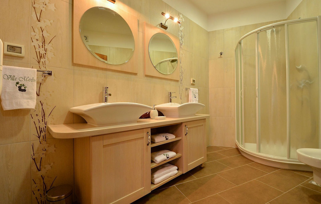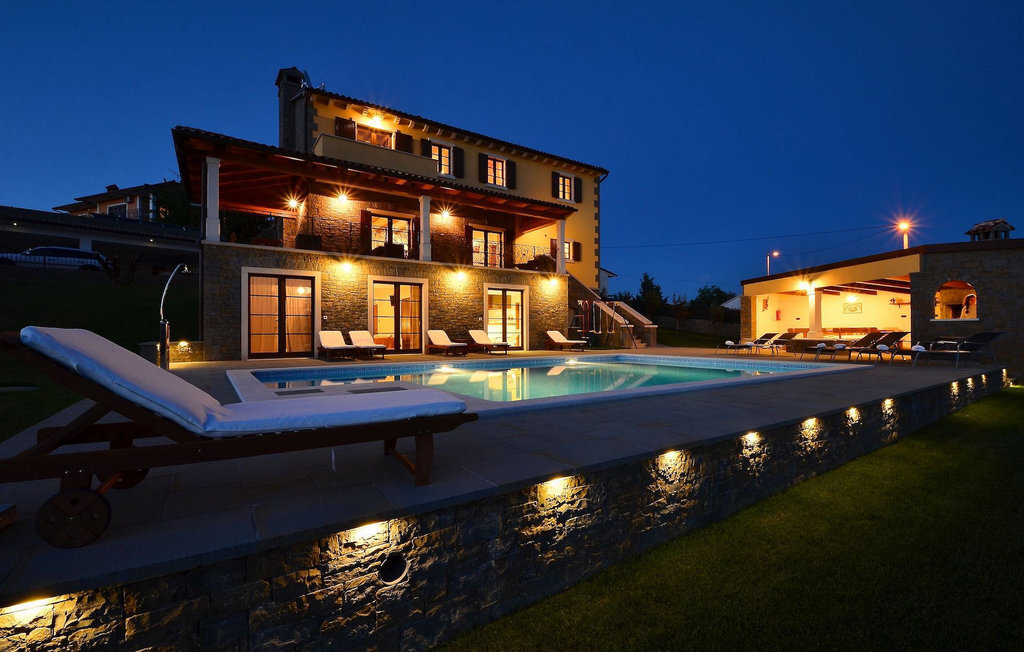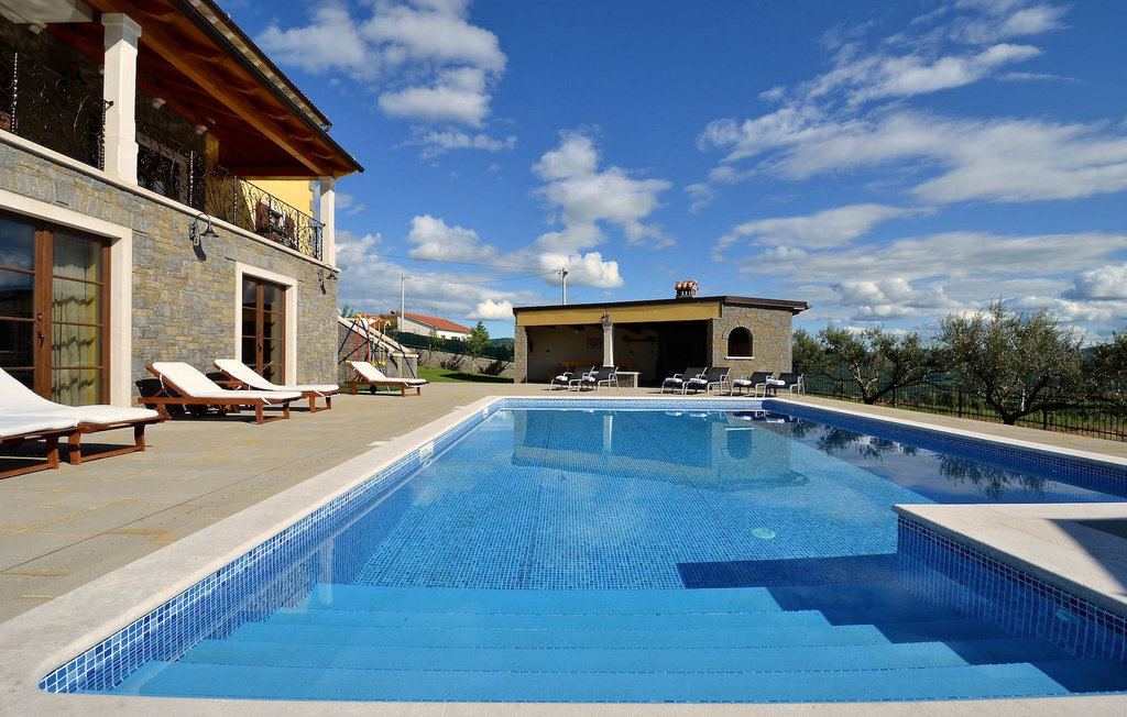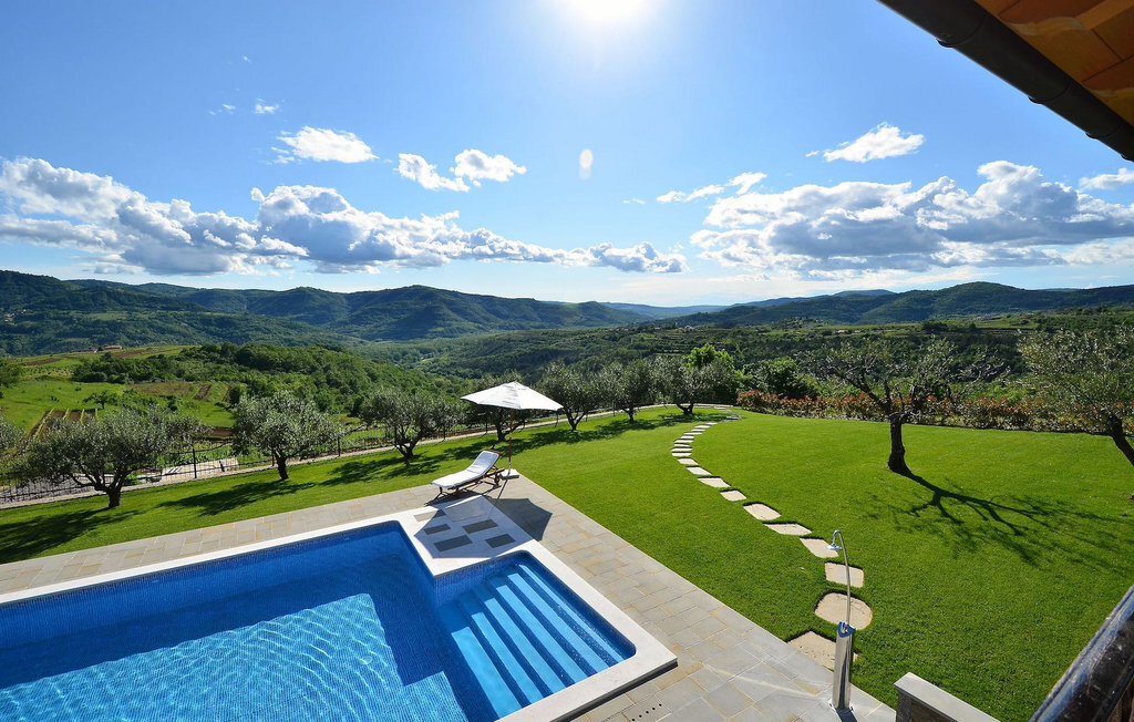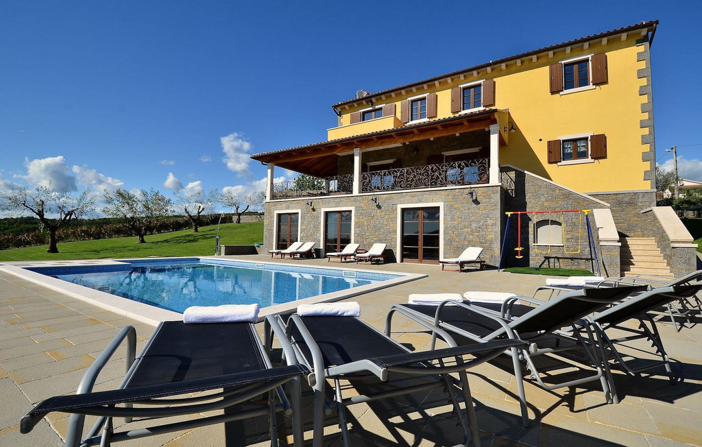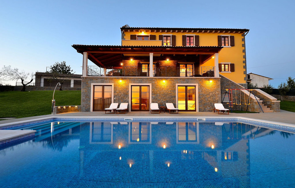 Si vous avez envie de vous rafraîchir pendant les chauds mois d'été, il y a une piscine de 50 m2 avec des pompes d'hydro-massage. Vous pouvez prendre un peu de soleil sur l'une des douze chaises longues et si vous souhaitez un endroit moins isolé, prenez l'un des oliviers qui peut vous donner un peu d'ombre. Pendant que vous profitez sans souci de la vue sur le lac et les arbres centenaires qui l'entourent, vos plus jeunes pourront s'amuser dans le bac à sable, sur la bascule ou sur les balançoires. Dans le jardin se trouve également une cuisine extérieure couverte avec un barbecue, une cuisinière à gaz, un évier, un réfrigérateur et une table pour douze personnes. Vous pouvez y préparer vous-même une spécialité istrienne ou faire confiance à des professionnels.