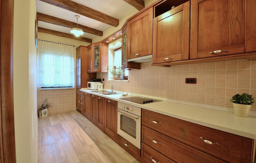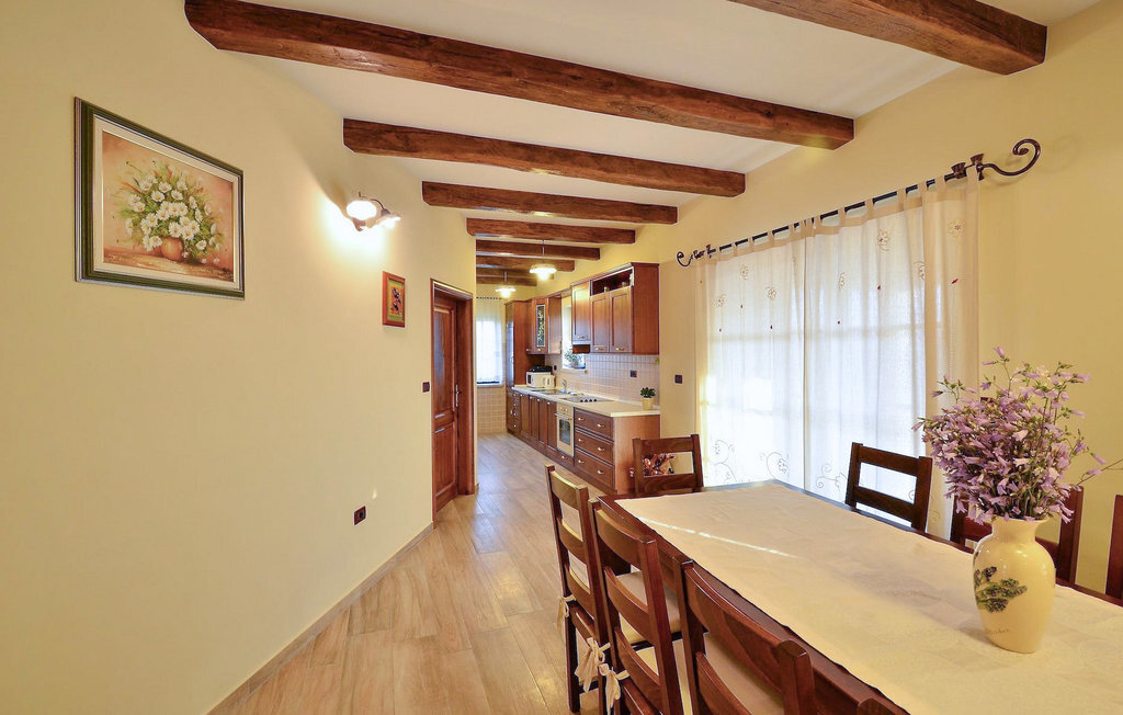 En entrant dans un salon spacieux, vous verrez une table en bois massif pour 12 personnes et dès que vous entrez dans la partie inévitable de la maison istrienne, vous verrez une cheminée traditionnelle. Alors que l'ouverture sur la gauche mène à une cuisine aménagée de façon moderne, l'avant vous mène à une terrasse avec vue sur l'habitat de la truffe blanche, le lac de barrage de Butoniga et plusieurs petites villes historiques pittoresques. Les prix comprennent une dégustation gratuite de truffes, organisée par le propriétaire.