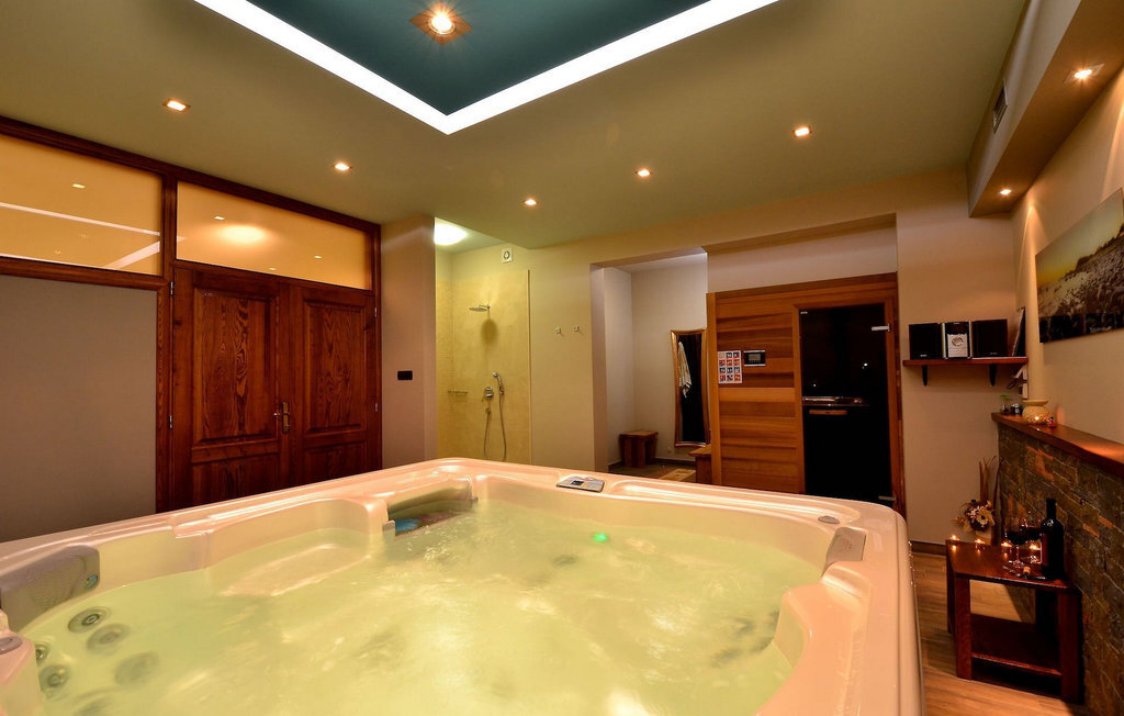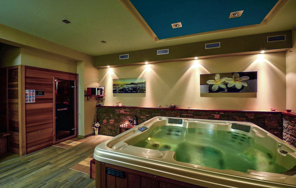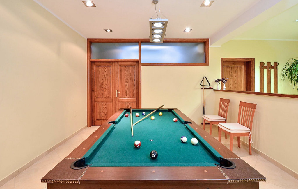 Le rez-de-chaussée est réservé au repos, au temps libre et à la détente. Rien n'est laissé au hasard. Ici, on s'occupe de toutes les générations. Pour les plus jeunes, il y a un coin enfants tandis que pour les plus âgés, il y a une pièce pour se détendre - un espace bien-être avec un jacuzzi pour quatre personnes et un sauna finlandais. À cet étage, vous trouverez également une table de billard et un jeu de fléchettes ainsi qu'un espace d'entraînement avec un accès direct à la piscine. Une buanderie est également à votre disposition.