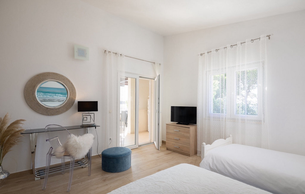 Au rez-de-chaussée de la villa se trouve un charmant salon avec accès à une terrasse avec piscine ainsi qu'une salle à manger et une cuisine entièrement équipée. Au même étage se trouvent deux chambres confortables et deux salles de bains. Au premier étage, il y a encore 4 autres chambres à coucher avec 3 salles de bains à disposition. Mais ce n'est pas tout ! À l'étage supérieur se trouve également une terrasse spacieuse avec jacuzzi, où vous pourrez vous détendre le matin tout en profitant de la vue enchanteresse sur le magnifique paysage !