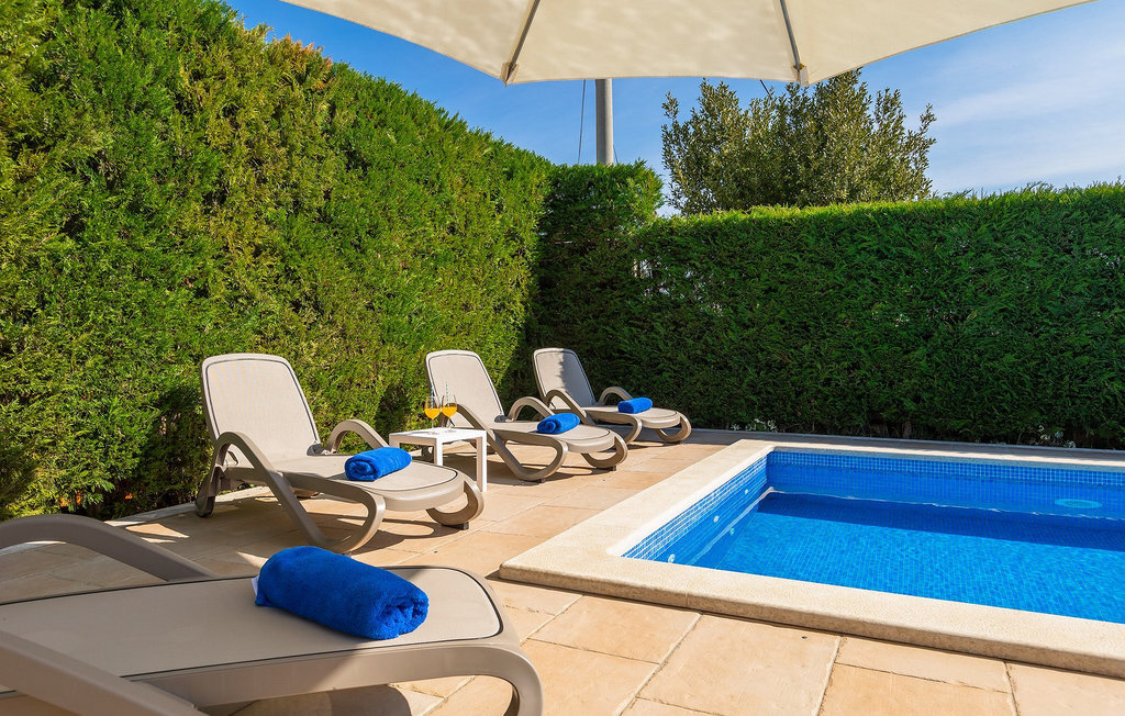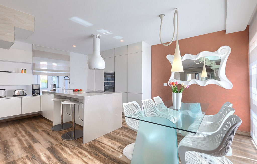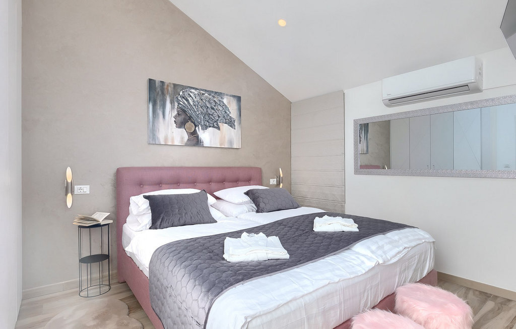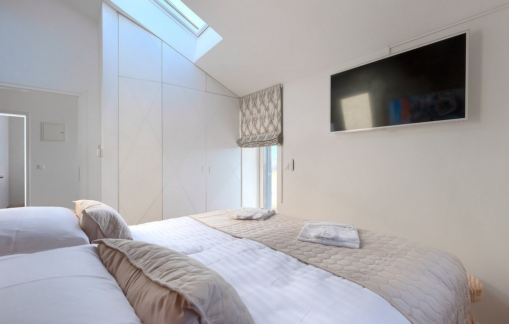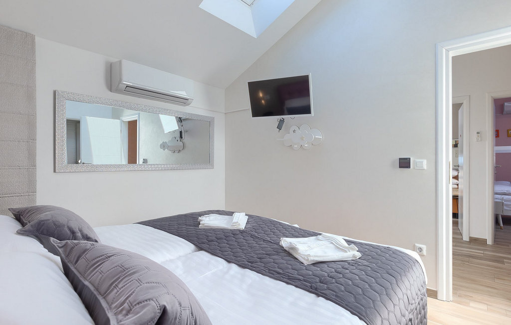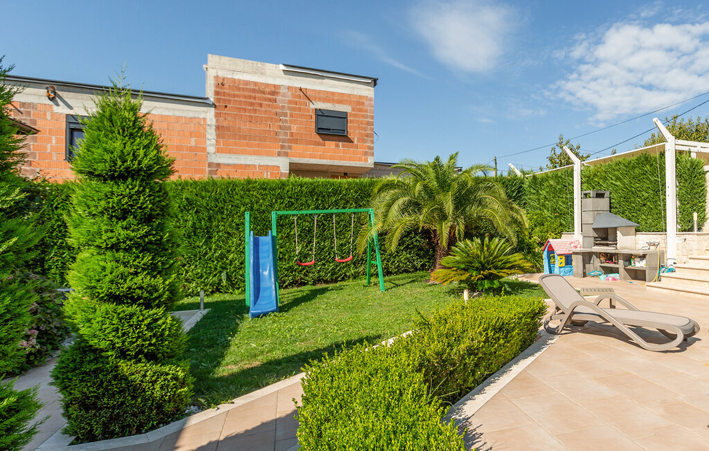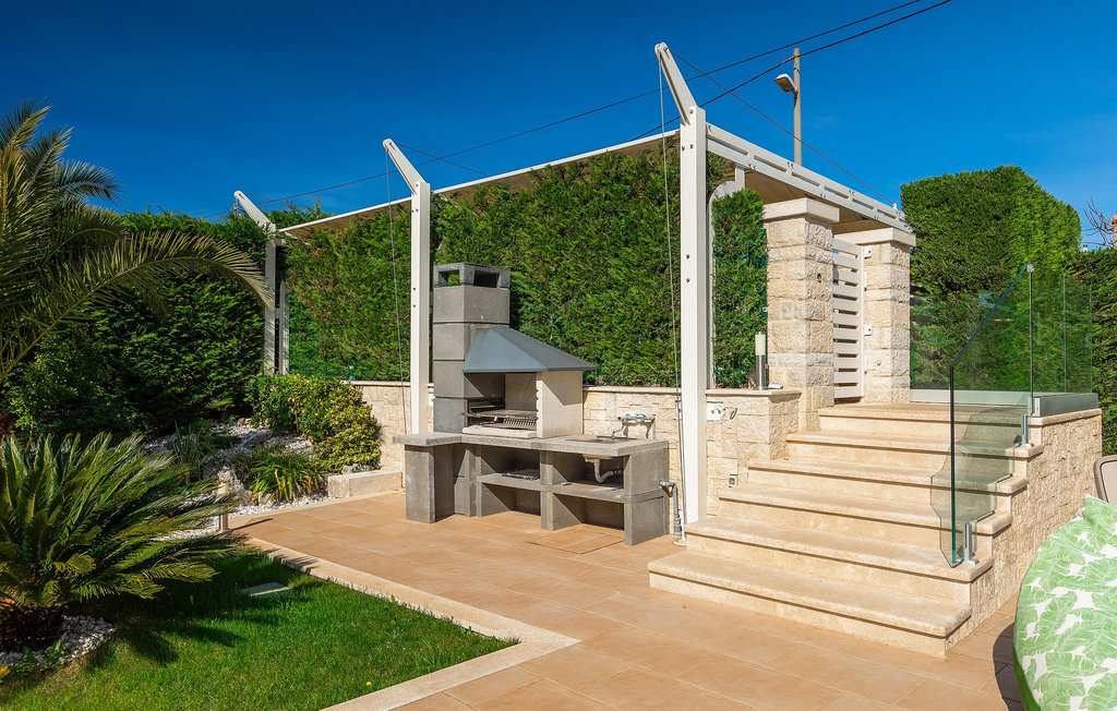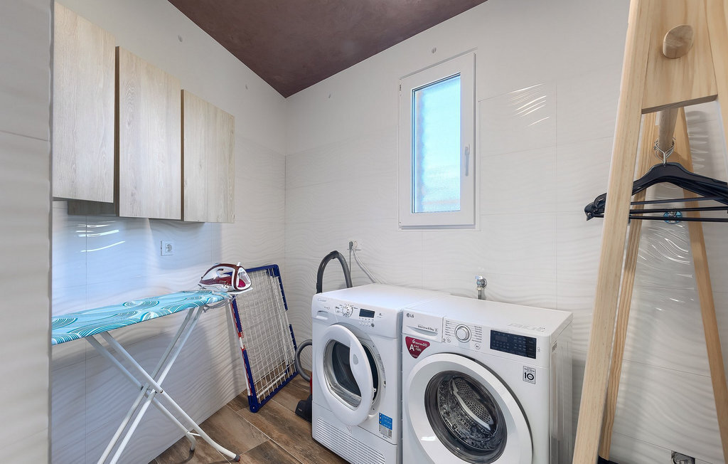 De là, vous entrez dans un intérieur moderne, lumineux et entièrement climatisé, où se trouvent le salon, la salle à manger et la cuisine bien équipée sur un seul niveau, avec des toilettes pour les invités et une buanderie. À l'étage supérieur, vous passerez des nuits reposantes dans 3 chambres à coucher confortables, dont 2 salles de bains avec douche. Deux chambres à coucher disposent de lits doubles confortables, la chambre des enfants dispose de deux lits simples et d'un lit supplémentaire escamotable.