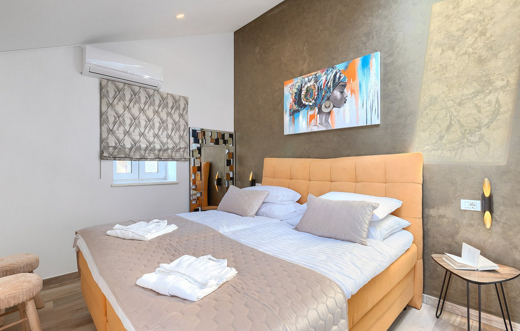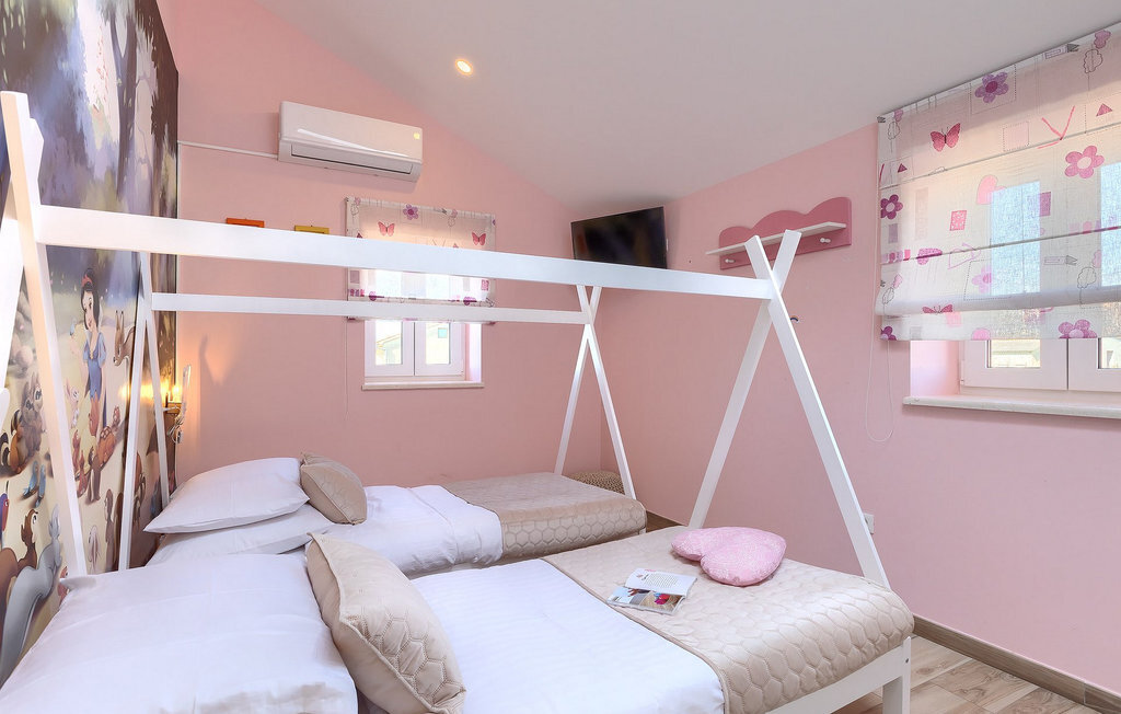 Un point fort particulier est la taverne au rez-de-chaussée avec une cheminée, une cuisine, un comptoir et une grande table en bois pour passer de bonnes soirées. Au même niveau se trouve également votre espace bien-être personnel avec sauna et jacuzzi. Profitez de vacances bien méritées en famille et reposez-vous du quotidien dans la magnifique Villa Anabel.Kastelir est un petit village tranquille, à quelques kilomètres seulement des villes côtières de Porec et Novigrad. Porec est un centre touristique important sur la côte ouest de l'Istrie. C'est une ville antique datant de l'époque romaine, avec 2000 ans d'histoire et pleine de curiosités. Dans la vieille ville se trouve la basilique euphrasienne du 6e siècle, connue pour ses nombreuses mosaïques byzantines. En outre, de nombreux autres monuments font de Porec un endroit qui vaut la peine d'être exploré. Novigrad est une ville plus petite, qui était autrefois un village de pêcheurs et qui est devenue au fil des ans un centre touristique irrésistible. Cependant, Novigrad n'est pas seulement un lieu touristique, c'est aussi un joyau architectural plein d'excellents sites historiques, d'un riche patrimoine et d'une beauté naturelle préservée. Novigrad est également l'une des destinations gourmandes les plus prisées d'Istrie, où vous pourrez découvrir de nombreux délices gastronomiques de la cuisine méditerranéenne.