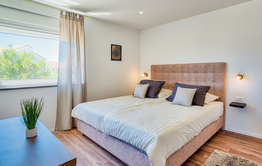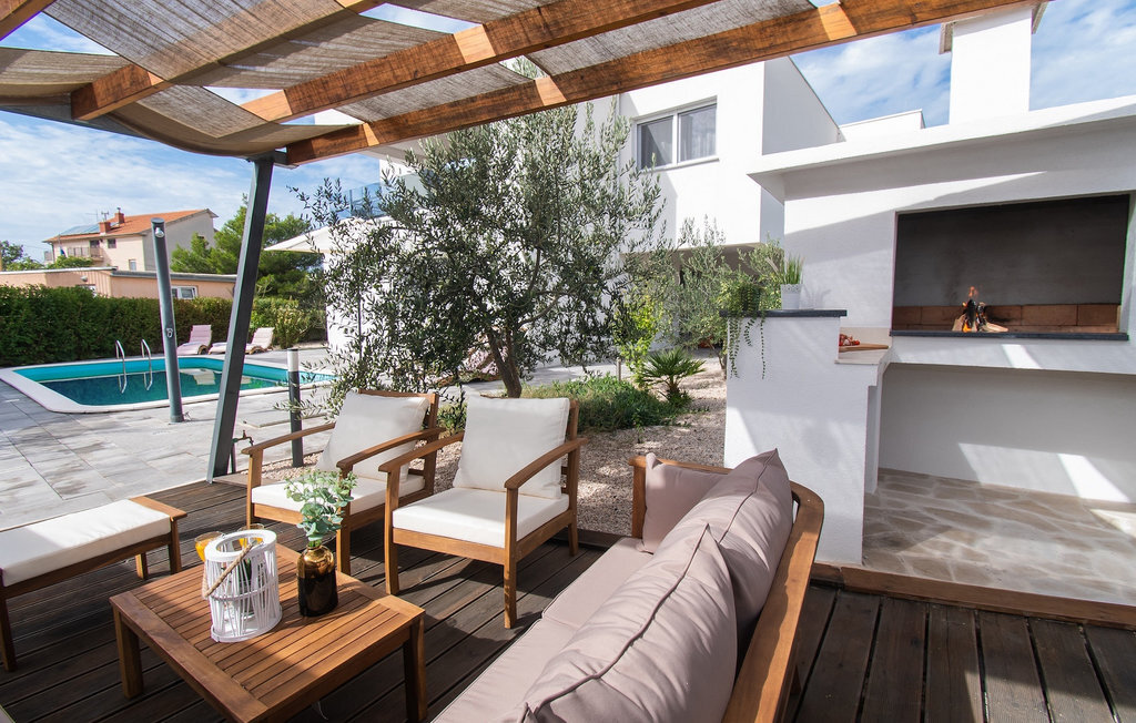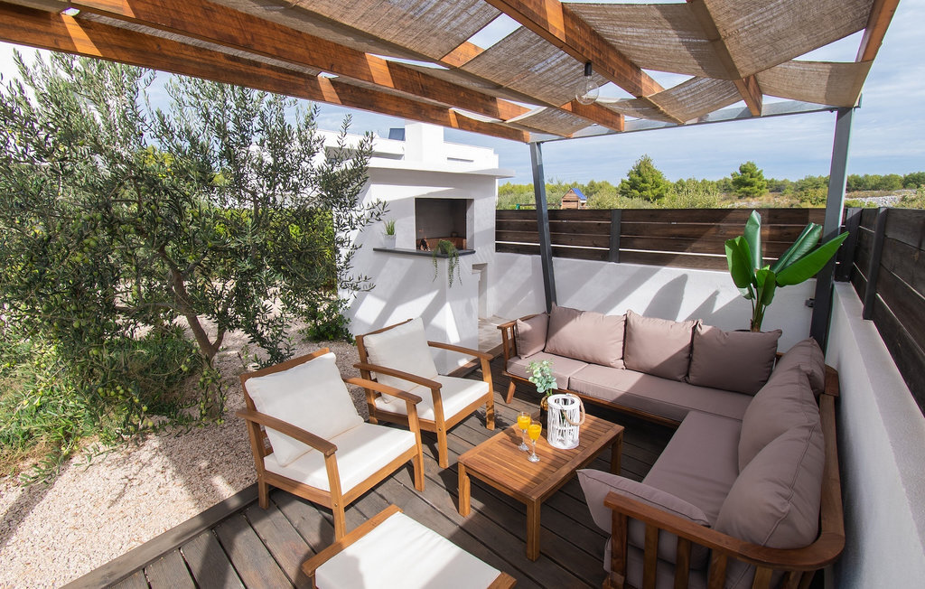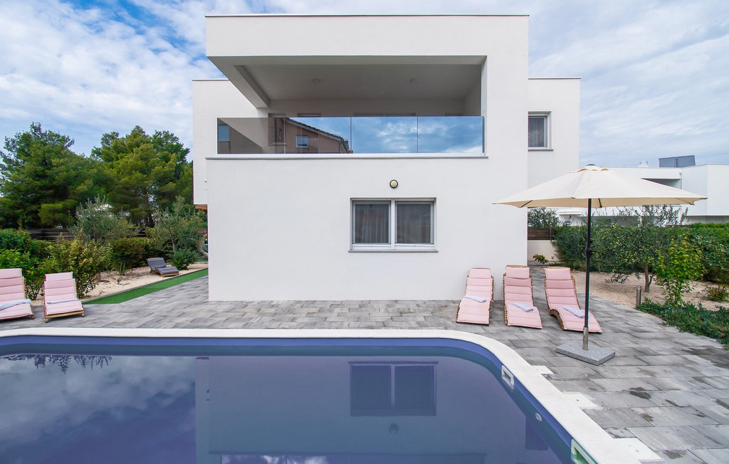 Cette villa meublée avec style bénéficie d'un bel emplacement juste en dehors du centre de Vodice, dans un petit village appelé Srima, à seulement 200 mètres de la mer et de la plage.