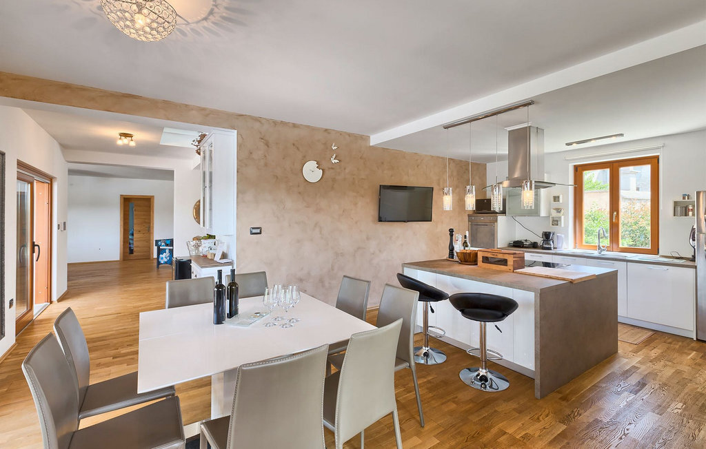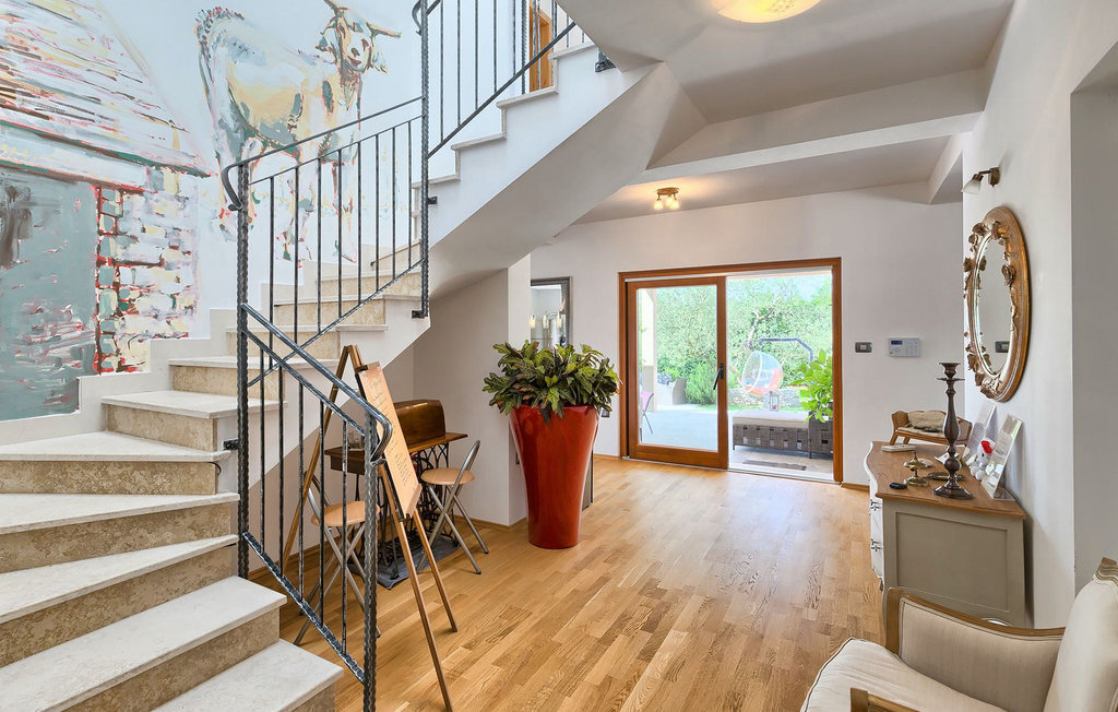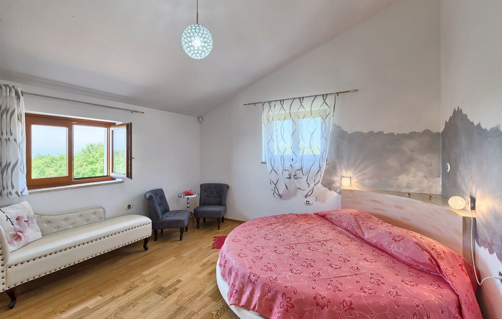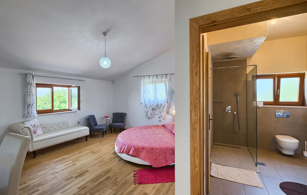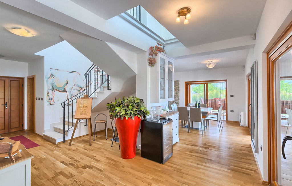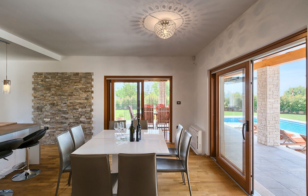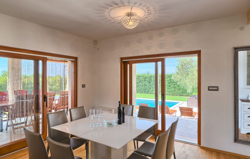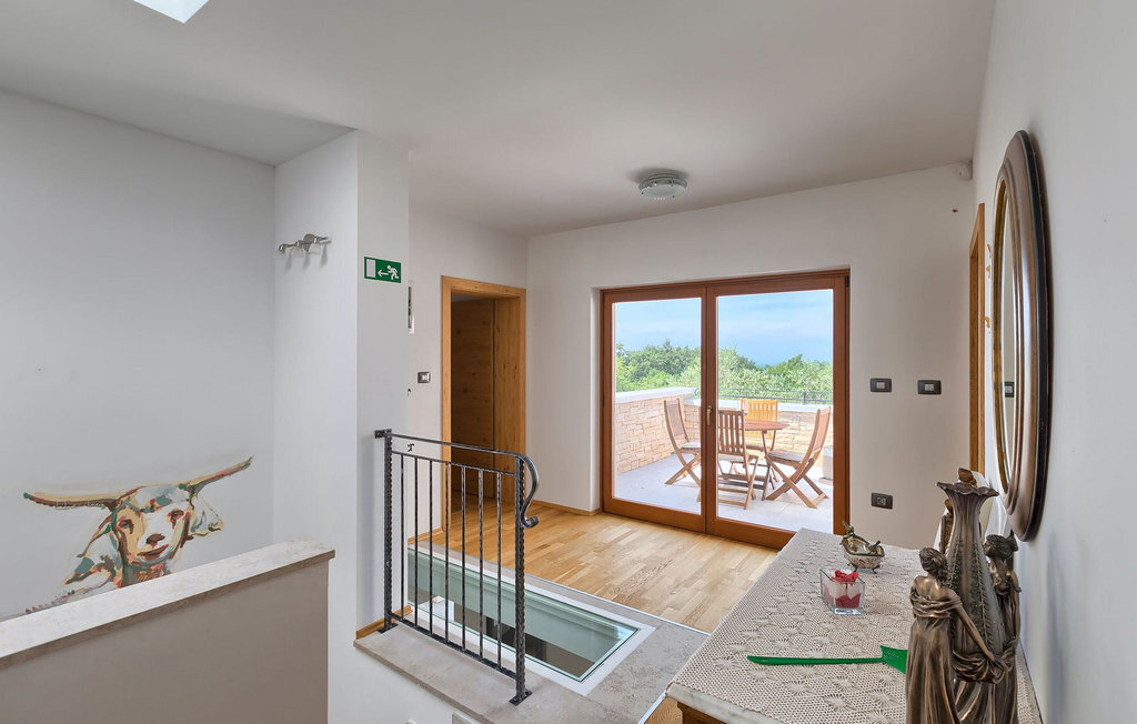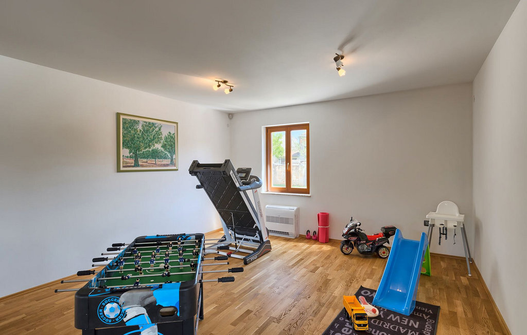 Le rez-de-chaussée se compose d'une cuisine entièrement équipée, d'un coin repas avec accès à la terrasse et d'un salon spacieux relié à une salle où vous pouvez jouer au baby-foot ou utiliser le tapis roulant et le vélo de fitness. À l'étage supérieur se trouvent les trois chambres à coucher. Chacune dispose d'un lit double et d'une salle de bain privée et chacune est décorée dans son propre style particulier. À cet étage, vous trouverez également une belle terrasse où vous pourrez déguster votre café du matin avec une vue magnifique. Le jardin de la villa est spacieux et vous permet de passer de bons moments en plein air. En plus de la piscine privée, il y a une petite aire de jeux pour les enfants avec une balançoire et un trampoline, ainsi qu'une salle à manger où vous pourrez déguster vos repas préparés au barbecue ou dans la cuisine extérieure. Un réfrigérateur à vin est également à votre disposition à des prix spéciaux. La villa Salambati est le choix parfait pour des vacances reposantes en famille ou entre amis.Salambati est une petite localité de l'Istrie centrale, près de Svetvincenat. Cette petite ville et de nombreuses autres villes similaires dans toute l'Istrie centrale sont de véritables trésors culturels et gastronomiques qui méritent d'être explorés. Cette partie de la Croatie est également connue pour ses diverses pistes cyclables et ses sentiers de randonnée. Mais si vous souhaitez profiter des plages le long de la côte istrienne, il vous faudra parcourir environ 20 km pour atteindre de magnifiques plages de pierre ou de sable, que ce soit sur la côte est ou ouest de l'Istrie. Un peu moins de 30 km vous séparent de l'époustouflante ville de Rovinj et un peu plus de 30 km de la ville historique de Pula. Profitez également de l'occasion pour visiter Lim, la baie au statut de paysage protégé.