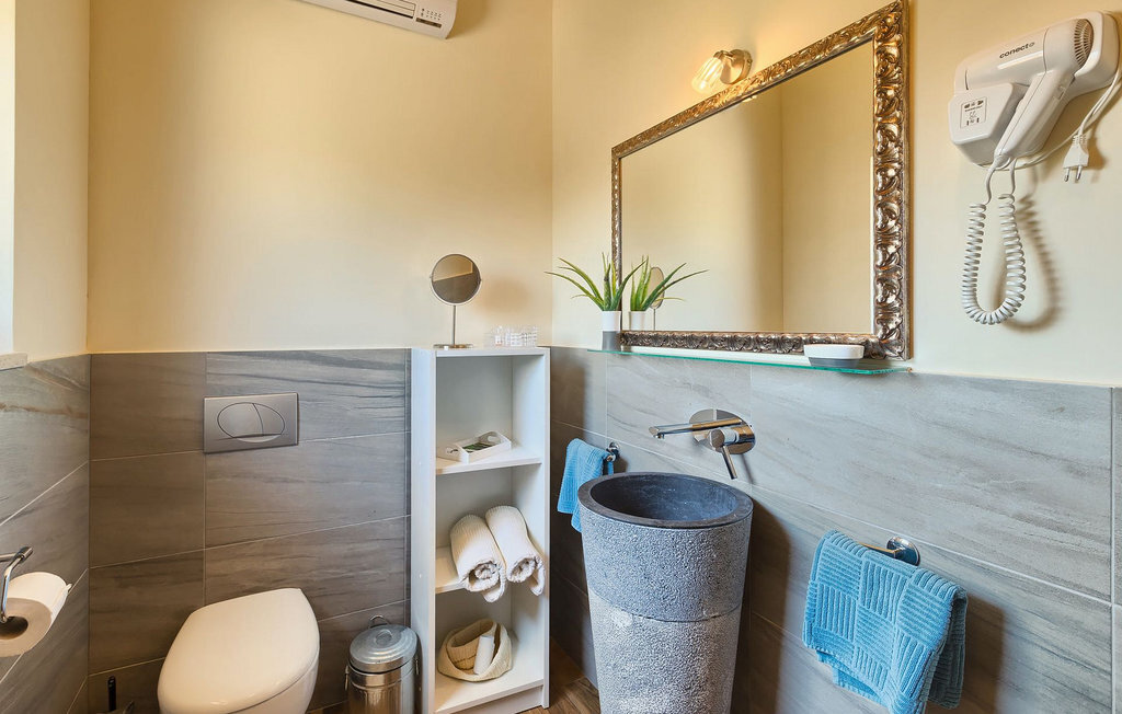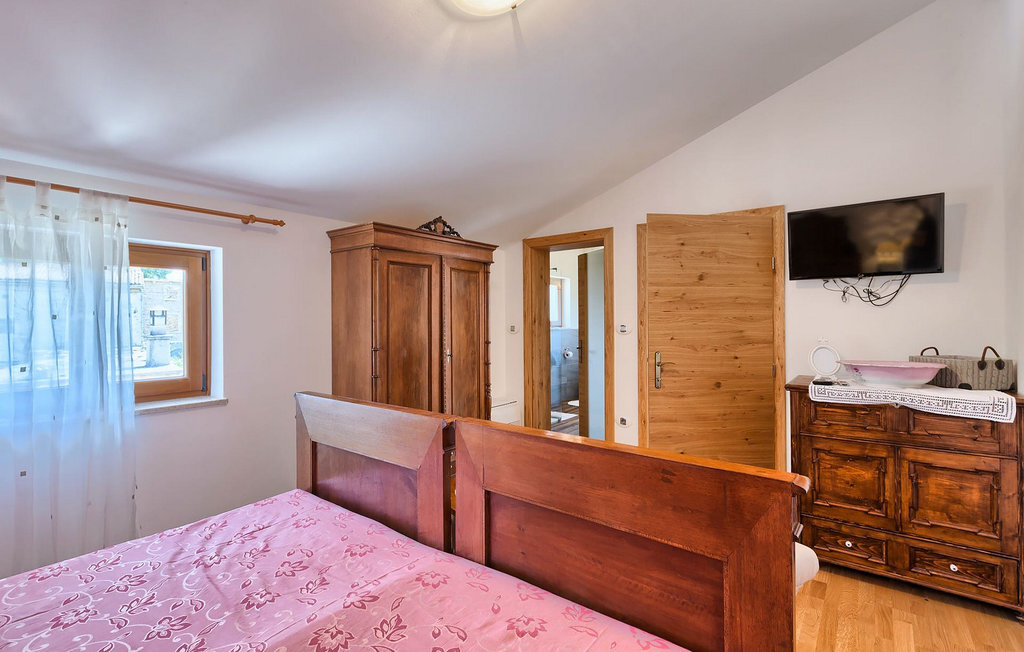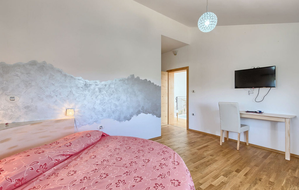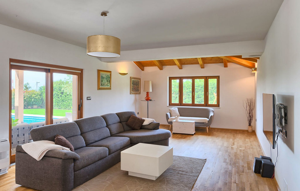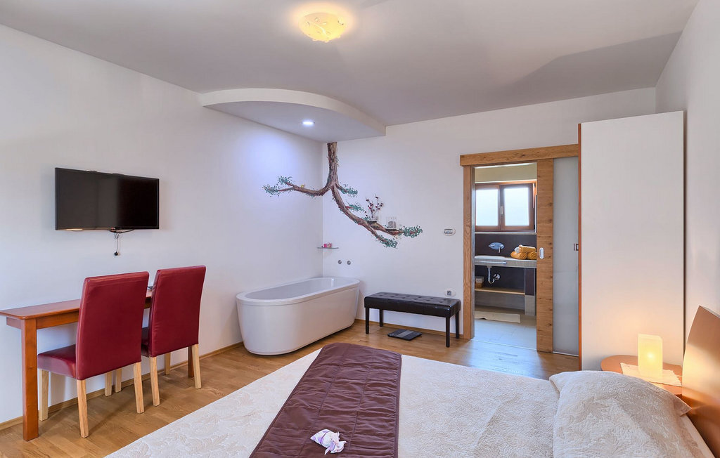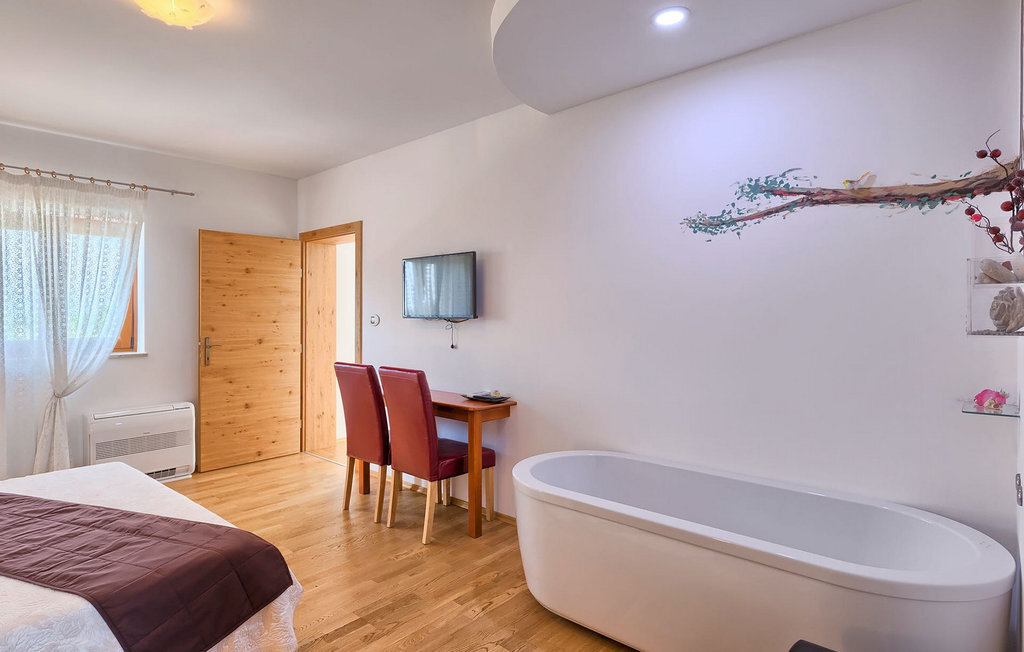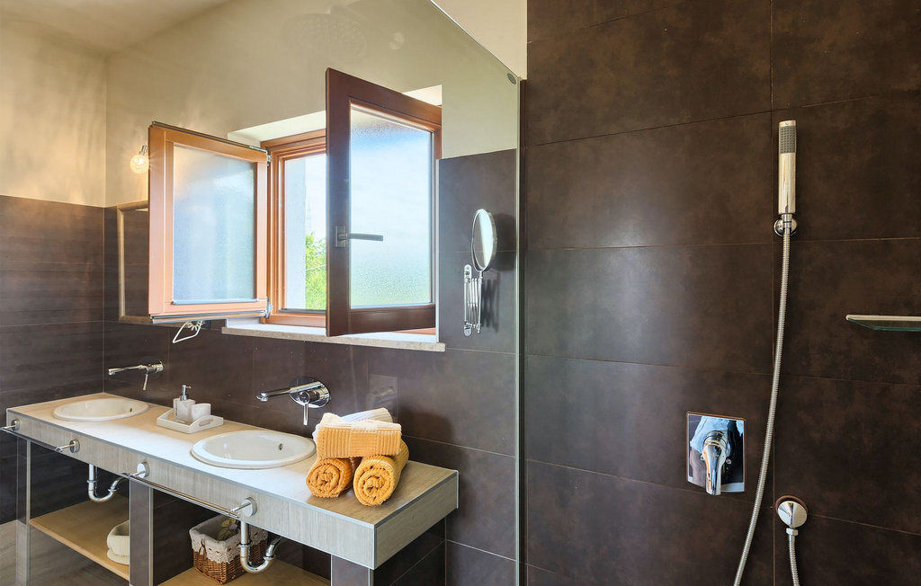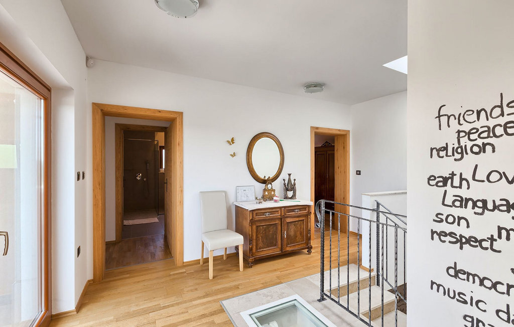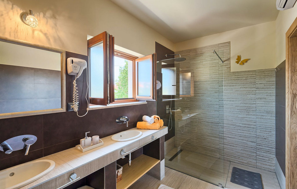 Le rez-de-chaussée se compose d'une cuisine entièrement équipée, d'un coin repas avec accès à la terrasse et d'un salon spacieux relié à une salle où vous pouvez jouer au baby-foot ou utiliser le tapis roulant et le vélo de fitness. À l'étage supérieur se trouvent les trois chambres à coucher. Chacune dispose d'un lit double et d'une salle de bain privée et chacune est décorée dans son propre style particulier. À cet étage, vous trouverez également une belle terrasse où vous pourrez déguster votre café du matin avec une vue magnifique. Le jardin de la villa est spacieux et vous permet de passer de bons moments en plein air. En plus de la piscine privée, il y a une petite aire de jeux pour les enfants avec une balançoire et un trampoline, ainsi qu'une salle à manger où vous pourrez déguster vos repas préparés au barbecue ou dans la cuisine extérieure. Un réfrigérateur à vin est également à votre disposition à des prix spéciaux. La villa Salambati est le choix parfait pour des vacances reposantes en famille ou entre amis.Salambati est une petite localité de l'Istrie centrale, près de Svetvincenat. Cette petite ville et de nombreuses autres villes similaires dans toute l'Istrie centrale sont de véritables trésors culturels et gastronomiques qui méritent d'être explorés. Cette partie de la Croatie est également connue pour ses diverses pistes cyclables et ses sentiers de randonnée. Mais si vous souhaitez profiter des plages le long de la côte istrienne, il vous faudra parcourir environ 20 km pour atteindre de magnifiques plages de pierre ou de sable, que ce soit sur la côte est ou ouest de l'Istrie. Un peu moins de 30 km vous séparent de l'époustouflante ville de Rovinj et un peu plus de 30 km de la ville historique de Pula. Profitez également de l'occasion pour visiter Lim, la baie au statut de paysage protégé.