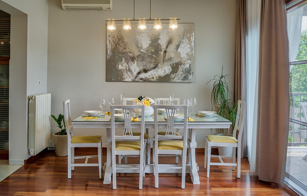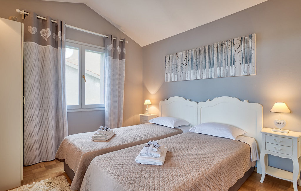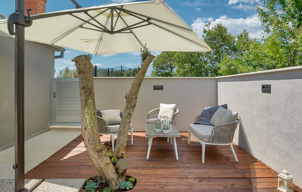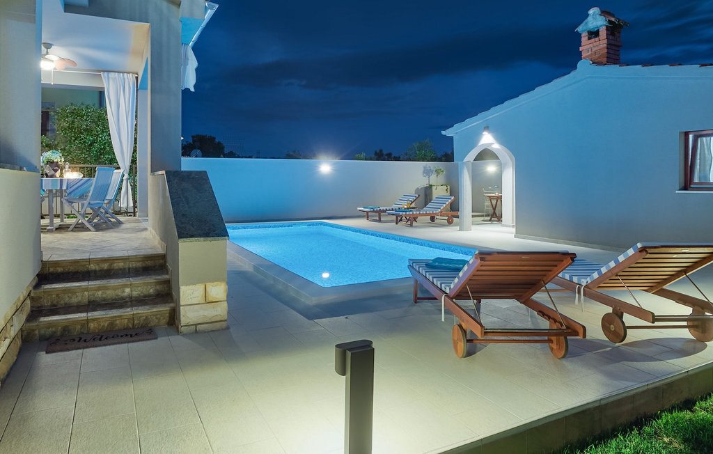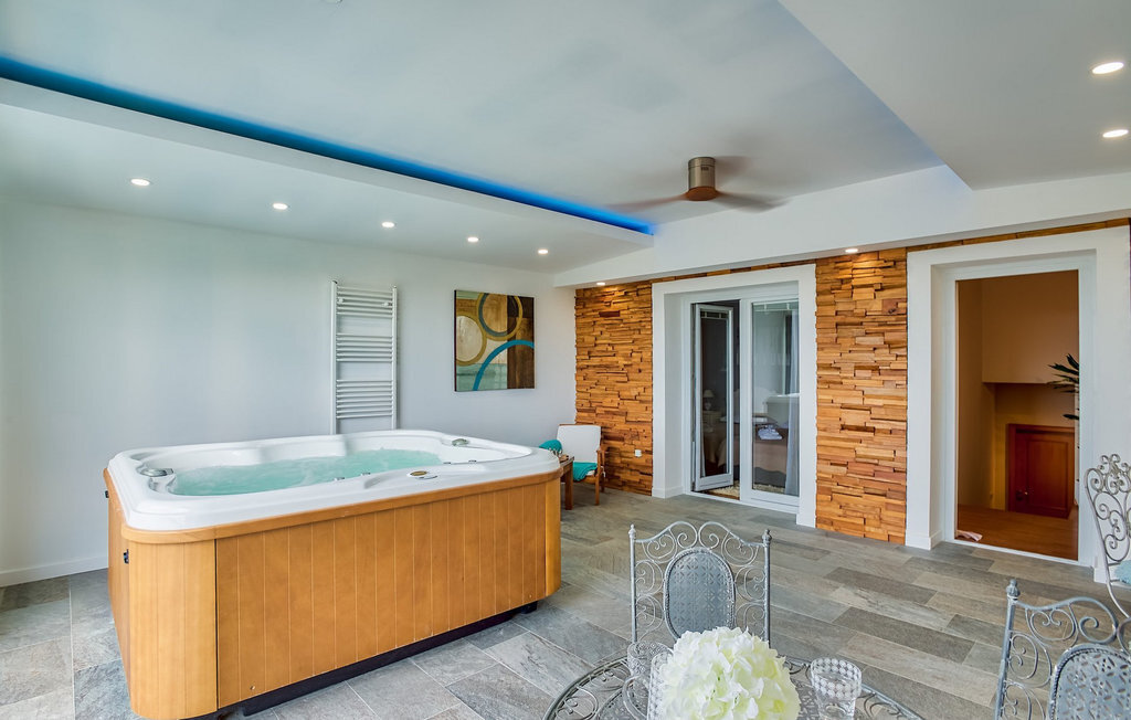 Cette charmante villa se trouve dans la ville historique de Zadar, à seulement 2 km de la belle mer bleue et à quelques pas de votre propre piscine privée ! La villa Antea se compose d'un rez-de-chaussée et de deux mezzanines. Les 4 chambres et les 2 salles de bains sont réparties de manière égale sur les deux mezzanines. La troisième salle de bains, le salon avec une cuisine et une salle à manger entièrement équipées se trouvent au rez-de-chaussée avec un accès direct à la piscine. L'espace extérieur dispose également d'une cuisine séparée et d'un espace commun avec barbecue et petite table à manger. Bien sûr, il y a aussi la belle piscine privée avec des chaises longues pour se détendre et se rafraîchir pendant les chaudes journées d'été. Le jacuzzi se trouve au deuxième étage intermédiaire, avec de grandes portes coulissantes, d'où l'on peut admirer de magnifiques couchers de soleil romantiques. Profitez de votre temps dans cette magnifique villa confortable. :)La villa Antea est située à Zadar, l'une des destinations de vacances les plus populaires de Dalmatie et l'une des villes "must-see" de Croatie. Zadar est une ville historique au riche patrimoine culturel et historique, qui remonte à l'Antiquité, au Moyen-Âge et à la Renaissance. Visitez la place romaine, l'église Saint-Donat, la cathédrale Sainte-Anastasie ou découvrez l'ancien mur de défense. Outre ses beautés culturelles et historiques, la Dalmatie offre une expérience gastronomique unique, connue pour son prosciutto dalmate fait maison (prut) et ses coquillages bleus méditerranéens. Zadar est célèbre pour son installation lumineuse "Pozdrav Suncu" (Salutations au soleil) et sa symphonie d'orgues de mer. La ville complète son offre avec différentes plages, des restaurants, des bars et des cafés. Comme idée d'excursion d'une journée, nous recommanderions les parcs nationaux et naturels, tels que les chutes de Krka, les îles Kornati, les lacs de Plitvice, Vransko jezero, Telascica et Paklenica, qui vous couperont sans aucun doute le souffle.