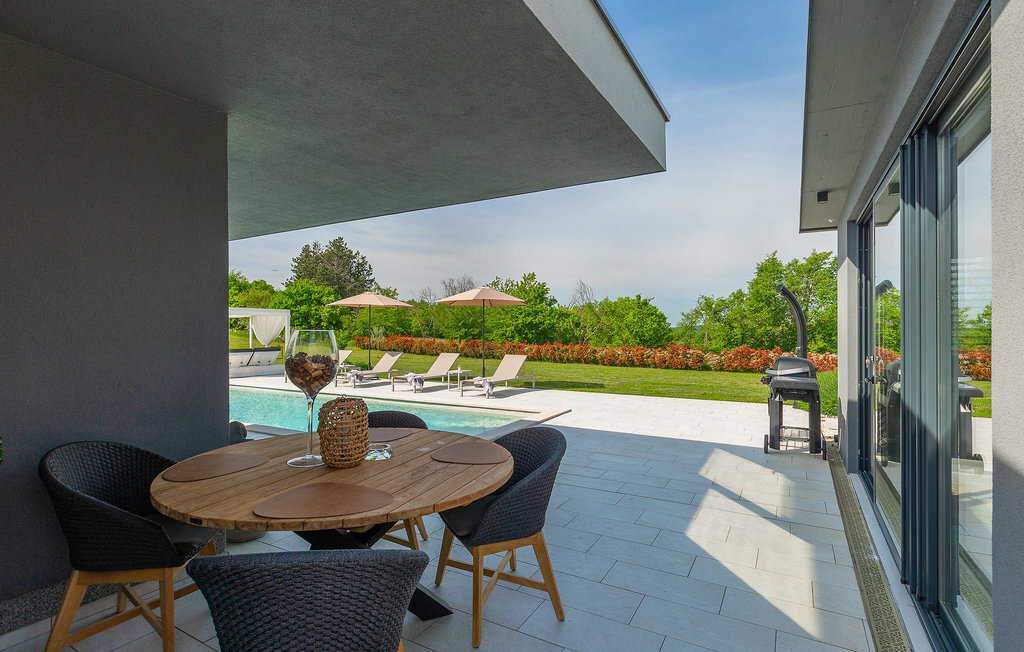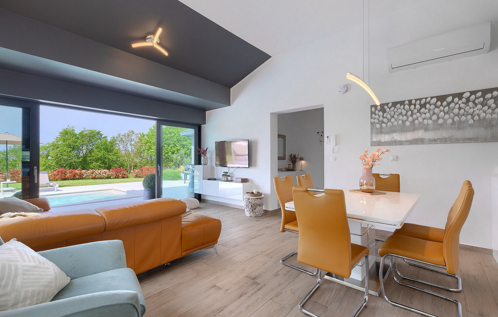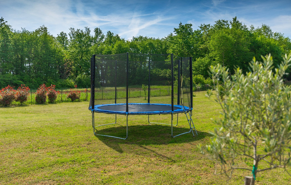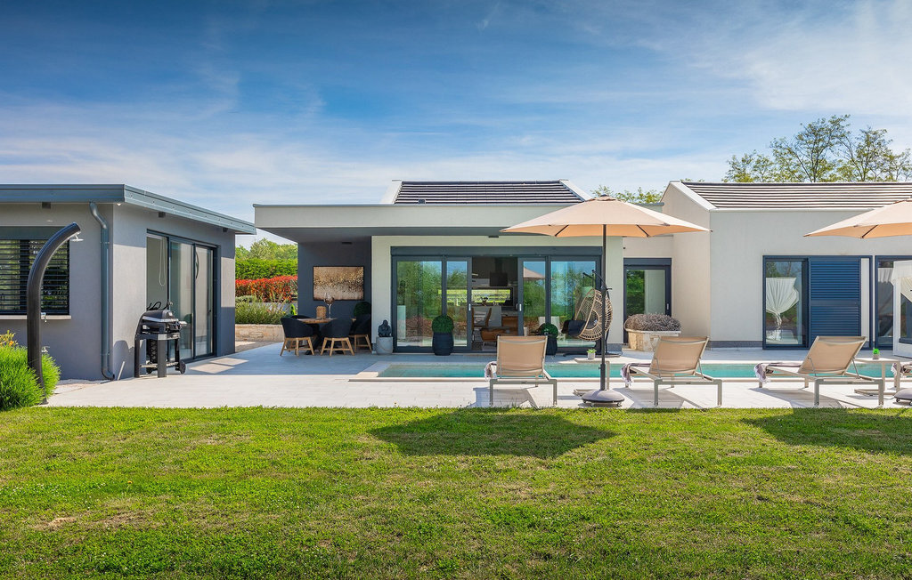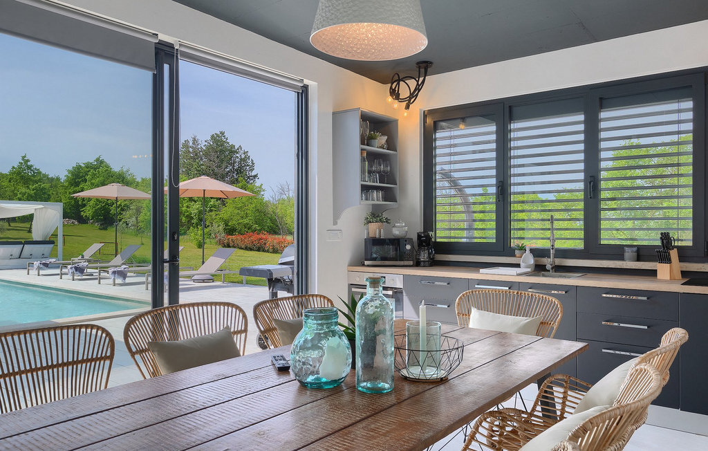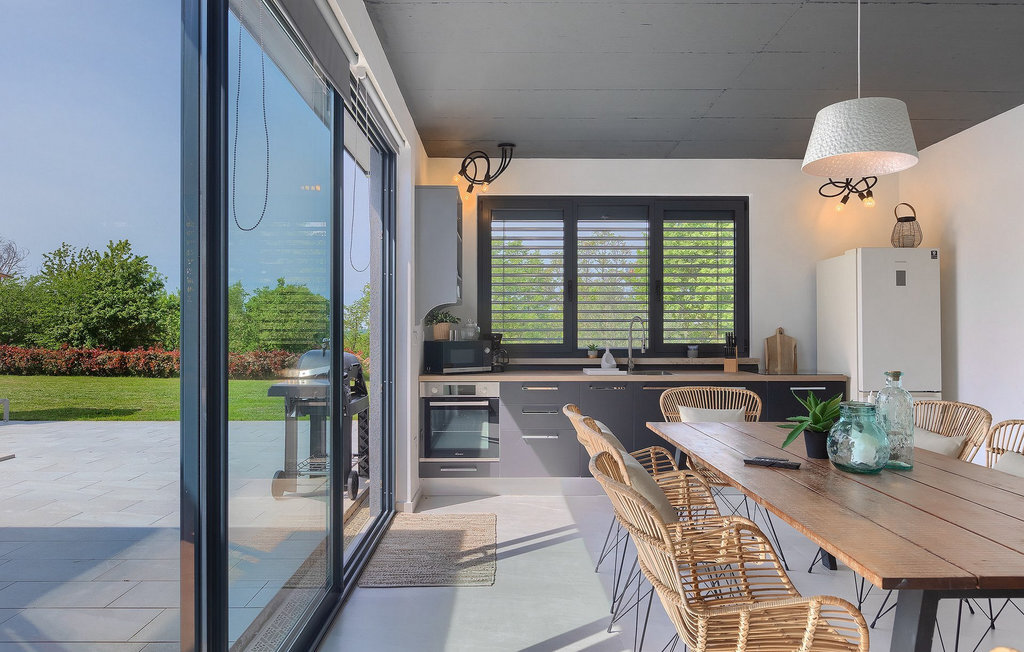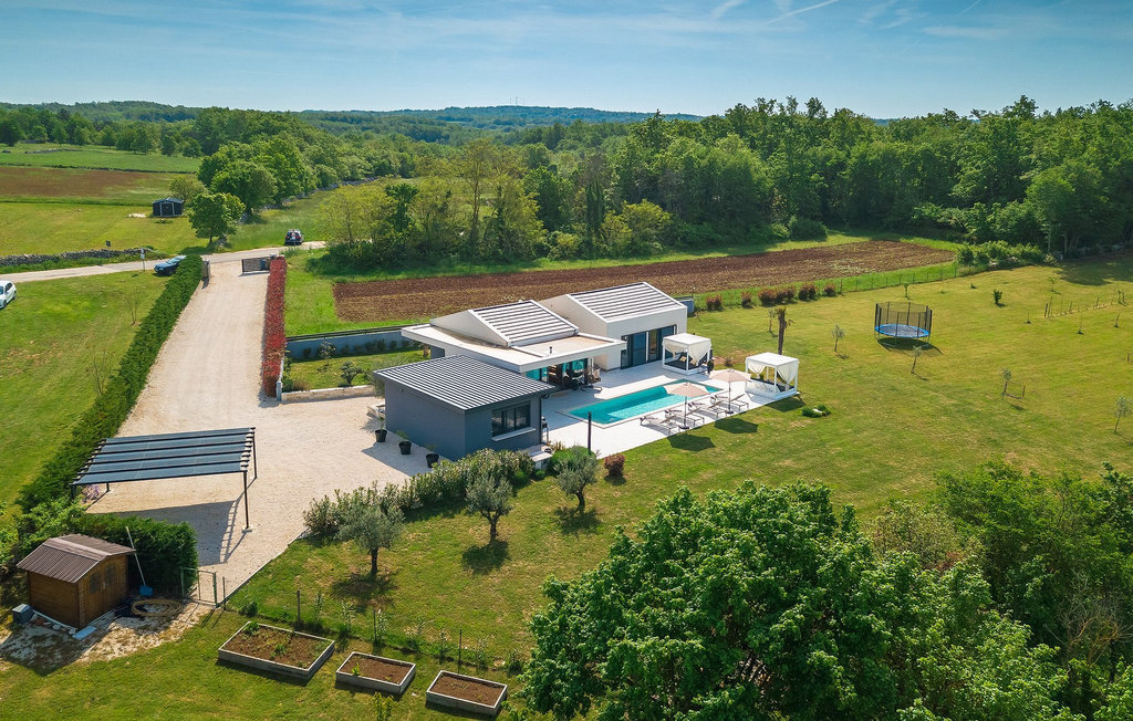 Profitez de vos vacances dans la belle villa moderne Mala Oaza, située dans une petite ville au cœur des collines verdoyantes de l'Istrie centrale. Cette villa d'un étage peut accueillir 6 personnes et est idéale pour des vacances en famille. Vous passerez certainement beaucoup de temps ensemble autour de la grande piscine privée. Pendant que vous faites un barbecue, les petits peuvent aussi jouer au volley-ball dans le grand jardin. Avec de nombreux meubles de jardin et des chaises longues, le jardin offre beaucoup d'espace pour se détendre, prendre le soleil ou se reposer à l'ombre des parasols. Toutes les pièces de la villa se trouvent au rez-de-chaussée. La pièce commune centrale relie la cuisine, le salon et la salle à manger, aménagée dans des couleurs chaudes avec de nombreux détails élégants et de magnifiques tableaux. La cuisine avec îlot de cuisson est entièrement équipée et offre beaucoup d'espace pour cuisiner. La grande porte vitrée ouvre la pièce et donne sur la piscine accueillante de la villa. Dehors, vous trouverez également le barbecue et suffisamment de place pour un dîner en plein air. Le couloir vous mène aux trois chambres à coucher chics avec des papiers peints intéressants, élégamment meublées avec une sortie directe sur le jardin. Chaque chambre à coucher avec lits doubles dispose de la climatisation. Ici, vous pouvez vous détendre et planifier votre excursion dans l'arrière-pays magique de l'Istrie.Le village de Sveti Petar u Sumi est un petit village décontracté non loin des grandes villes touristiques plus agitées. Les premiers magasins sont à 1 km et les grands supermarchés se trouvent dans un rayon de 5 km. Bien que cette localité soit assez petite, vous pouvez y visiter une belle église (l'église du couvent des Saints Pierre et Paul l'Apôtre) si l'architecture et les mosaïques de l'époque gothique vous intéressent. Visitez la belle ville voisine de Pazin. Pendant des siècles, Pazin a été la plus forte forteresse des Habsbourg dans cette région et le quartier général de l'ancien prince. Vous pouvez également visiter ce château médiéval (Kastel) aujourd'hui, car il est bien conservé. Aujourd'hui, il abrite le musée ethnographique d'Istrie et le musée de la ville de Pazin. Découvrez également l'arrière-pays en faisant des randonnées à pied ou à vélo et goûtez aux célèbres spécialités istriennes comme les truffes.