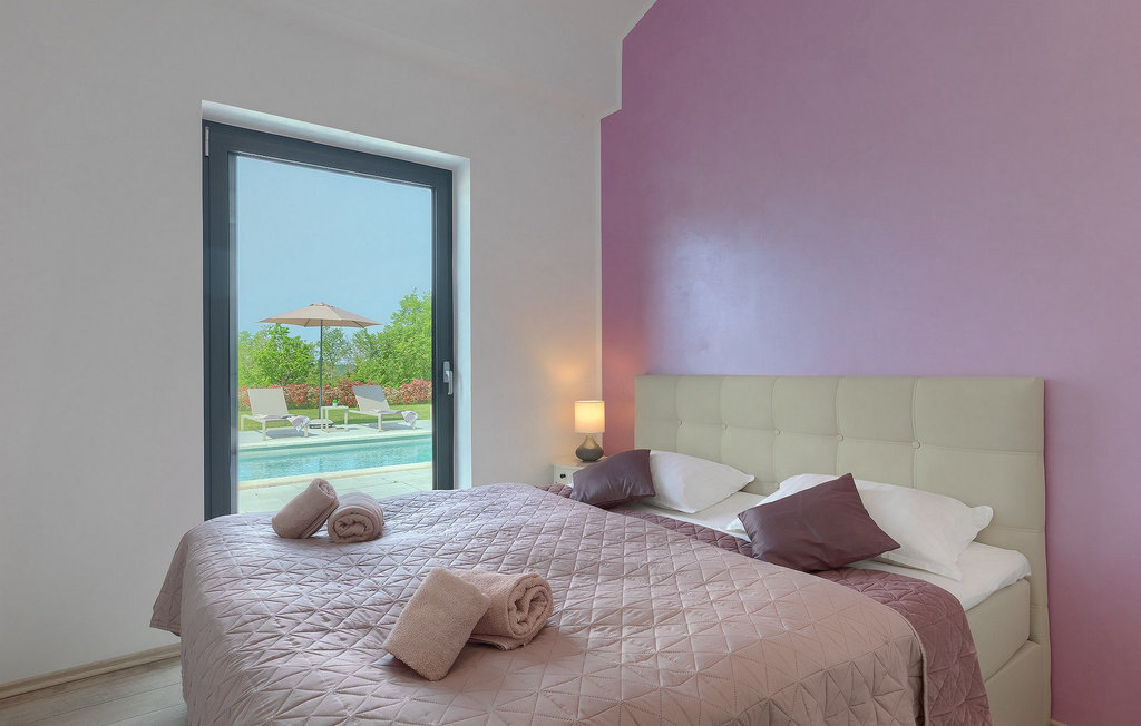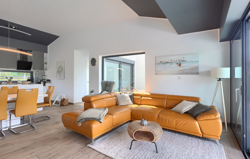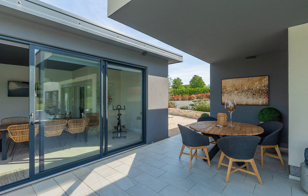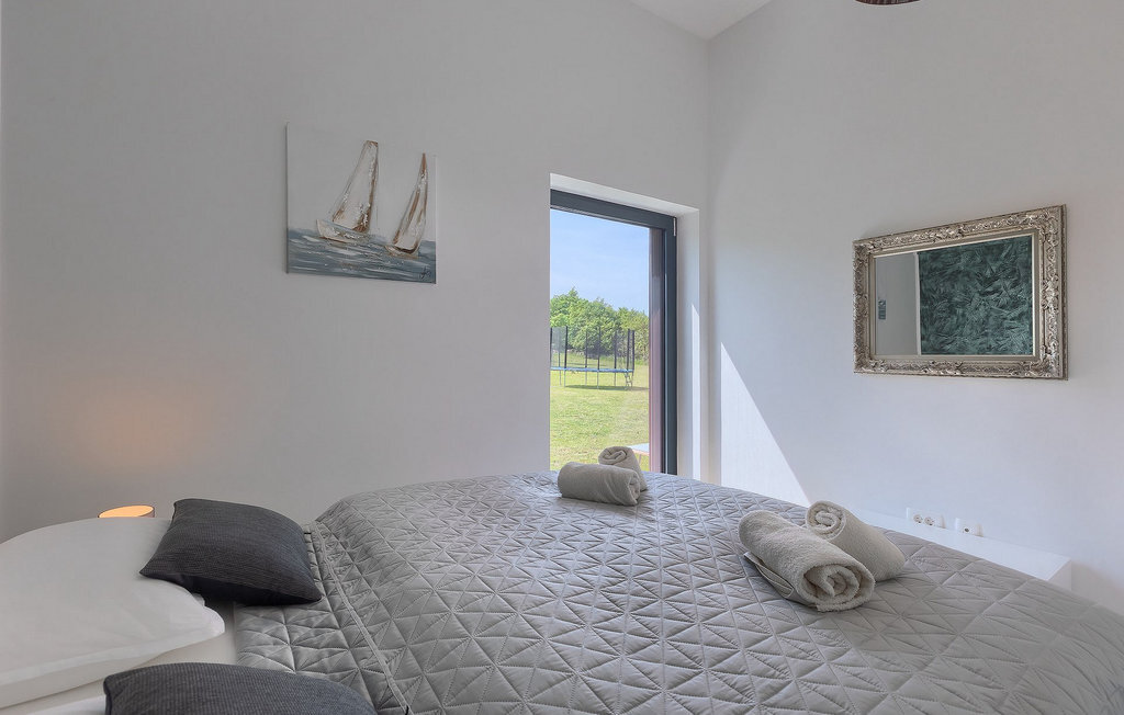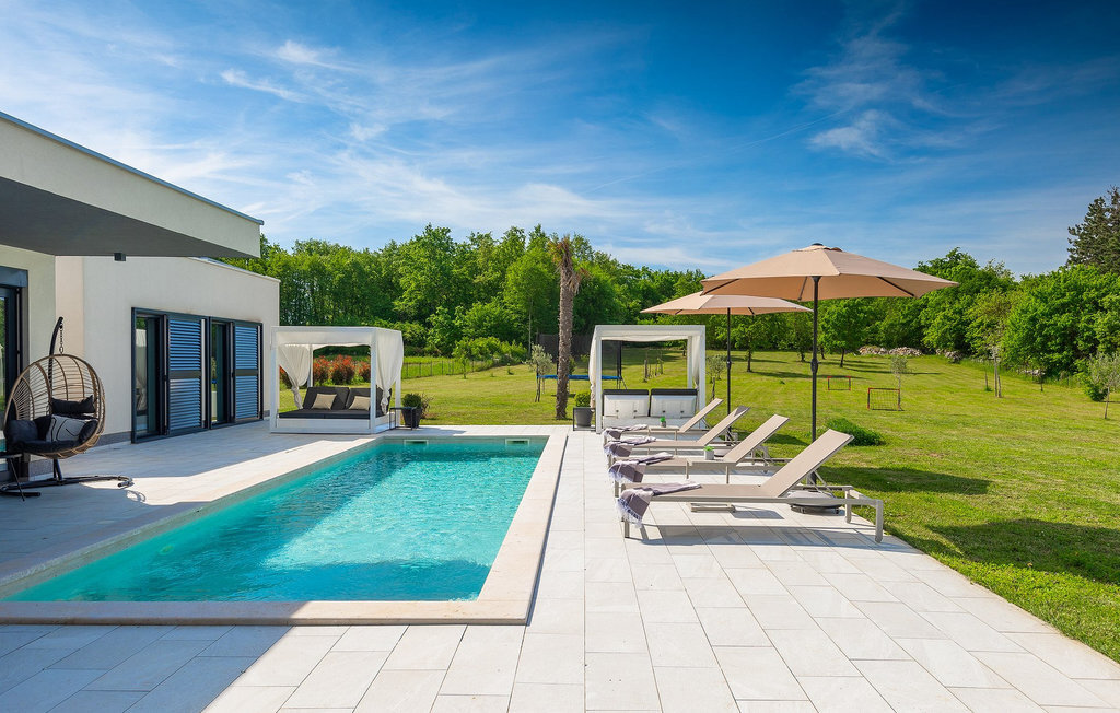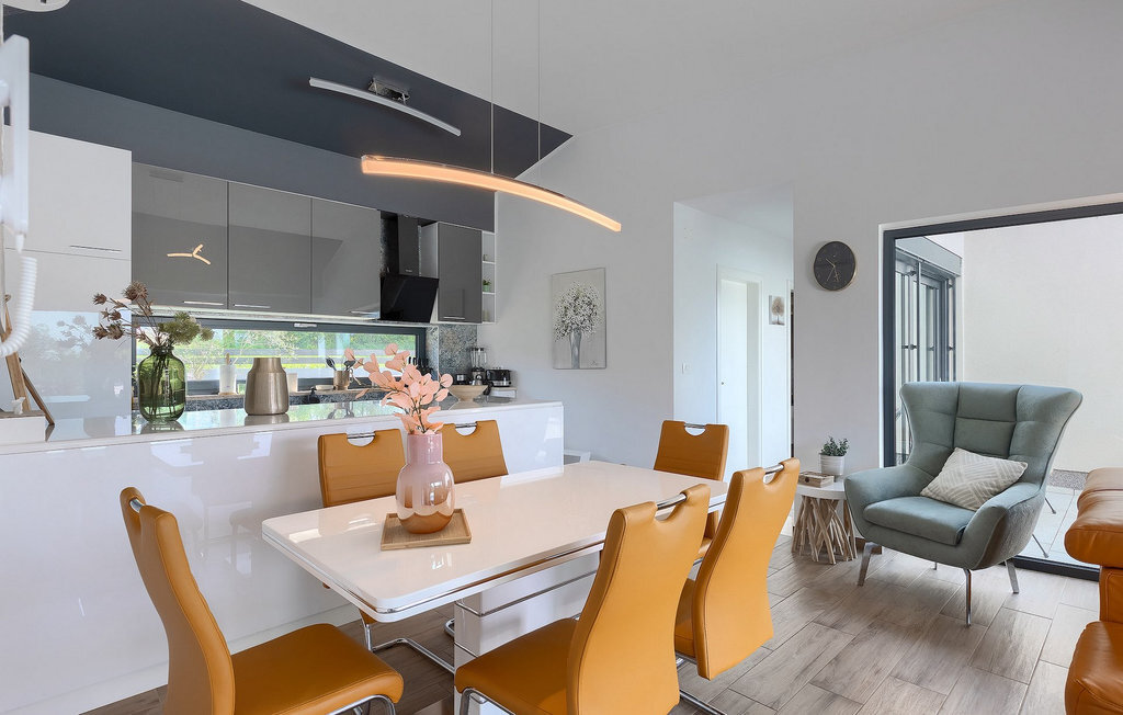 Profitez de vos vacances dans la belle villa moderne Mala Oaza, située dans une petite ville au cœur des collines verdoyantes de l'Istrie centrale. Cette villa d'un étage peut accueillir 6 personnes et est idéale pour des vacances en famille. Vous passerez certainement beaucoup de temps ensemble autour de la grande piscine privée. Pendant que vous faites un barbecue, les petits peuvent aussi jouer au volley-ball dans le grand jardin. Avec de nombreux meubles de jardin et des chaises longues, le jardin offre beaucoup d'espace pour se détendre, prendre le soleil ou se reposer à l'ombre des parasols. Toutes les pièces de la villa se trouvent au rez-de-chaussée. La pièce commune centrale relie la cuisine, le salon et la salle à manger, aménagée dans des couleurs chaudes avec de nombreux détails élégants et de magnifiques tableaux. La cuisine avec îlot de cuisson est entièrement équipée et offre beaucoup d'espace pour cuisiner. La grande porte vitrée ouvre la pièce et donne sur la piscine accueillante de la villa. Dehors, vous trouverez également le barbecue et suffisamment de place pour un dîner en plein air. Le couloir vous mène aux trois chambres à coucher chics avec des papiers peints intéressants, élégamment meublées avec une sortie directe sur le jardin. Chaque chambre à coucher avec lits doubles dispose de la climatisation. Ici, vous pouvez vous détendre et planifier votre excursion dans l'arrière-pays magique de l'Istrie.Le village de Sveti Petar u Sumi est un petit village décontracté non loin des grandes villes touristiques plus agitées. Les premiers magasins sont à 1 km et les grands supermarchés se trouvent dans un rayon de 5 km. Bien que cette localité soit assez petite, vous pouvez y visiter une belle église (l'église du couvent des Saints Pierre et Paul l'Apôtre) si l'architecture et les mosaïques de l'époque gothique vous intéressent. Visitez la belle ville voisine de Pazin. Pendant des siècles, Pazin a été la plus forte forteresse des Habsbourg dans cette région et le quartier général de l'ancien prince. Vous pouvez également visiter ce château médiéval (Kastel) aujourd'hui, car il est bien conservé. Aujourd'hui, il abrite le musée ethnographique d'Istrie et le musée de la ville de Pazin. Découvrez également l'arrière-pays en faisant des randonnées à pied ou à vélo et goûtez aux célèbres spécialités istriennes comme les truffes.