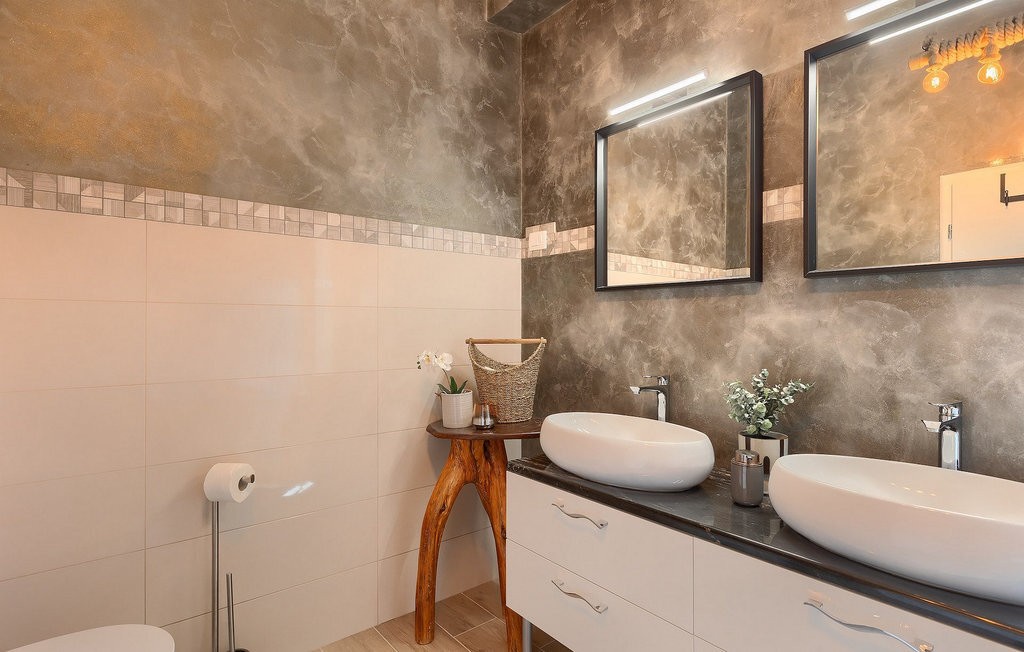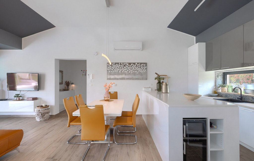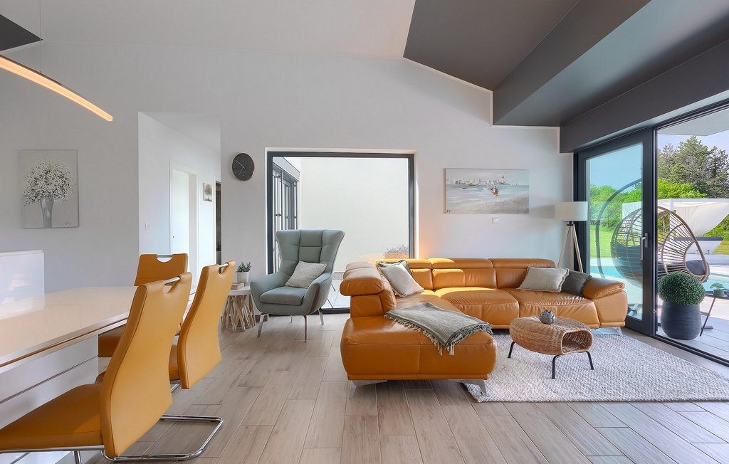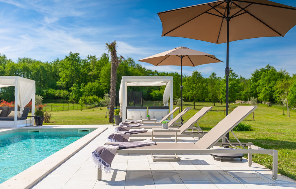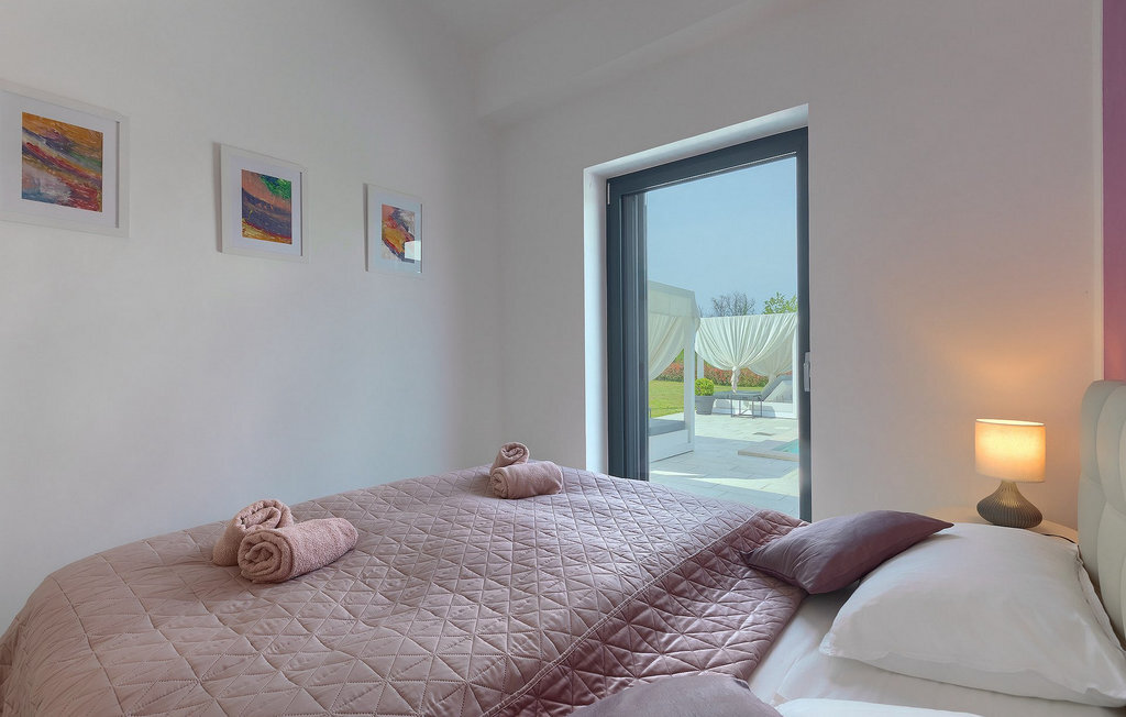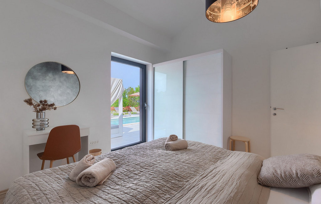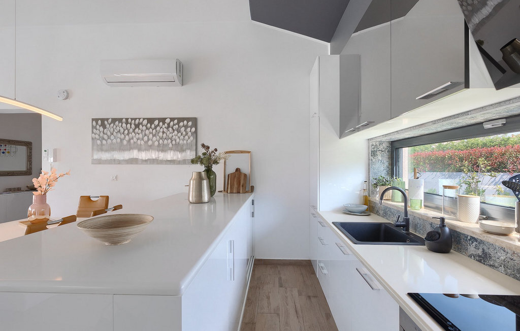 Profitez de vos vacances dans la belle villa moderne Mala Oaza, située dans une petite ville au cœur des collines verdoyantes de l'Istrie centrale. Cette villa d'un étage peut accueillir 6 personnes et est idéale pour des vacances en famille. Vous passerez certainement beaucoup de temps ensemble autour de la grande piscine privée. Pendant que vous faites un barbecue, les petits peuvent aussi jouer au volley-ball dans le grand jardin. Avec de nombreux meubles de jardin et des chaises longues, le jardin offre beaucoup d'espace pour se détendre, prendre le soleil ou se reposer à l'ombre des parasols. Toutes les pièces de la villa se trouvent au rez-de-chaussée. La pièce commune centrale relie la cuisine, le salon et la salle à manger, aménagée dans des couleurs chaudes avec de nombreux détails élégants et de magnifiques tableaux. La cuisine avec îlot de cuisson est entièrement équipée et offre beaucoup d'espace pour cuisiner. La grande porte vitrée ouvre la pièce et donne sur la piscine accueillante de la villa. Dehors, vous trouverez également le barbecue et suffisamment de place pour un dîner en plein air. Le couloir vous mène aux trois chambres à coucher chics avec des papiers peints intéressants, élégamment meublées avec une sortie directe sur le jardin. Chaque chambre à coucher avec lits doubles dispose de la climatisation. Ici, vous pouvez vous détendre et planifier votre excursion dans l'arrière-pays magique de l'Istrie.Le village de Sveti Petar u Sumi est un petit village décontracté non loin des grandes villes touristiques plus agitées. Les premiers magasins sont à 1 km et les grands supermarchés se trouvent dans un rayon de 5 km. Bien que cette localité soit assez petite, vous pouvez y visiter une belle église (l'église du couvent des Saints Pierre et Paul l'Apôtre) si l'architecture et les mosaïques de l'époque gothique vous intéressent. Visitez la belle ville voisine de Pazin. Pendant des siècles, Pazin a été la plus forte forteresse des Habsbourg dans cette région et le quartier général de l'ancien prince. Vous pouvez également visiter ce château médiéval (Kastel) aujourd'hui, car il est bien conservé. Aujourd'hui, il abrite le musée ethnographique d'Istrie et le musée de la ville de Pazin. Découvrez également l'arrière-pays en faisant des randonnées à pied ou à vélo et goûtez aux célèbres spécialités istriennes comme les truffes.