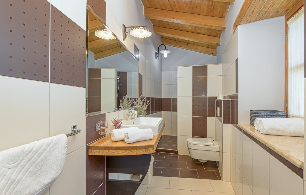 Un escalier en bois mène aux 3 chambres confortables avec leur propre salle de bain moderne au premier étage. L'une des chambres à coucher a accès à un beau balcon où vous pouvez boire tranquillement votre café du matin ou simplement vous reposer et lire votre livre préféré.
