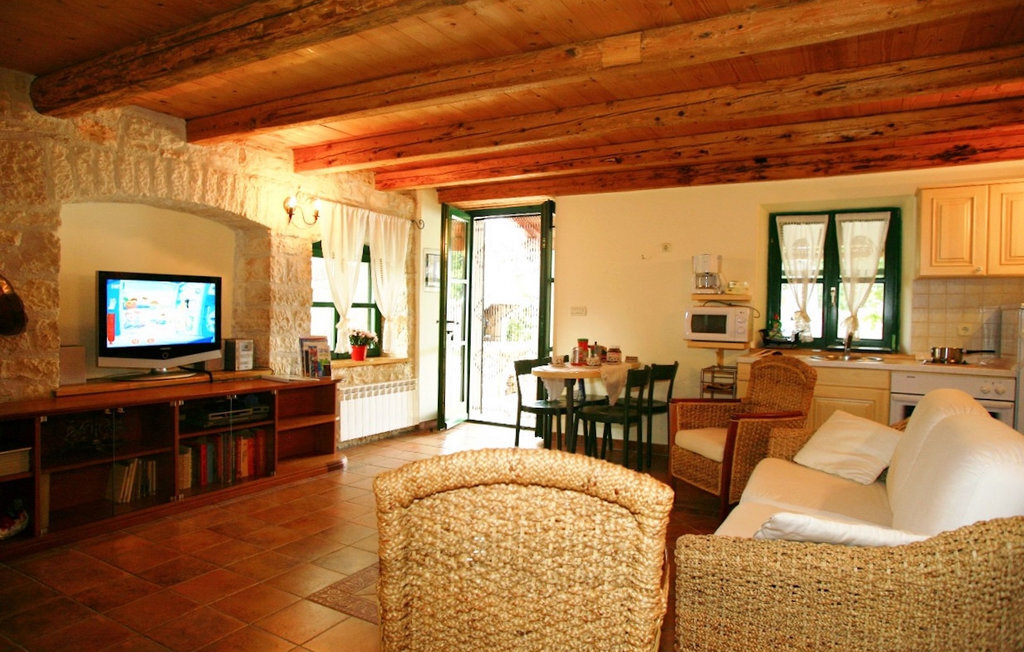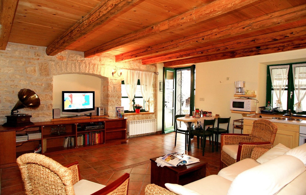 La Villa Bassi est située dans un village tranquille de l'Istrie centrale, mais à une courte distance en voiture des villes côtières touristiques. La villa peut accueillir jusqu'à 3 adultes et 1 enfant, ce qui la rend idéale pour les familles. Le terrain est entièrement clôturé et offre une piscine privée avec des chaises longues pour se détendre. Une salle à manger extérieure et un barbecue sont également disponibles, où vous pourrez préparer de délicieux repas et mettre vos talents culinaires à l'épreuve. Le rez-de-chaussée de la villa se compose d'un salon ouvert sur une cuisine entièrement équipée et un coin repas, ainsi que de toilettes et d'une taverne avec cheminée. Au premier étage se trouvent deux chambres à coucher confortables et une salle de bain. Une chambre a un lit double et une chambre a un lit simple plus grand. Dans le salon, il y a aussi un canapé-lit qui peut être utilisé pour un petit enfant. La villa dispose de deux climatiseurs, d'un accès à Internet et d'un parking pour deux voitures. Laissez-vous séduire par le charme istrien de la Villa Bassi et profitez de vacances calmes et reposantes.La Villa Bassi se trouve dans le paisible village de Jakovici, en Istrie centrale, qui est le lieu de retraite idéal pour échapper au stress de la vie quotidienne et aux villes touristiques surpeuplées. Les villes côtières comme Porec et Rovinj ne sont qu'à une courte distance en voiture. Vous y trouverez une multitude de cafés, de bars et de restaurants. Goûtez à la délicieuse cuisine méditerranéenne proposée dans les restaurants. Détendez-vous sur les magnifiques plages et plongez dans les eaux cristallines. La ?ville des artistes ? Groznjan est située sur une colline et offre une vue magnifique sur le paysage idyllique. De nombreux festivals de cinéma et de musique y sont organisés. Découvrez le magnifique paysage de l'Istrie en faisant des randonnées à pied ou à vélo. Les petites villes médiévales de Motovun et Groznjan sont également recommandées. Visitez l'amphithéâtre de Pula ou le parc national de Brijuni. L'Istrie offre vraiment tout ce que l'on peut souhaiter pour des vacances à la fois passionnantes et reposantes.