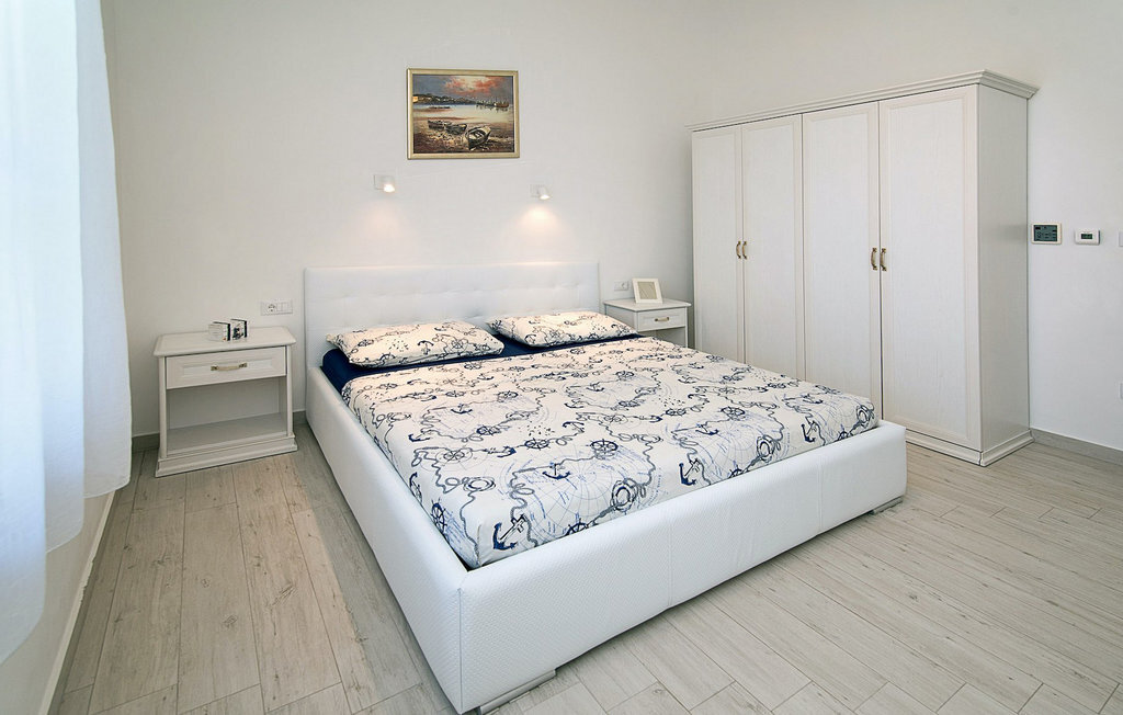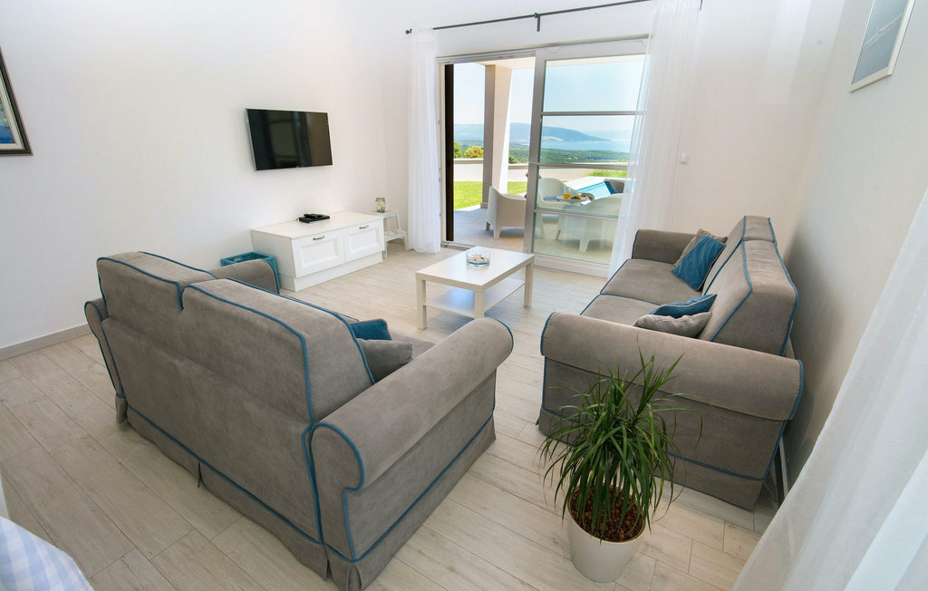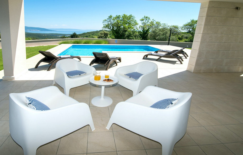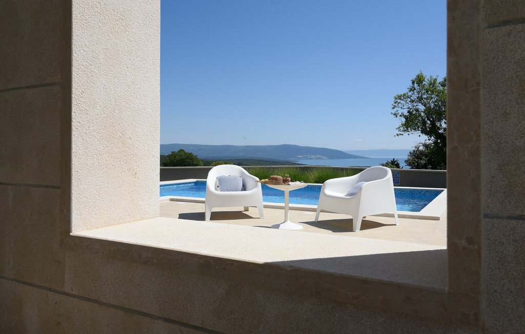 Le salon spacieux et aéré est relié à la salle à manger et à la cuisine et offre un accès direct au jardin avec piscine. Les deux chambres doubles confortables disposent de la climatisation et d'une télévision, ce qui vous permettra de vous détendre complètement pendant vos vacances. Depuis le grand jardin, vous avez une vue phénoménale sur la mer, l'île de Cres et les collines environnantes. Vous décidez vous-même où vous souhaitez passer le plus de temps. Peut-être sur la terrasse couverte avec un coin repas en plein air ou sur l'une des chaises longues à côté de la piscine privée, d'où vous pourrez profiter de la vue.