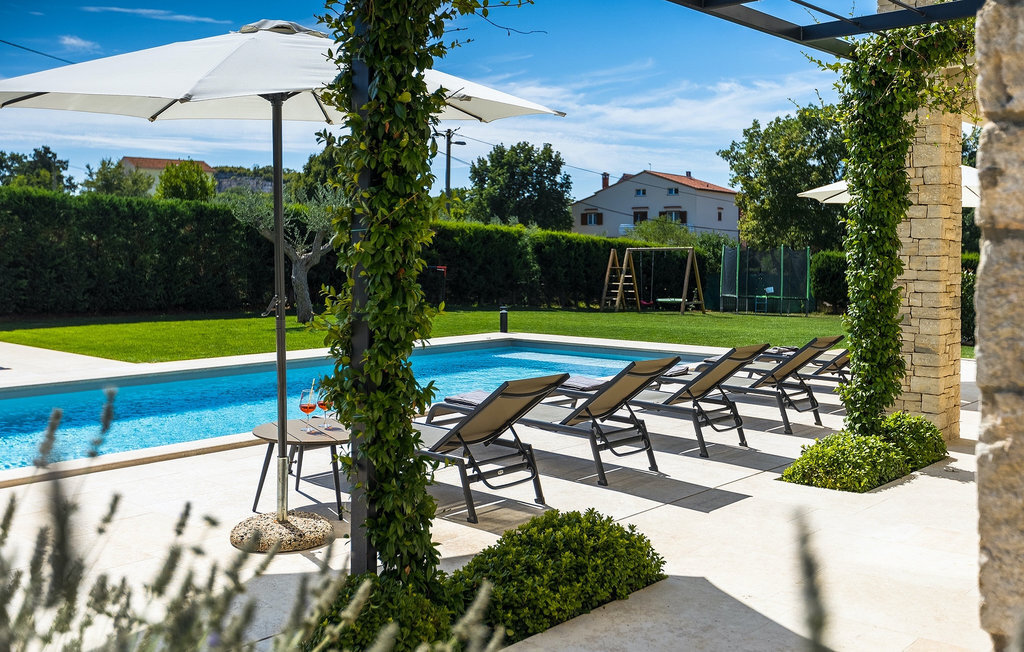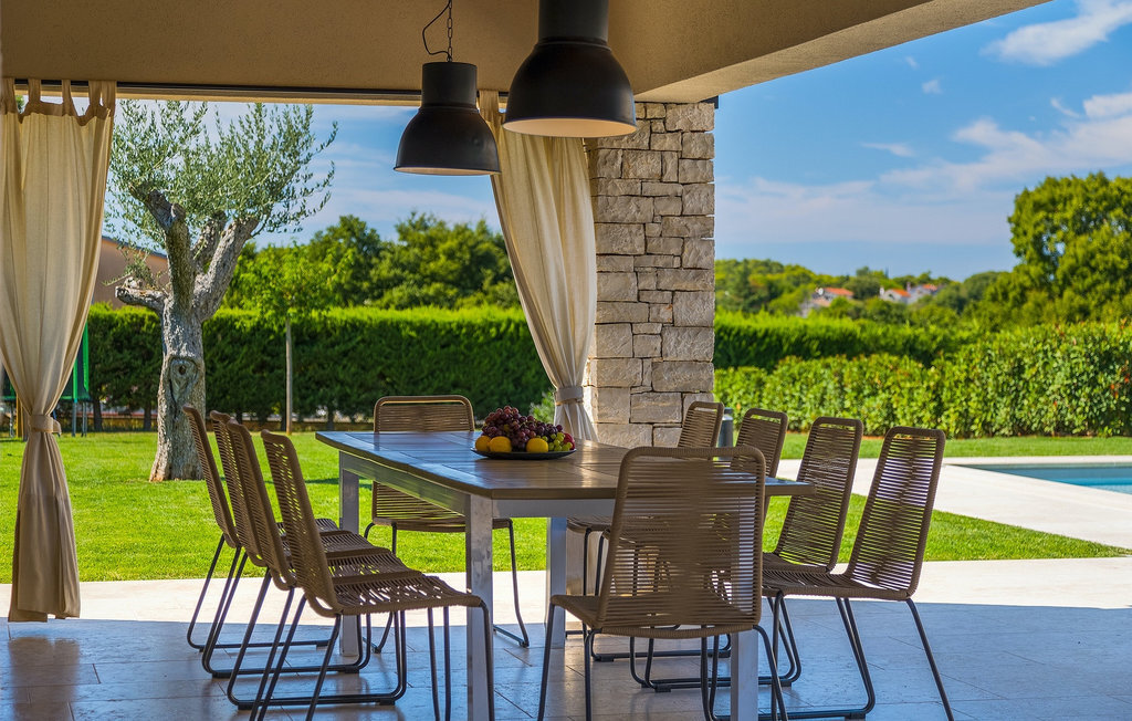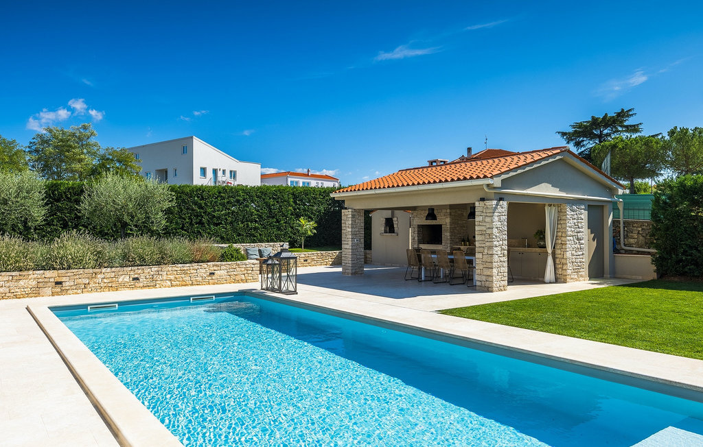 Pour des moments inoubliables en plein air, vous disposez d'un grand jardin avec des pelouses et des fleurs soigneusement aménagées, d'une piscine privée et d'une cuisine extérieure couverte avec une grande salle à manger. Que vous souhaitiez faire un barbecue et traîner, prendre le soleil ou vous reposer, faites une pause dans votre quotidien et ressourcez-vous dans ce lieu magique. La Villa San Martino est votre lieu féerique pour des vacances idéales en famille dans la belle Istrie.