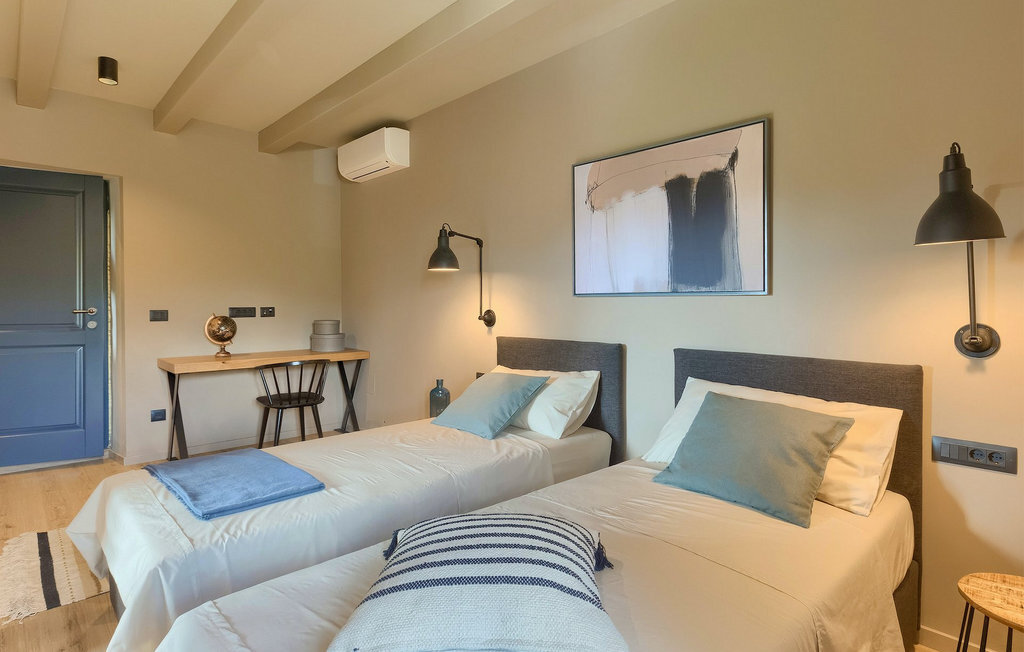 Du rez-de-chaussée, on passe au premier étage où se trouvent trois chambres à coucher, chacune équipée d'un confortable lit double pour le royaume de vos rêves. Vous serez particulièrement impressionné par les détails du mur en pierre et oublierez un instant dans quel siècle vous vous trouvez - ce qui est tout à fait compréhensible en vacances.
