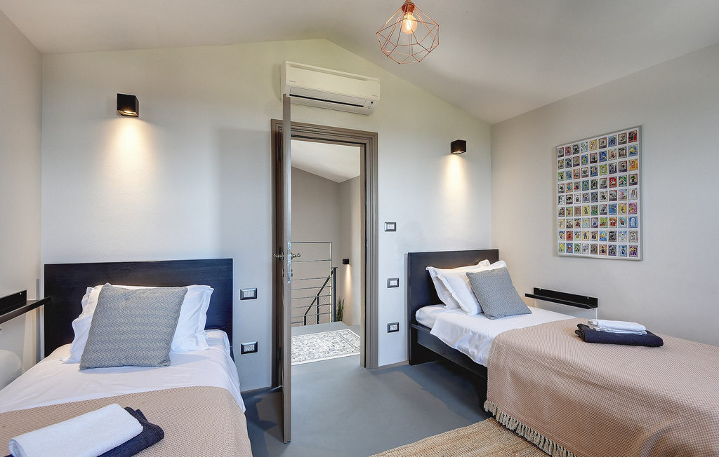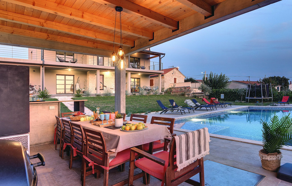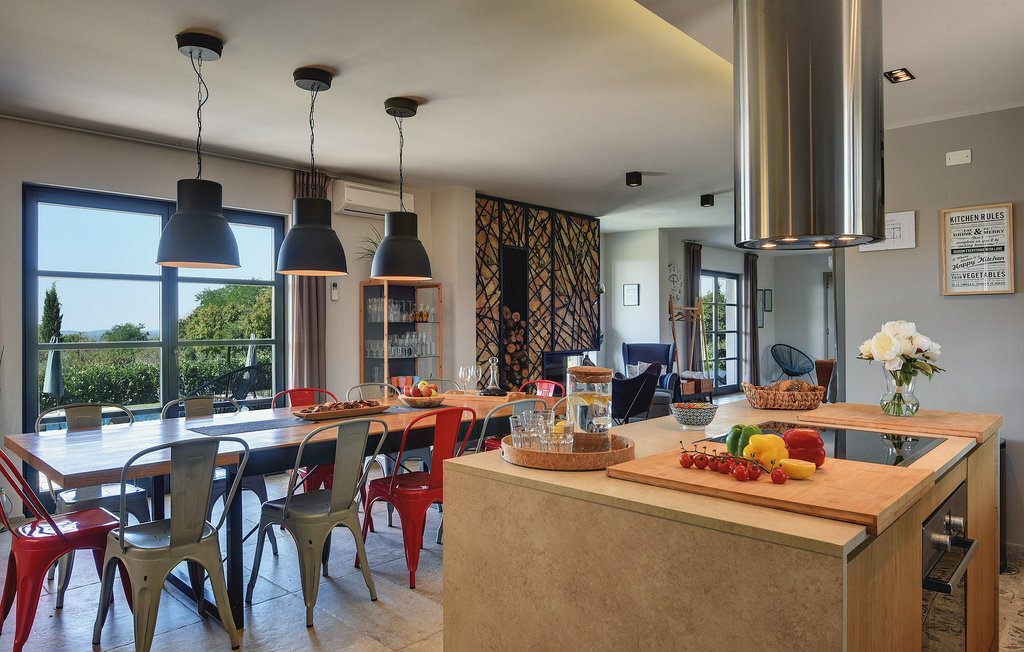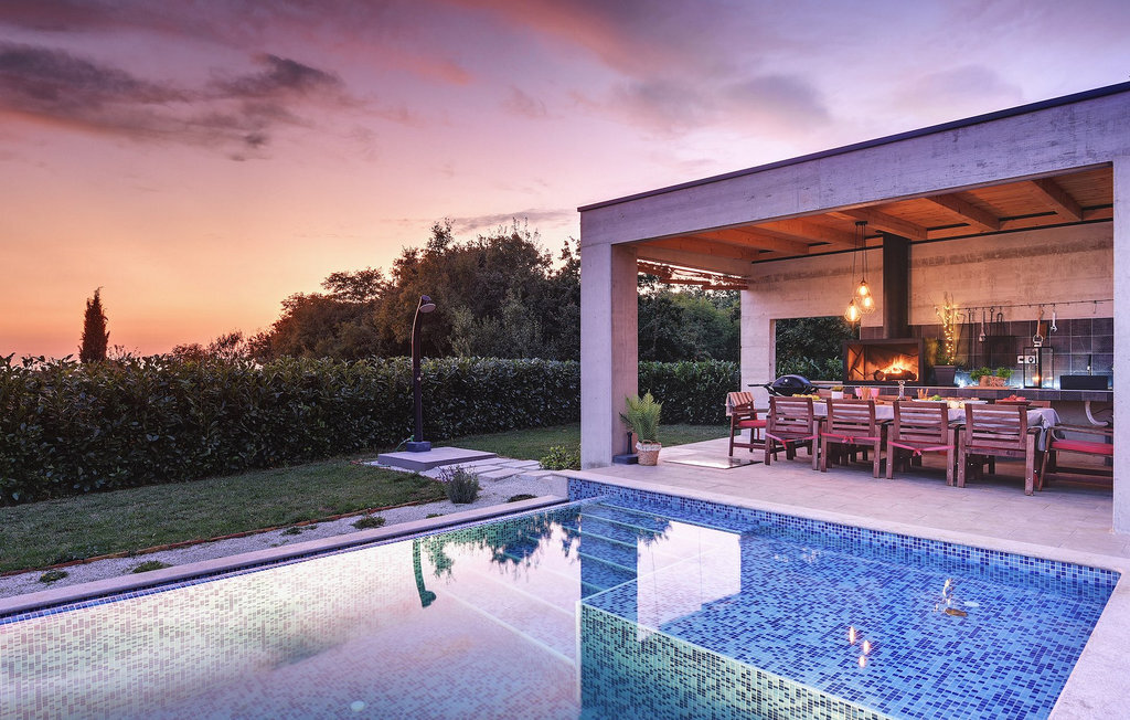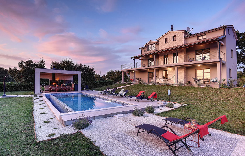 Vous souhaitez oublier votre quotidien et sortir de votre routine ? Plongez dans votre oasis privée de luxe et de tranquillité, car la Villa Two M2 est l'endroit parfait pour vous. Elle est située dans le centre de l'Istrie, avec chaque direction de cette belle péninsule au bout de vos doigts. La villa elle-même est ornée de superlatifs et de détails de design. Le rez-de-chaussée dispose d'un concept ouvert avec une cuisine moderne et entièrement équipée et une table à manger spacieuse. La partie centrale du salon est certainement la cheminée, pour des soirées inoubliables et romantiques. Deux chambres à coucher sont à votre disposition au premier étage et trois au deuxième - chacune avec sa propre salle de bain. Il est difficile de dire quelle partie de la villa est aménagée avec le plus de charme, mais le véritable enthousiasme vous attend en bas, au sous-sol, où vous avez votre propre cinéma privé, une salle de fitness, un bar et une salle de jeux pour enfants sur une surface de 90 m².