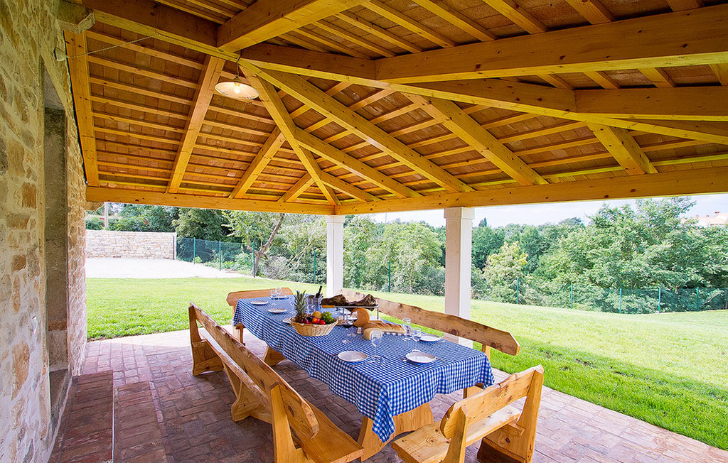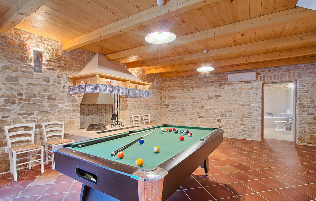 Une belle cuisine, où vous avez tout ce dont vous avez besoin pour préparer de délicieux repas, et une salle à manger pour 12 personnes se trouvent au rez-de-chaussée de la Villa Agra. La villa dispose également d'une salle de télévision séparée avec une cheminée et une table de billard. La maison est entièrement climatisée.Cette belle villa Agra est située dans un petit village de Marcana au nord de Pula. L'emplacement lui-même est idéal pour des vacances familiales reposantes. À seulement 8 kilomètres se trouve Vodnjan, qui offre un grand nombre de restaurants de haut niveau avec de nombreuses spécialités. La plage n'est qu'à 10 kilomètres de la villa et vous pouvez sans problème vous rendre rapidement à votre destination et choisir entre la côte est (Duga Uvala) et la côte ouest (Fazana). Vous pouvez également faire de l'équitation à proximité. Pour les plus aventureux, le parc d'adrénaline de Glavani n'est qu'à quelques minutes en voiture.