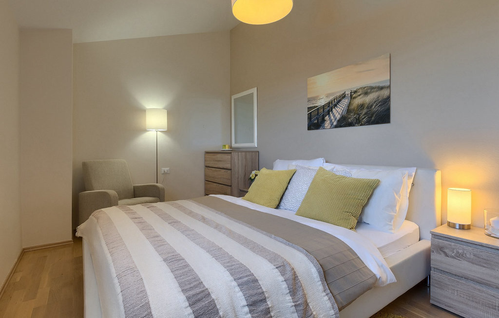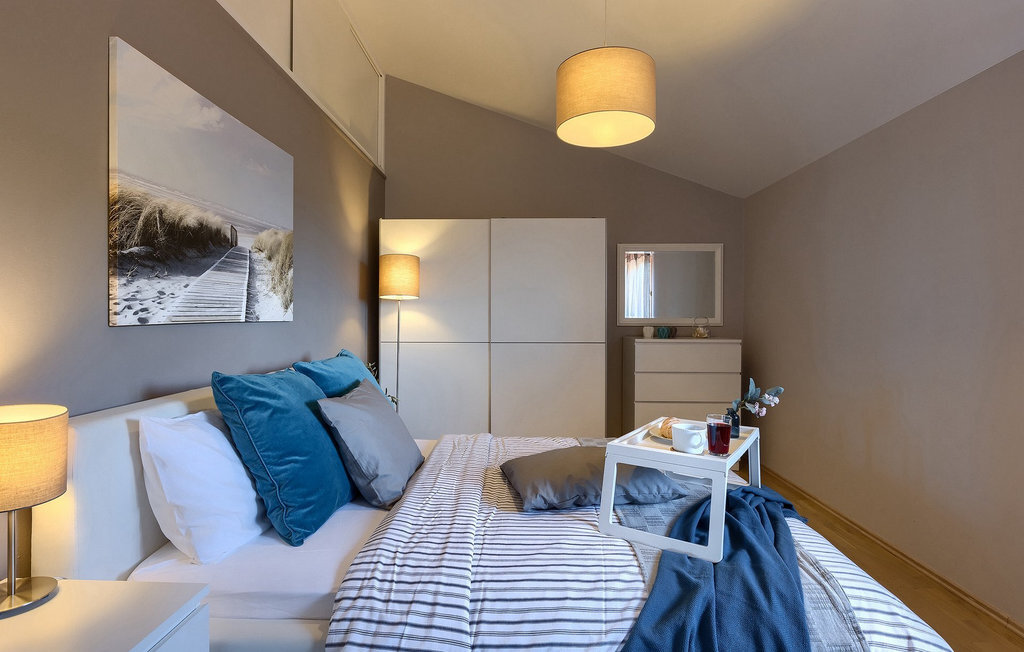 L'intérieur de la villa offre un intérieur moderne, aménagé avec charme, où vous vous sentirez comme chez vous. Des tons doux créent une atmosphère chaleureuse, non seulement dans le salon et la salle à manger, mais aussi dans les chambres à coucher. Au rez-de-chaussée, vous trouverez un salon et une cuisine entièrement équipée, mais aussi une chambre à coucher et une salle de bain. Si vous montez les escaliers jusqu'au premier étage, vous atteindrez trois belles chambres à mouton aménagées de façon moderne, ainsi qu'une élégante salle de bain.