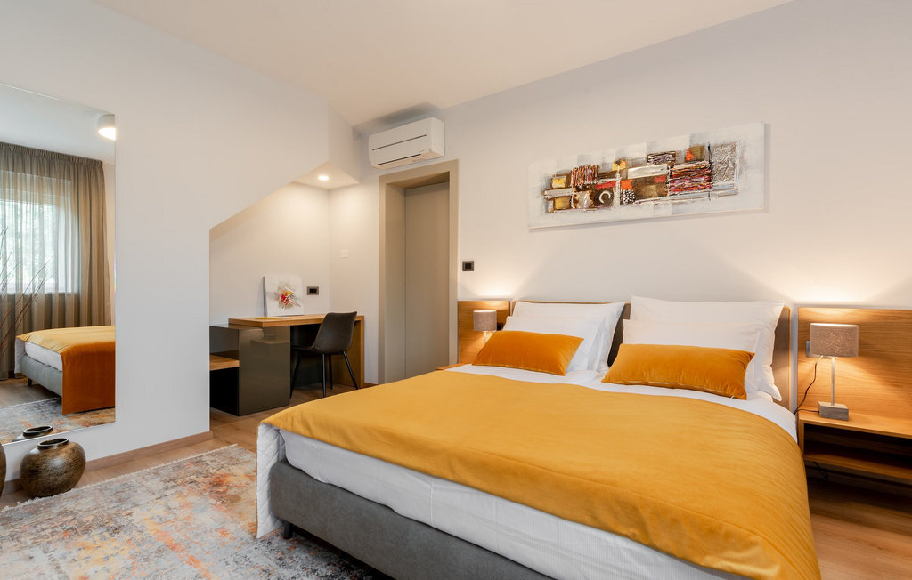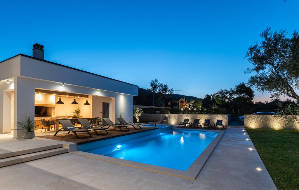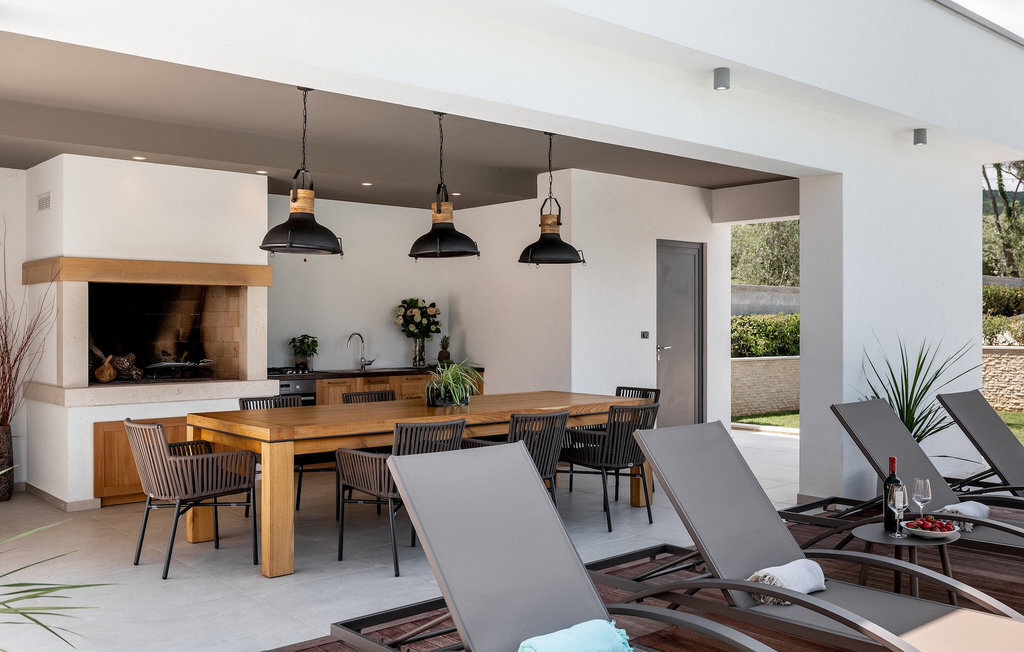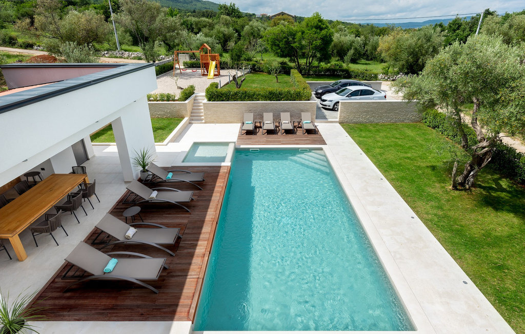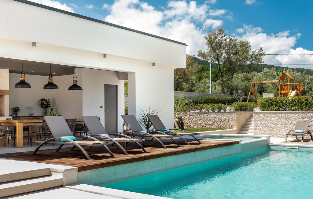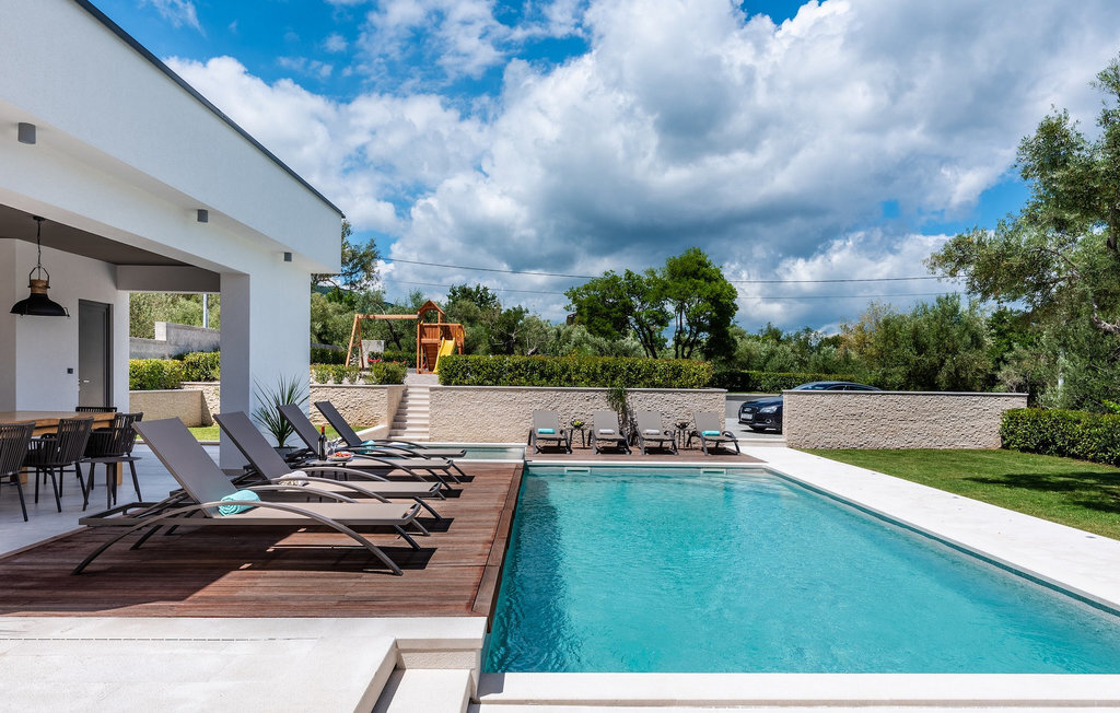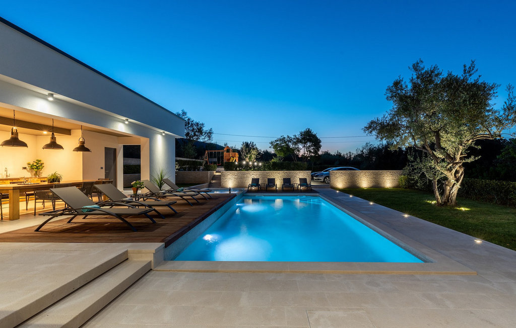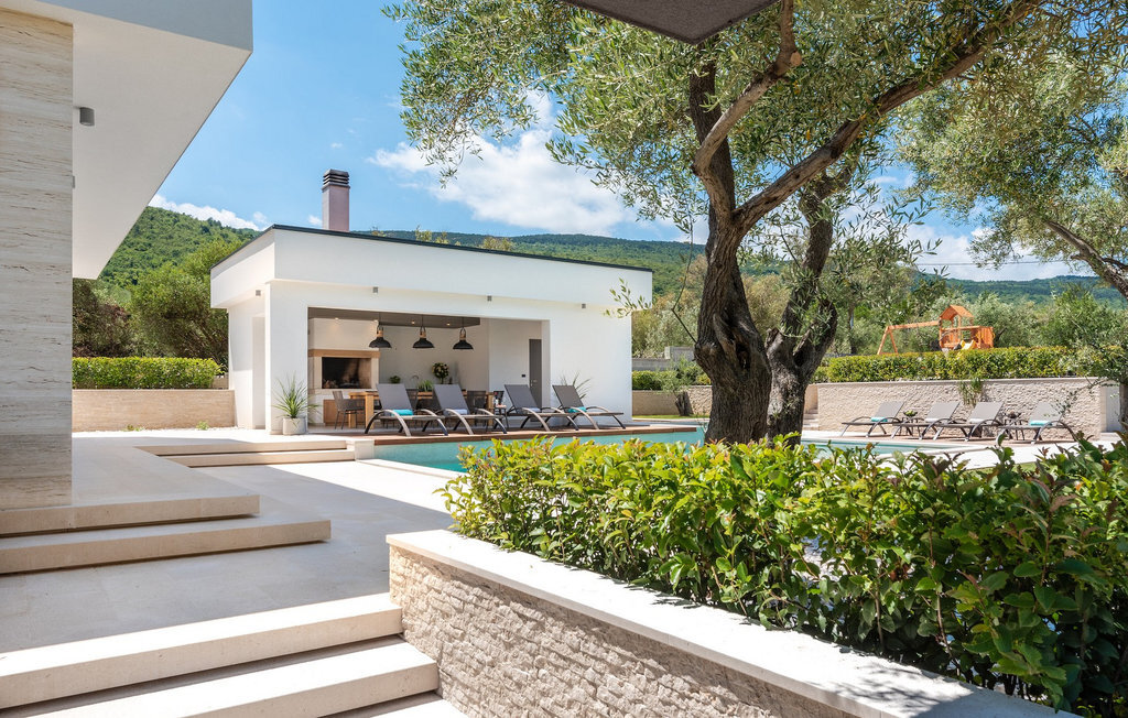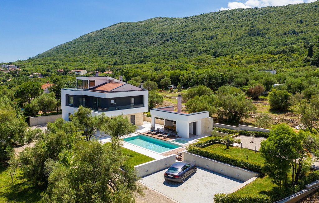 Vous avez des goûts exquis et vous êtes à la recherche d'une villa de luxe ? La Villa Laurea est située près de la mer et dispose d'une grande piscine privée, d'un sauna et d'une vue phénoménale sur la mer. Vous pouvez vous détendre et vous rafraîchir dans la piscine de la maison ou profiter du soleil sur les chaises longues. Il y a une cuisine extérieure avec une salle à manger couverte où vous pouvez préparer et déguster de savoureux repas pour la famille et les amis. À côté de la villa se trouve également un espace salon couvert où vous pourrez savourer votre premier café du matin ou vous détendre à l'ombre pendant la journée, tandis que le vent porte le parfum de la verdure méditerranéenne. Si vous voyagez avec des enfants, vous apprécierez les avantages de la villa. Les enfants peuvent jouer sans souci dans le jardin entièrement clôturé avec aire de jeux. L'intérieur de la villa est moderne, clair et aéré et décoré de couleurs naturelles. Le rez-de-chaussée dispose d'un salon spacieux, d'une salle à manger et d'une cuisine ainsi que d'une chambre à coucher avec salle de bain privée et accès direct à la cour intérieure et à la piscine. Au premier étage se trouvent trois autres chambres à coucher avec salle de bain privée et une salle de jeux pour les enfants. Au grenier, vous trouverez un sauna avec douche et un balcon avec une vue magnifique sur les environs et la mer.La villa Laurea se trouve sur la côte est de la péninsule d'Istrie, dans le petit village de Drenje. La magnifique côte est de l'Istrie, de la baie de Plomin à la Riviera d'Opatija, est l'une des plus belles côtes de l'Adriatique. Elle est particulièrement appréciée pour ses nombreuses baies et ses plages cachées, mais aussi pour les dauphins qui y ont élu domicile. Visitez les îles voisines comme l'île de Losinj, Cres et Krk et profitez des senteurs de la Méditerranée. Pour tous les amateurs de vacances actives, la côte est est idéale. C'est ici que se trouvent les meilleures pistes cyclables qui relient la côte est à l'intérieur de l'Istrie. Au nord de la péninsule se trouve le parc naturel d'Ucka, où vous pourrez faire des randonnées, du vélo et d'autres sports de plein air. L'excellente situation de la Villa Laurea offre de nombreuses possibilités d'excursions à la journée. Visitez l'intérieur de l'Istrie, où vous trouverez de nombreuses villes médiévales perchées sur les collines et des restaurants traditionnels de premier ordre proposant des spécialités locales. Visitez également la côte ouest de la péninsule et ses perles touristiques comme Pula, Rovinj et Porec. N'oubliez pas de visiter le parc national de Brijuni, un groupe d'îles au sud, connu pour ses belles plages et ses sites archéologiques.