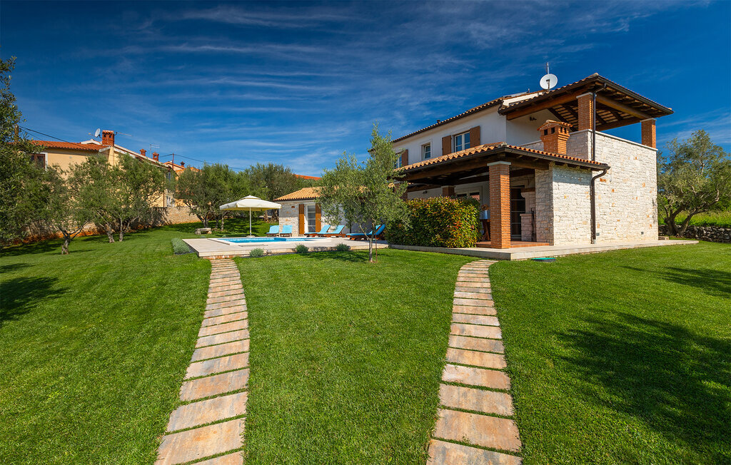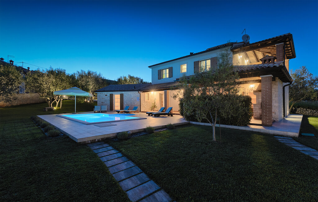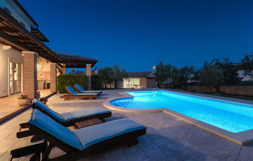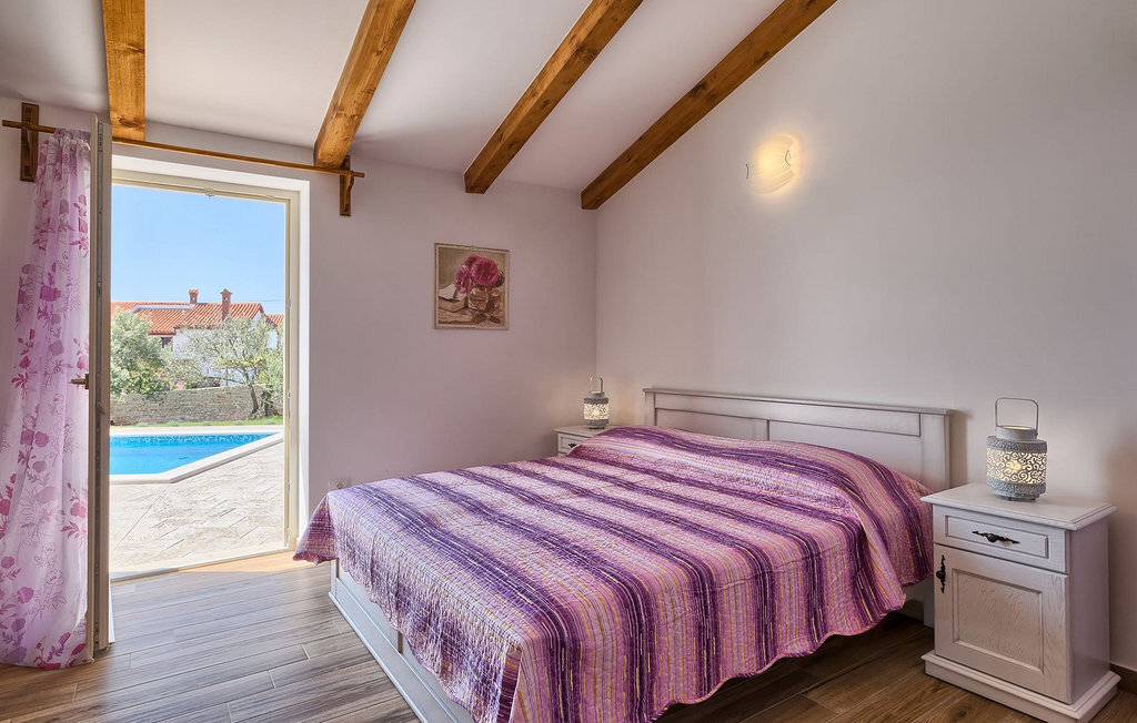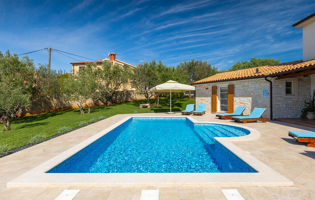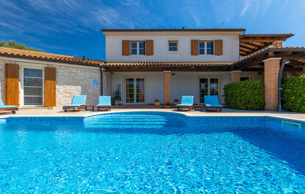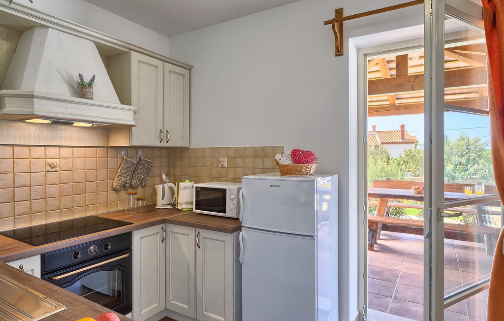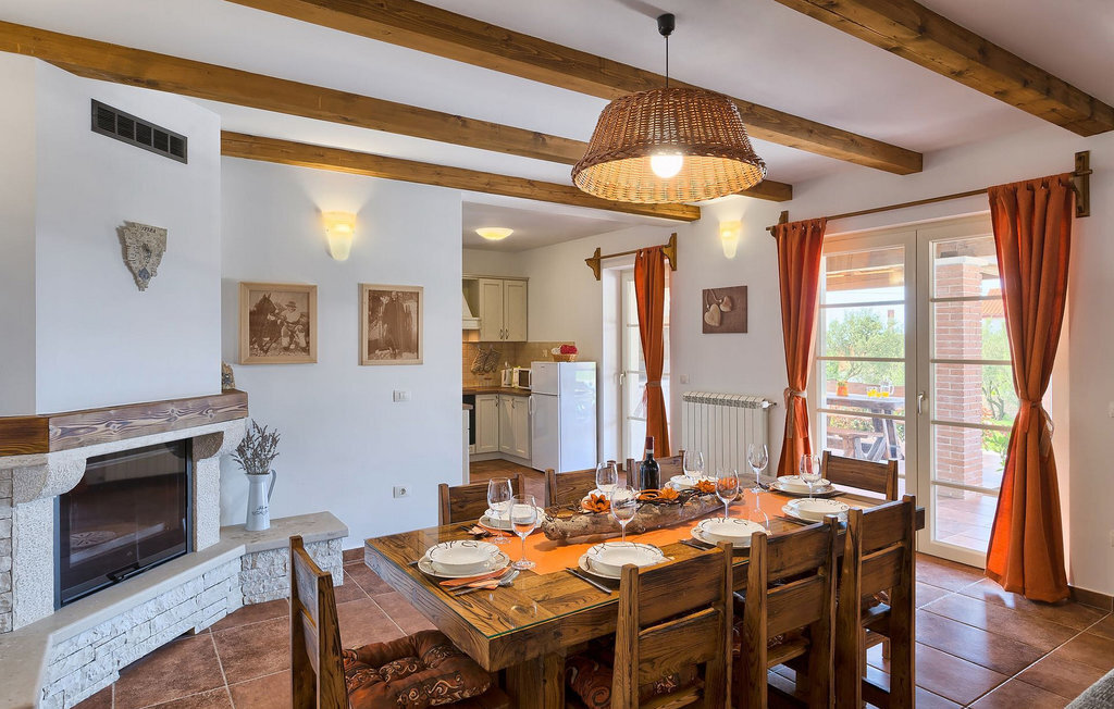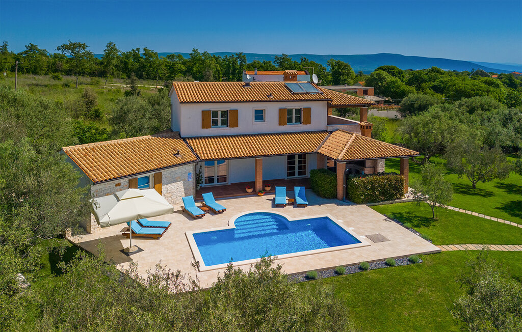 Avec son environnement paisible et rural, mais non loin de la mer d'émeraude et des plages naturelles cachées de l'Adriatique, Villa Loverka est une magnifique villa au milieu d'un vaste terrain qui invite ses hôtes à profiter aussi bien de la maison que de l'extérieur. Lumineuse, spacieuse et confortablement meublée, la villa combine des équipements modernes tels que l'air conditionné, le WiFi, une cuisine entièrement équipée et des salles de bains modernes, tout en conservant le charme rustique d'une maison de campagne avec des plafonds aux poutres traditionnelles, des meubles en bois massif et une cheminée accueillante qui crée une atmosphère chaleureuse et agréable. Deux chambres à coucher sont réparties sur l'étage supérieur, tandis que la troisième s'ouvre directement sur l'espace piscine privé accueillant, un endroit merveilleux pour se reposer et se détendre. La jolie véranda couverte, avec son authentique barbecue intégré et sa grande table à manger, est un refuge attrayant contre la chaleur de l'été, ainsi que l'endroit parfait pour des repas savoureux en plein air. Un autre espace de détente se trouve sur la terrasse supérieure, qui offre sans doute la meilleure vue. Avec la vue magnifique sur le paysage idyllique et la mer émeraude en arrière-plan, qui pourrait résister à l'envie de choisir cette villa comme refuge istrien parfait ?