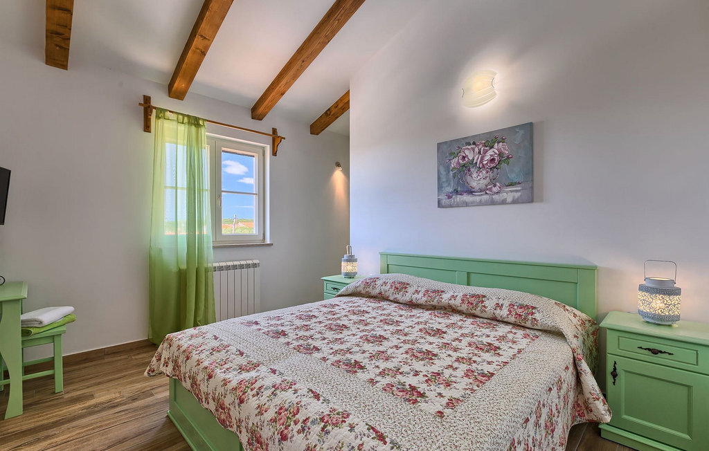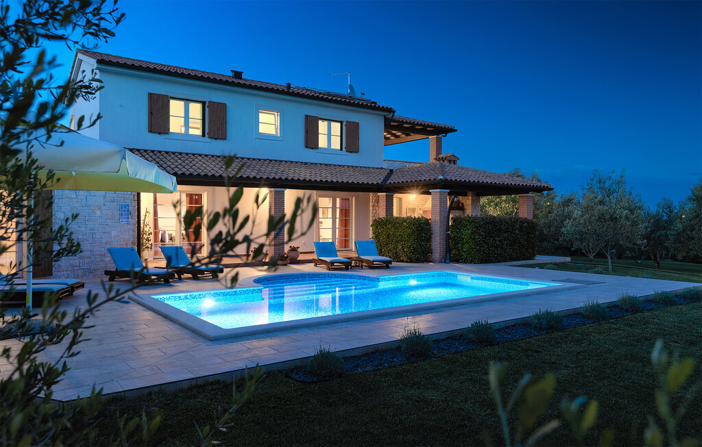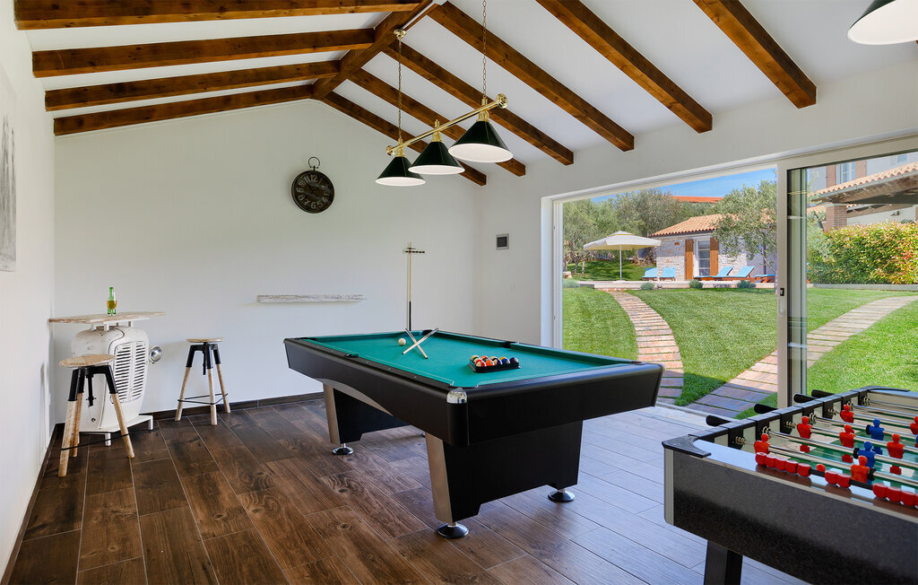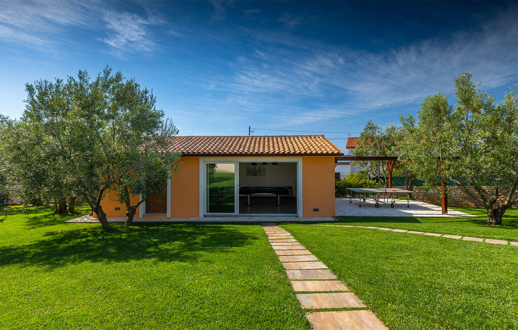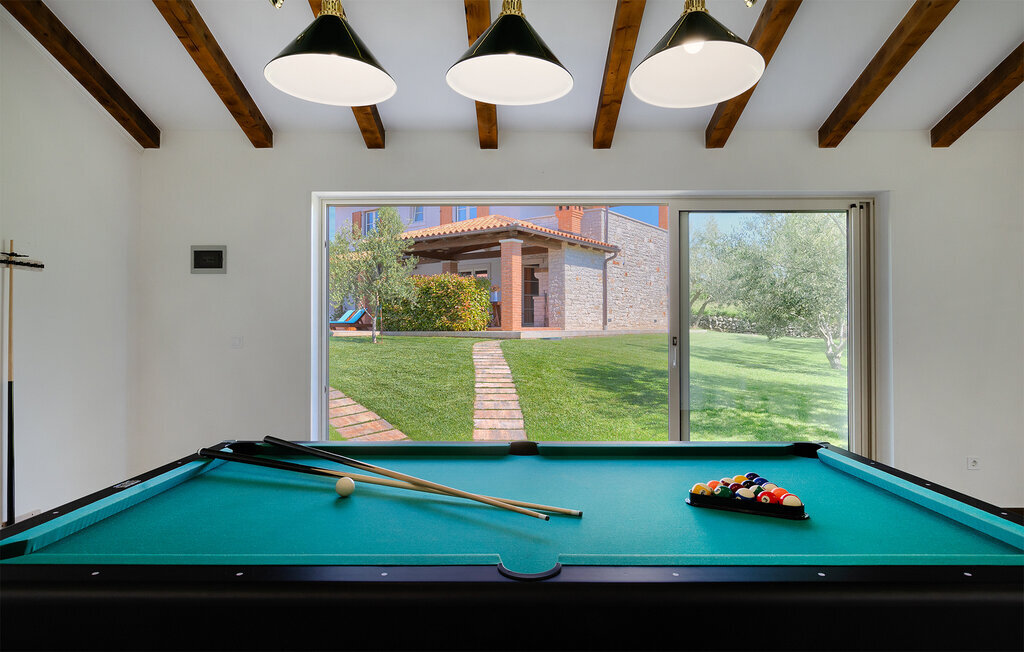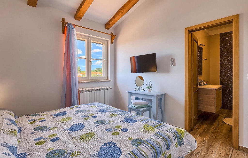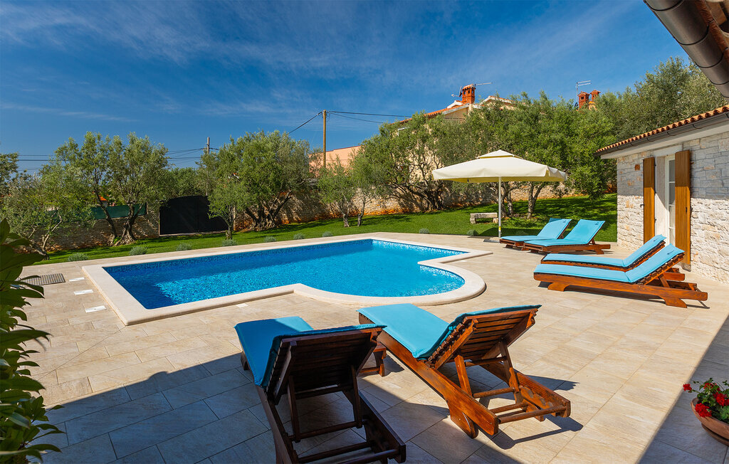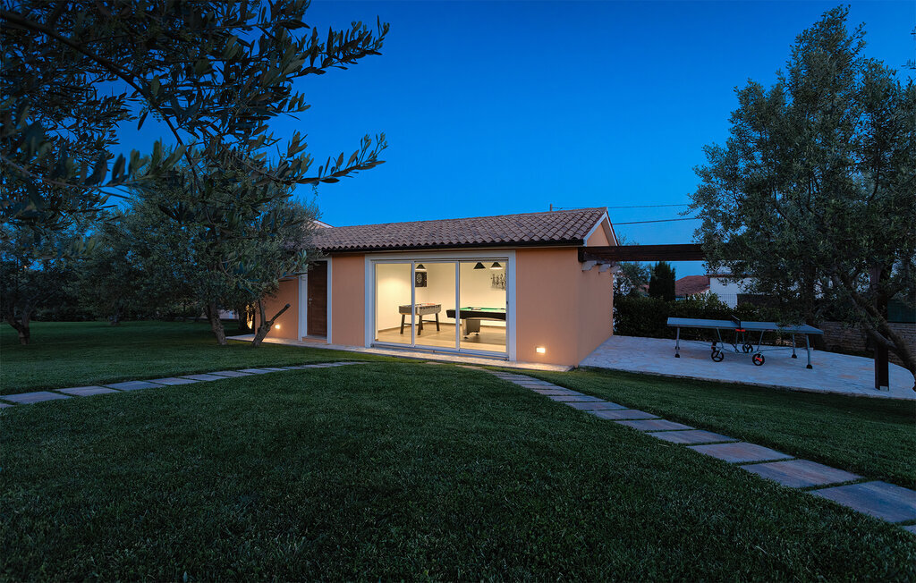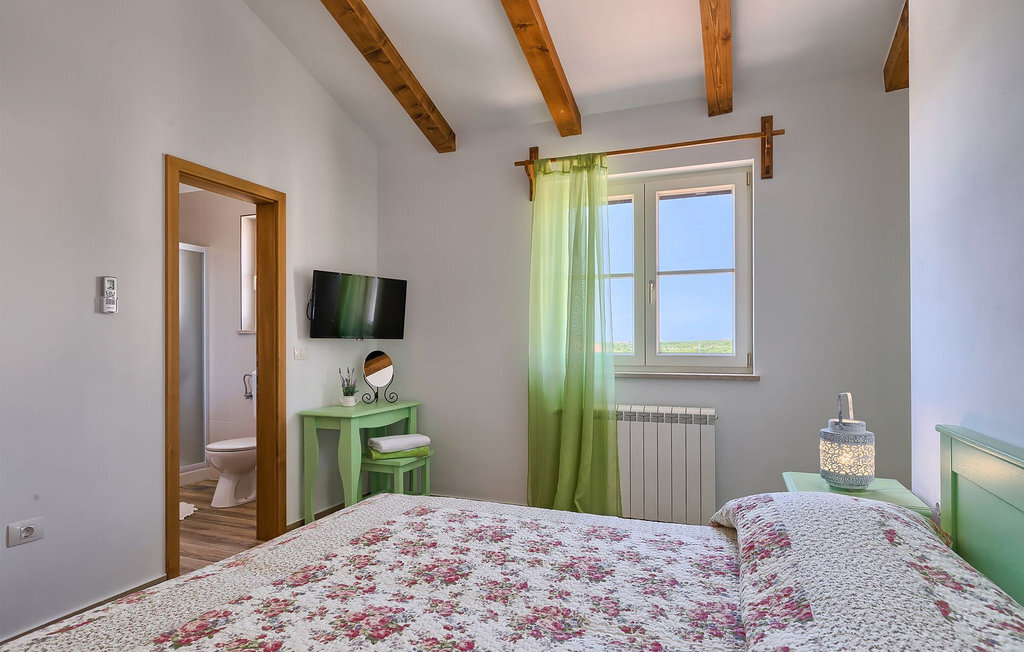 Avec son environnement paisible et rural, mais non loin de la mer d'émeraude et des plages naturelles cachées de l'Adriatique, Villa Loverka est une magnifique villa au milieu d'un vaste terrain qui invite ses hôtes à profiter aussi bien de la maison que de l'extérieur. Lumineuse, spacieuse et confortablement meublée, la villa combine des équipements modernes tels que l'air conditionné, le WiFi, une cuisine entièrement équipée et des salles de bains modernes, tout en conservant le charme rustique d'une maison de campagne avec des plafonds aux poutres traditionnelles, des meubles en bois massif et une cheminée accueillante qui crée une atmosphère chaleureuse et agréable. Deux chambres à coucher sont réparties sur l'étage supérieur, tandis que la troisième s'ouvre directement sur l'espace piscine privé accueillant, un endroit merveilleux pour se reposer et se détendre. La jolie véranda couverte, avec son authentique barbecue intégré et sa grande table à manger, est un refuge attrayant contre la chaleur de l'été, ainsi que l'endroit parfait pour des repas savoureux en plein air. Un autre espace de détente se trouve sur la terrasse supérieure, qui offre sans doute la meilleure vue. Avec la vue magnifique sur le paysage idyllique et la mer émeraude en arrière-plan, qui pourrait résister à l'envie de choisir cette villa comme refuge istrien parfait ?