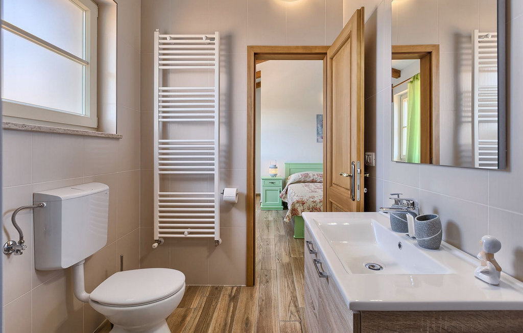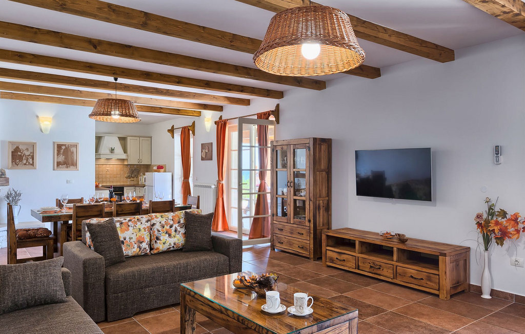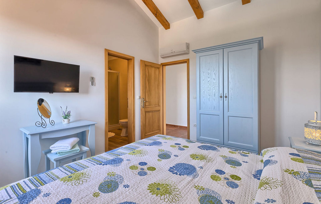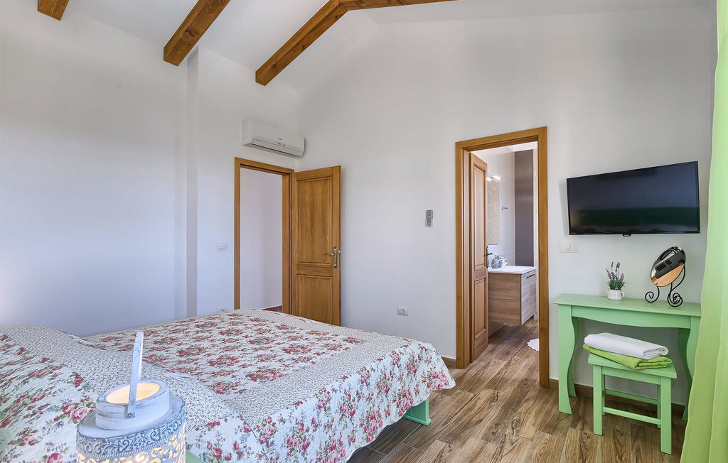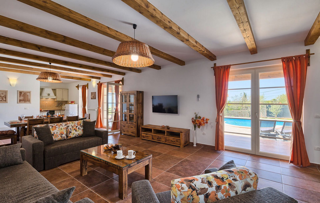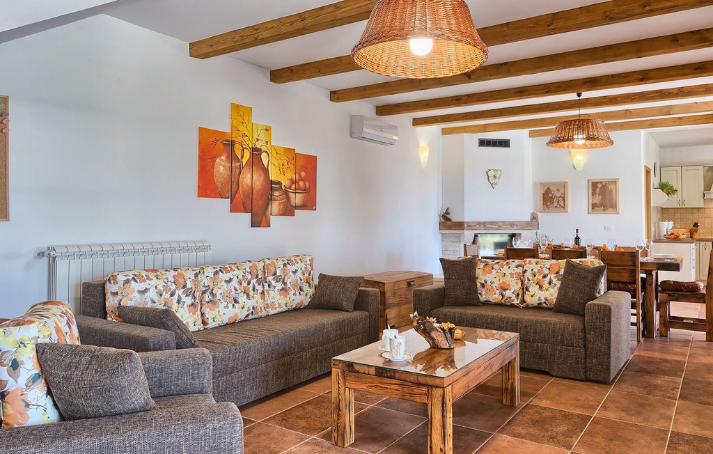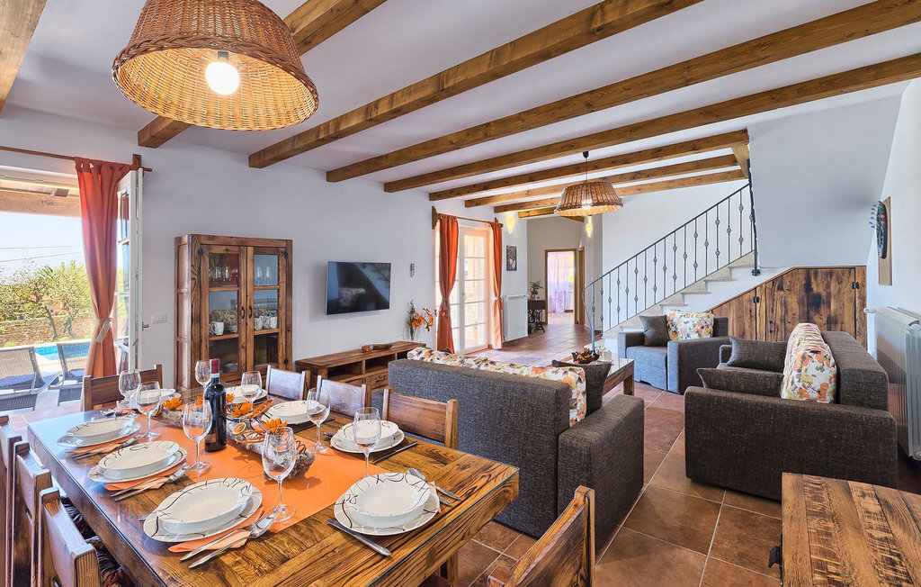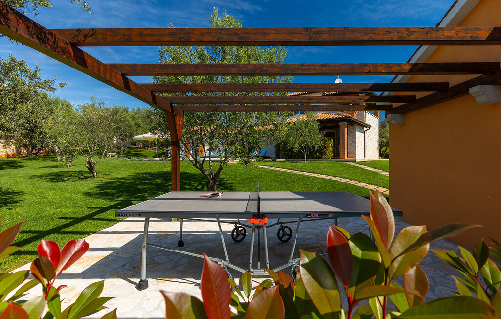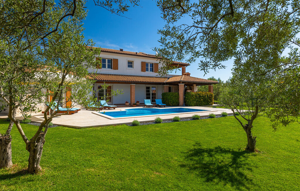 Avec son environnement paisible et rural, mais non loin de la mer d'émeraude et des plages naturelles cachées de l'Adriatique, Villa Loverka est une magnifique villa au milieu d'un vaste terrain qui invite ses hôtes à profiter aussi bien de la maison que de l'extérieur. Lumineuse, spacieuse et confortablement meublée, la villa combine des équipements modernes tels que l'air conditionné, le WiFi, une cuisine entièrement équipée et des salles de bains modernes, tout en conservant le charme rustique d'une maison de campagne avec des plafonds aux poutres traditionnelles, des meubles en bois massif et une cheminée accueillante qui crée une atmosphère chaleureuse et agréable. Deux chambres à coucher sont réparties sur l'étage supérieur, tandis que la troisième s'ouvre directement sur l'espace piscine privé accueillant, un endroit merveilleux pour se reposer et se détendre. La jolie véranda couverte, avec son authentique barbecue intégré et sa grande table à manger, est un refuge attrayant contre la chaleur de l'été, ainsi que l'endroit parfait pour des repas savoureux en plein air. Un autre espace de détente se trouve sur la terrasse supérieure, qui offre sans doute la meilleure vue. Avec la vue magnifique sur le paysage idyllique et la mer émeraude en arrière-plan, qui pourrait résister à l'envie de choisir cette villa comme refuge istrien parfait ?