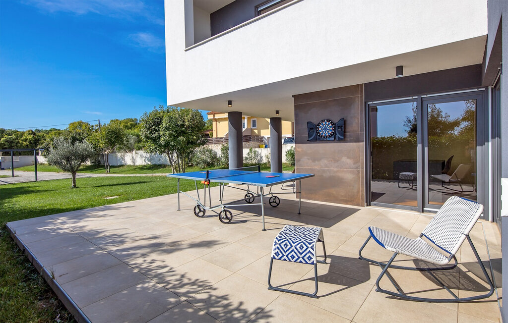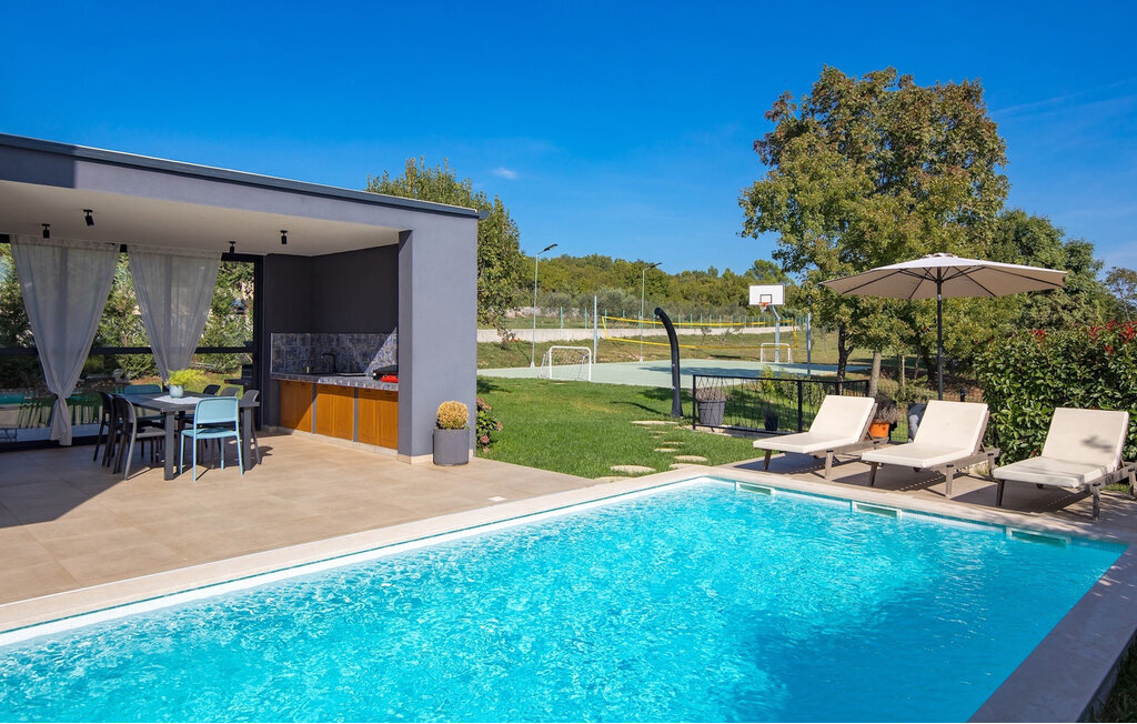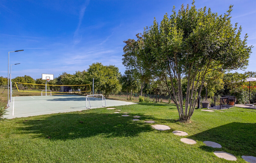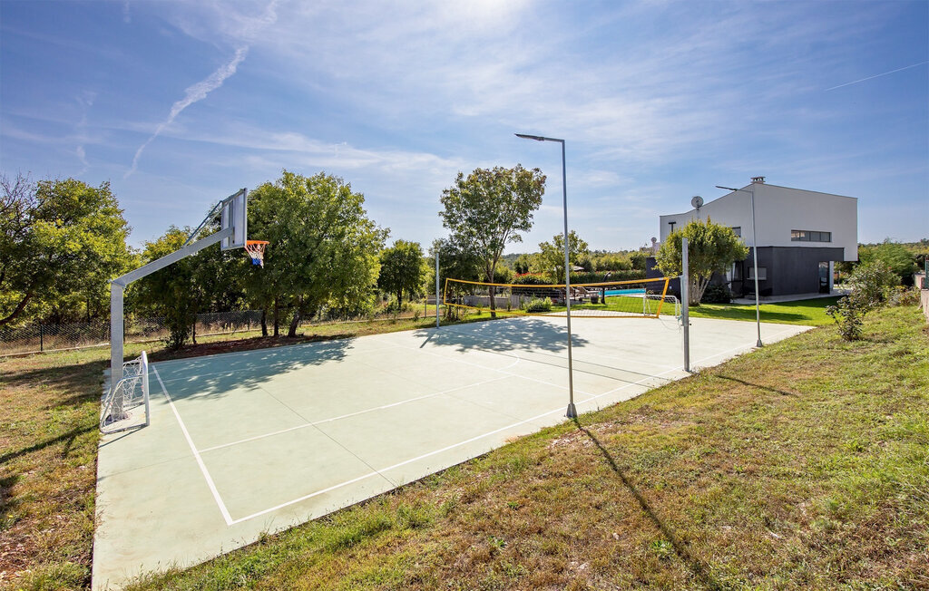 Lors des chaudes journées d'été, vous apprécierez certainement le plus l'espace extérieur avec piscine privée. Rafraîchissez-vous dans la piscine et détendez-vous ensuite dans l'une des chaises longues, tout simplement. Pour les fans de barbecue, un barbecue à gaz est à disposition. Montrez vos talents de cuisinier et préparez un merveilleux repas que vous pourrez déguster avec vos proches. L'un des meilleurs atouts de cette villa est un grand terrain multisports à l'extérieur.