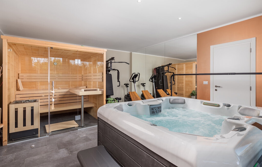 Vous serez certainement ravis de savoir qu'au rez-de-chaussée, vous disposez d'une petite salle de fitness, d'un jacuzzi et d'un sauna avec douche - parfait pour ceux qui cherchent des activités supplémentaires sur le terrain de la villa.