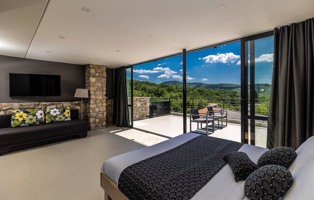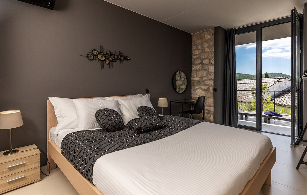 Au premier étage de la villa se trouvent deux chambres à coucher spacieuses. Les deux chambres sont climatisées, disposent d'un lit double et d'une télévision et ont chacune accès à une terrasse séparée où vous pourrez vous détendre avec un bon livre. Il y a également une salle de bain au premier étage. Au deuxième étage de la villa se trouve une chambre principale spacieuse avec une salle de bain privée, un lit double et une télévision. La chambre dispose également d'une terrasse privée avec une vue magnifique sur les environs. La chambre dispose également d'un canapé qui peut accueillir deux personnes supplémentaires si nécessaire. Au rez-de-chaussée de la villa, vous trouverez un salon avec TV et cheminée, qui communique avec la salle à manger et une cuisine spacieuse entièrement équipée. Toute la zone est climatisée. Depuis le salon, vous pouvez vous rendre dans le jardin où vous trouverez une piscine et des chaises longues où vous pourrez vous détendre et profiter du chaud soleil en sirotant une boisson rafraîchissante. À côté de la maison se trouve une terrasse avec une table à manger où vous pourrez déguster en famille ou entre amis les plats que vous aurez préparés sur le barbecue qui est également à votre disposition. Pour les hôtes qui recherchent des vacances actives, des vélos sont disponibles sur demande pour explorer les environs. La propriété est entièrement clôturée et dispose d'un parking privé pour 4 voitures. Réservez votre hébergement à la Villa Ariana et passez des vacances reposantes en famille ou entre amis.La Villa Ariana se trouve dans le village de Gri?ane, près de Crikvenica. Que vous soyez intéressé par des vacances actives ou plus par la détente, la baie de Kvarner avec ses nombreux petits villages est la destination qu'il vous faut. Détendez-vous sur les plages de sable et de galets de la mer Adriatique ou dans la beauté naturelle des montagnes de l'arrière-pays. Crikvenica, située à quelques kilomètres de la villa, a été déclarée station climatique il y a plus de 100 ans en raison de son climat doux et de sa forêt de pins. Si vous souhaitez vivre l'effervescence de la ville, Rijeka, la plus grande ville de la région de Kvarner, se trouve à seulement 30 km de la villa. Vous pourrez y visiter de nombreux monuments culturels et historiques et découvrir l'histoire, la culture et les traditions locales intéressantes. La plus grande et la plus célèbre manifestation dans cette région est le carnaval de Rijeka, aujourd'hui l'un des plus grands défilés de carnaval en Europe et dans le monde. En 2020, Rijeka a été capitale européenne de la culture. Pour une excursion d'une journée, nous recommandons l'île de Krk, qui est reliée au continent par un pont et qui cache de nombreuses curiosités culturelles et historiques ainsi que des plages magnifiques.