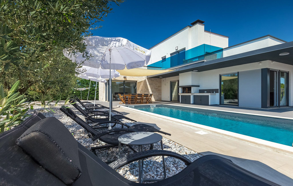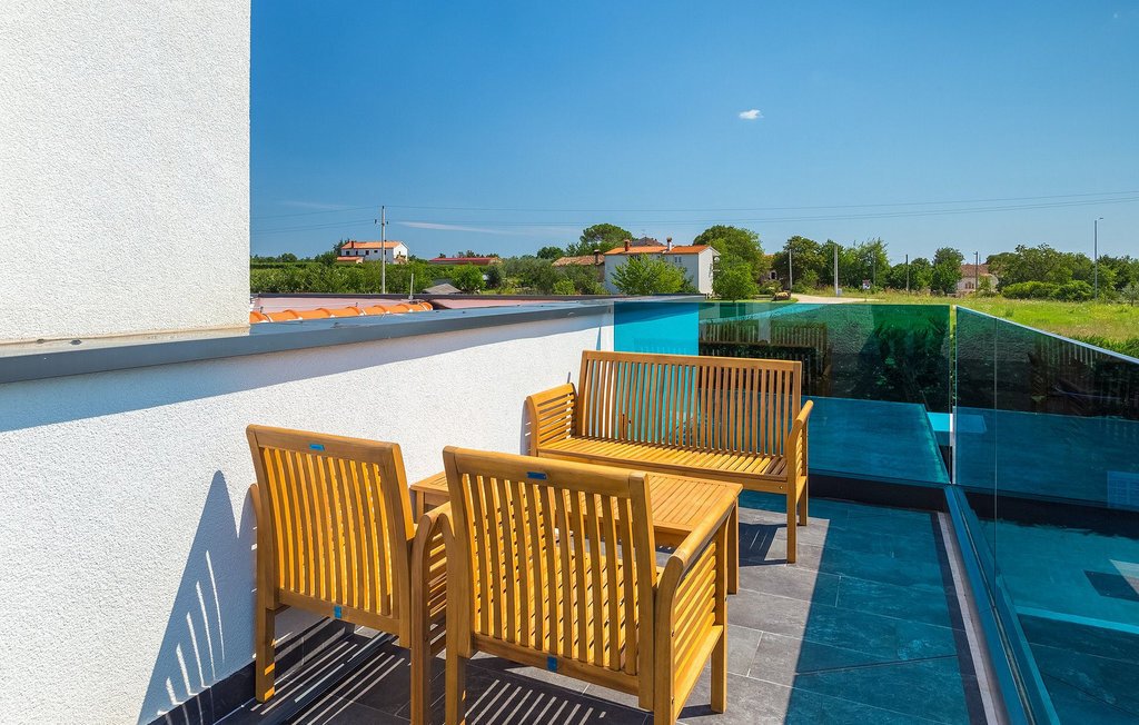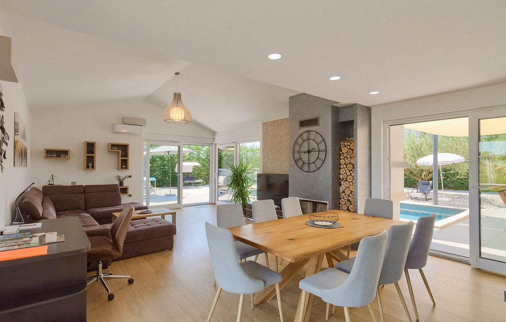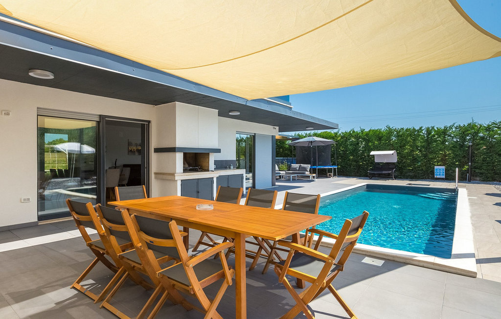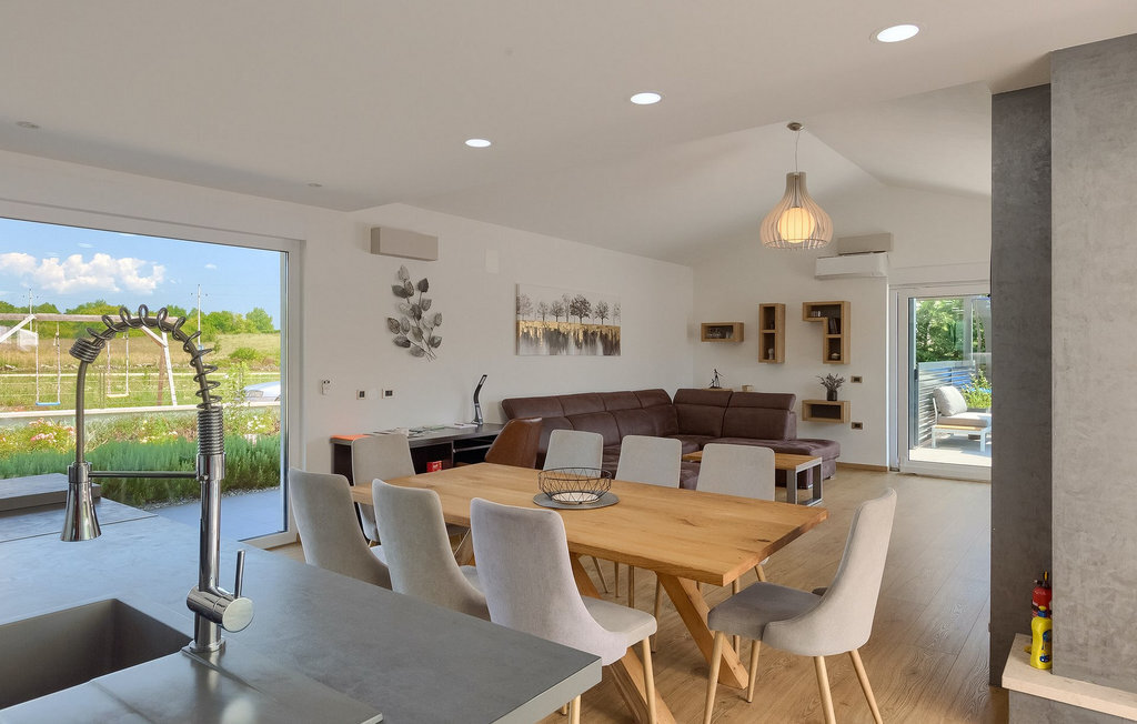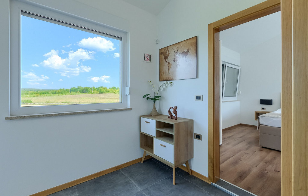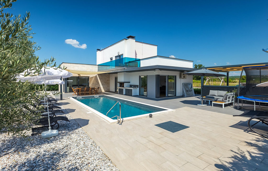 Si vous prévoyez de passer vos vacances en famille près de Porec, la Villa Radosi est le bon choix pour vous. Sur la terrasse, vous avez la possibilité de préparer votre barbecue préféré. La vue sur la terrasse, où un barbecue moderne et une grande table à manger sont à votre disposition, montre ce qui vous attend dans la villa. Lorsque vous passerez de la terrasse à la salle de séjour spacieuse, cette villa istrienne vous séduira par son intérieur moderne. De beaux meubles aux couleurs agréables et aux lignes douces confèrent une atmosphère domestique, tandis que des parois vitrées avec vue sur l'environnement font en sorte que vous n'oubliez pas que vous êtes encore en Istrie. Depuis le salon, vous entrez dans la salle à manger et dans l'élégante cuisine aux couleurs profondes. Quelques pas plus loin, un bel escalier en bois vous mène à l'étage supérieur où se trouvent 4 chambres et 3 salles de bains qui vous séduiront par leur aspect moderne. Cette villa se trouve à proximité de la petite ville istrienne de Visnjan. En vous promenant à Visnjan, vous découvrirez la longue histoire de cette ville à travers son riche patrimoine culturel, qui vaut définitivement le détour. Une partie inévitable de la culture istrienne est sans aucun doute les fêtes locales, les foires et les concerts de musique que vous rencontrerez pendant les mois d'été. Pour vivre pleinement la culture istrienne, nous vous recommandons l'offre gastronomique locale des tavernes locales, qui proposent des spécialités telles que les truffes, le jambon, les asperges et les fruits de mer. Si vous souhaitez visiter des villes plus importantes, Porec et Novigrad se trouvent à 20 minutes de route de Visnjan. À Porec et Novigrad, vous trouverez une offre riche en événements culturels, des restaurants proposant une cuisine traditionnelle istrienne et de nombreux monuments racontant l'histoire de cette région.
