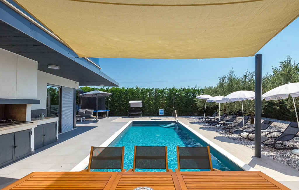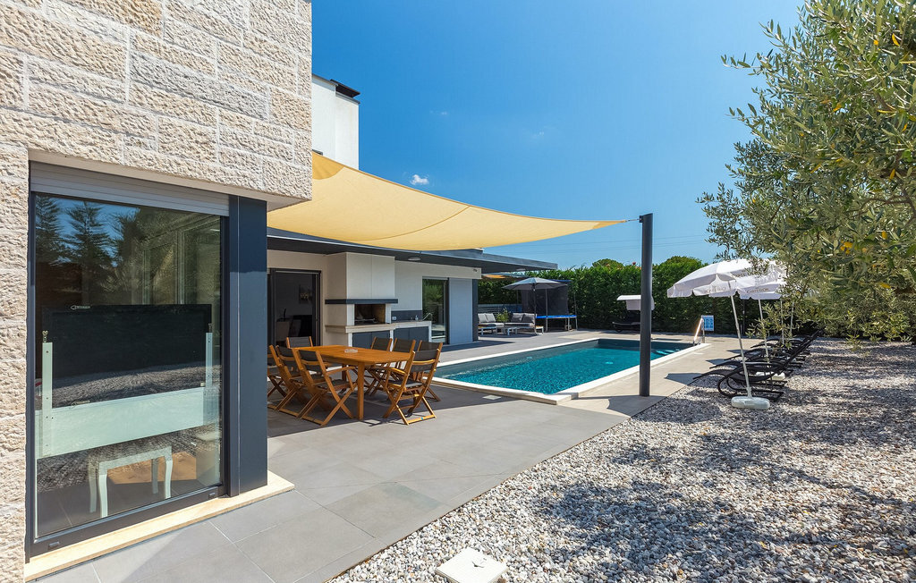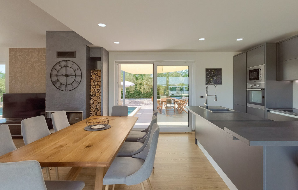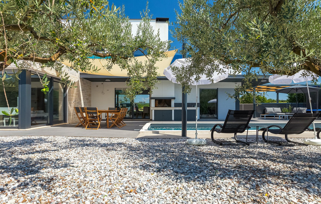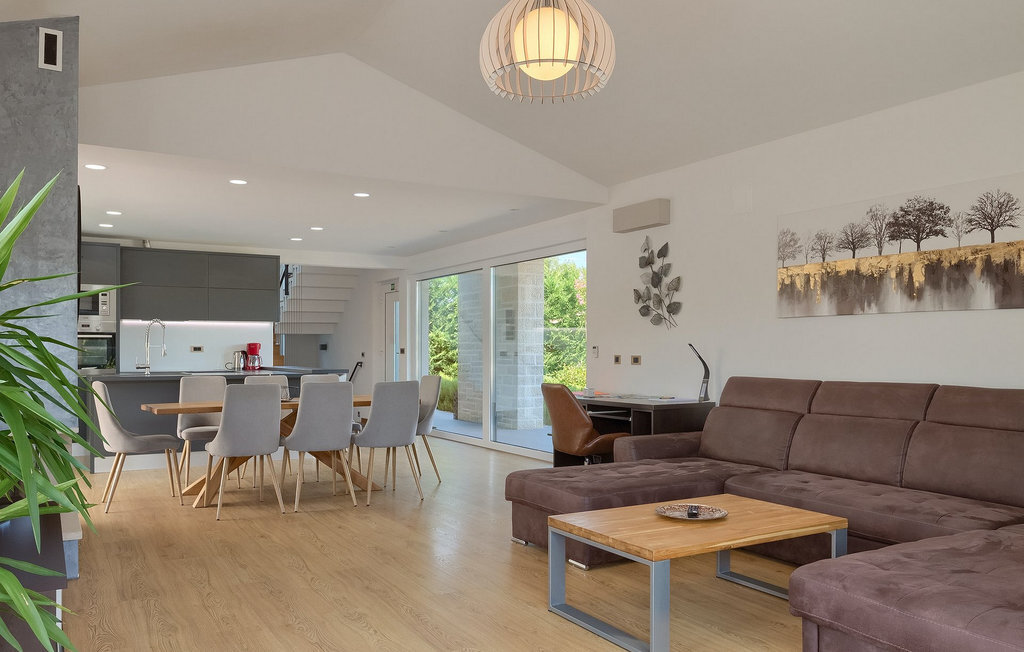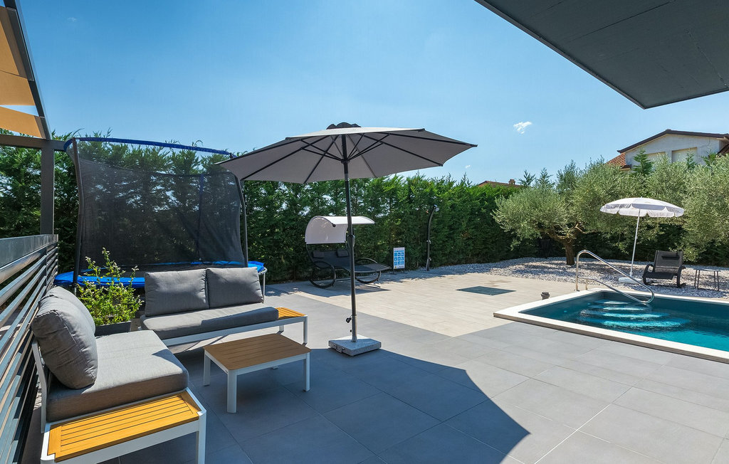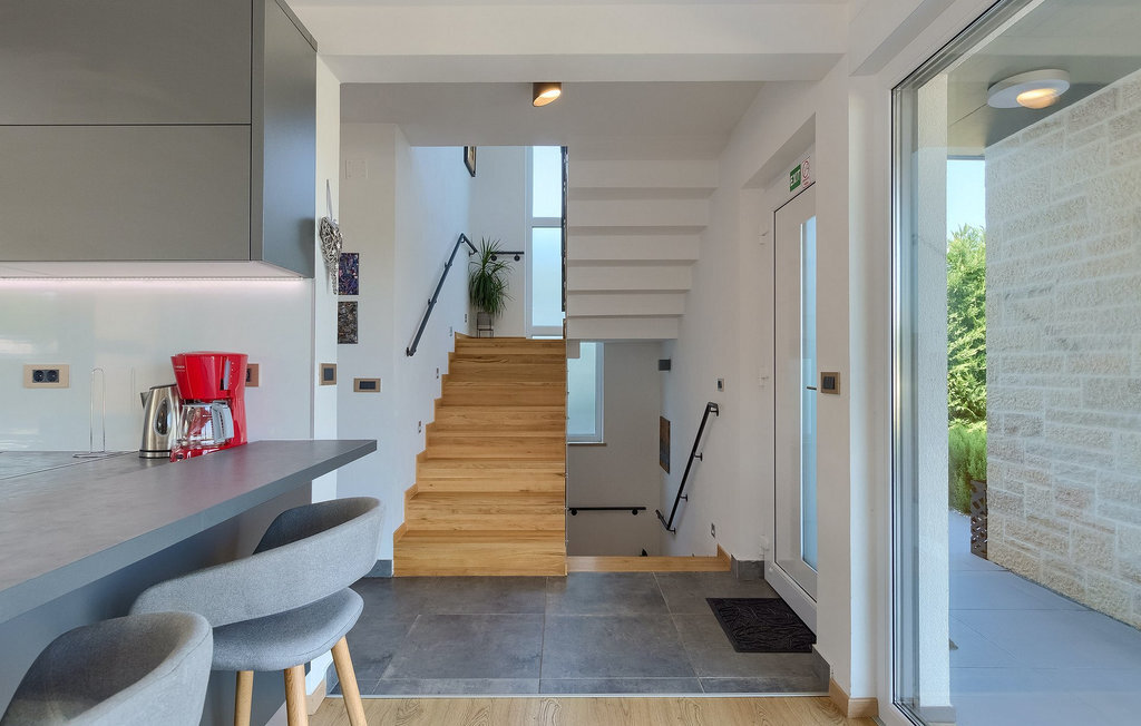 Si vous prévoyez de passer vos vacances en famille près de Porec, la Villa Radosi est le bon choix pour vous. Sur la terrasse, vous avez la possibilité de préparer votre barbecue préféré. La vue sur la terrasse, où un barbecue moderne et une grande table à manger sont à votre disposition, montre ce qui vous attend dans la villa. Lorsque vous passerez de la terrasse à la salle de séjour spacieuse, cette villa istrienne vous séduira par son intérieur moderne. De beaux meubles aux couleurs agréables et aux lignes douces confèrent une atmosphère domestique, tandis que des parois vitrées avec vue sur l'environnement font en sorte que vous n'oubliez pas que vous êtes encore en Istrie. Depuis le salon, vous entrez dans la salle à manger et dans l'élégante cuisine aux couleurs profondes. Quelques pas plus loin, un bel escalier en bois vous mène à l'étage supérieur où se trouvent 4 chambres et 3 salles de bains qui vous séduiront par leur aspect moderne. Cette villa se trouve à proximité de la petite ville istrienne de Visnjan. En vous promenant à Visnjan, vous découvrirez la longue histoire de cette ville à travers son riche patrimoine culturel, qui vaut définitivement le détour. Une partie inévitable de la culture istrienne est sans aucun doute les fêtes locales, les foires et les concerts de musique que vous rencontrerez pendant les mois d'été. Pour vivre pleinement la culture istrienne, nous vous recommandons l'offre gastronomique locale des tavernes locales, qui proposent des spécialités telles que les truffes, le jambon, les asperges et les fruits de mer. Si vous souhaitez visiter des villes plus importantes, Porec et Novigrad se trouvent à 20 minutes de route de Visnjan. À Porec et Novigrad, vous trouverez une offre riche en événements culturels, des restaurants proposant une cuisine traditionnelle istrienne et de nombreux monuments racontant l'histoire de cette région.
