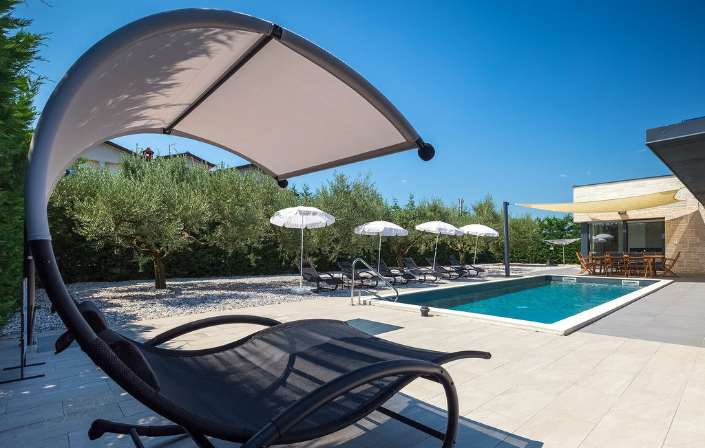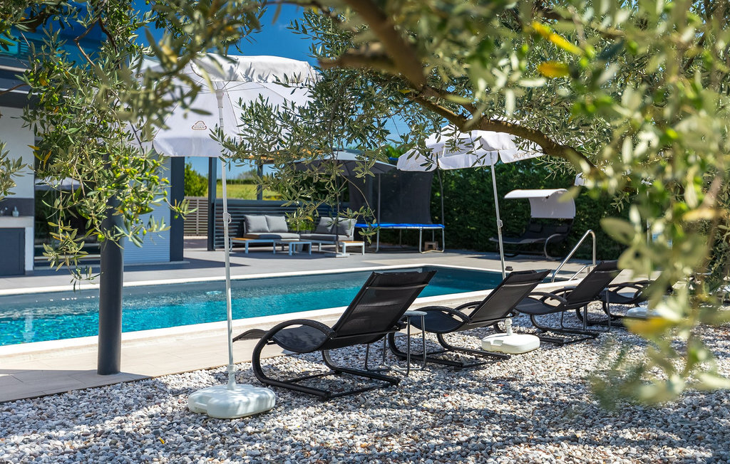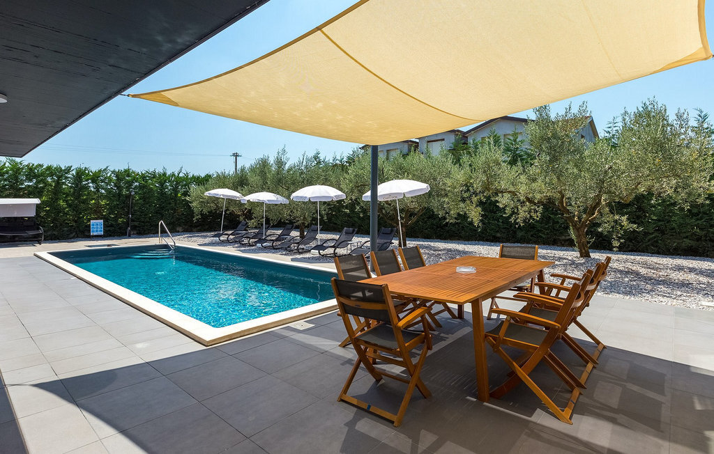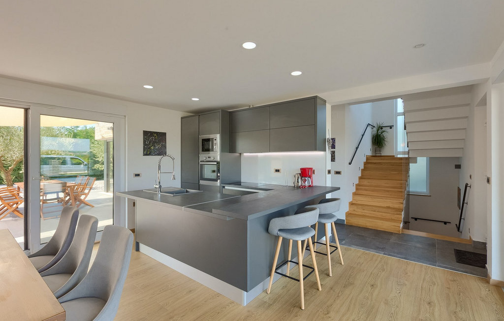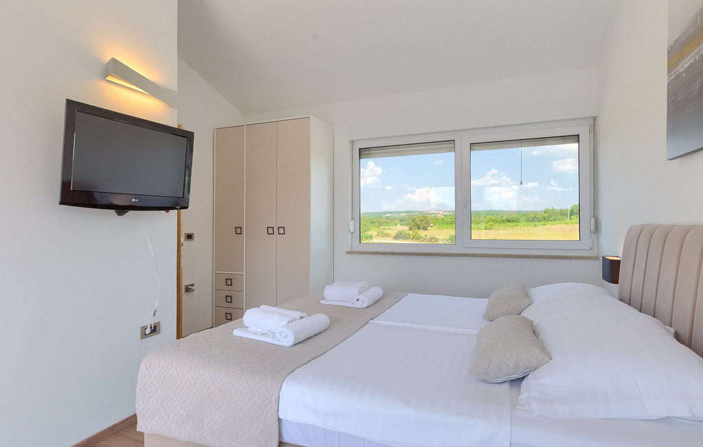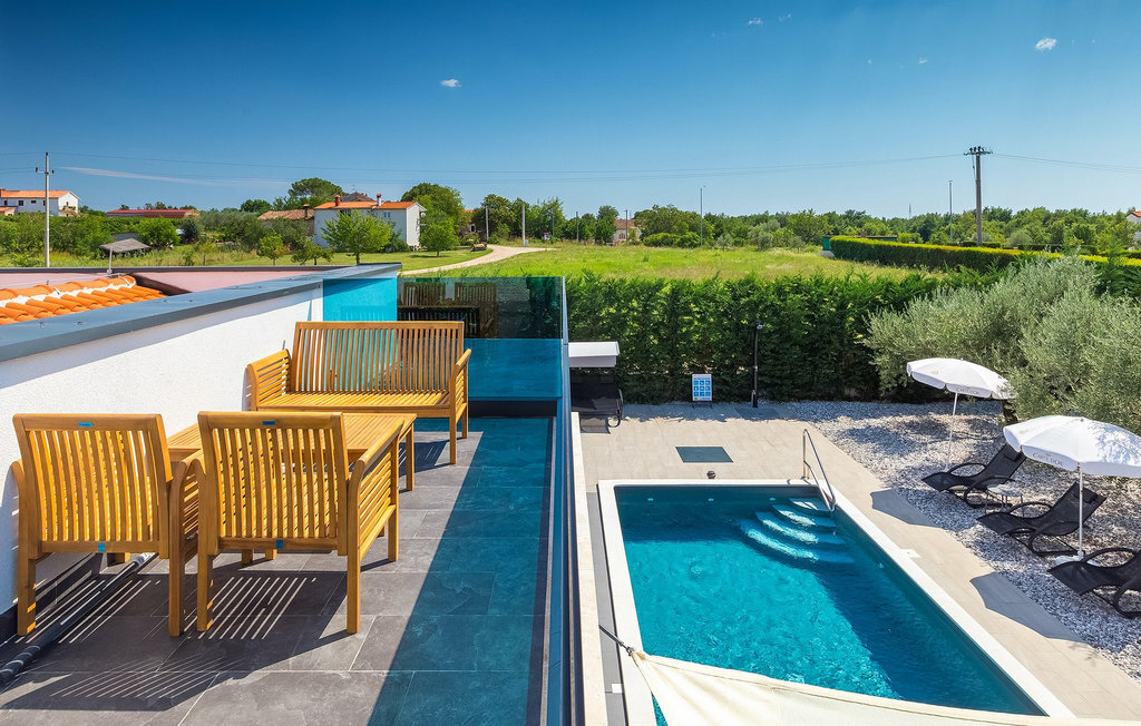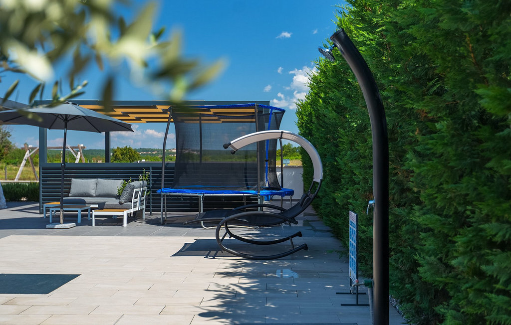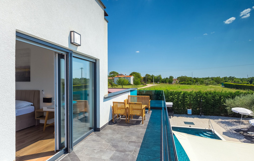 Si vous prévoyez de passer vos vacances en famille près de Porec, la Villa Radosi est le bon choix pour vous. Sur la terrasse, vous avez la possibilité de préparer votre barbecue préféré. La vue sur la terrasse, où un barbecue moderne et une grande table à manger sont à votre disposition, montre ce qui vous attend dans la villa. Lorsque vous passerez de la terrasse à la salle de séjour spacieuse, cette villa istrienne vous séduira par son intérieur moderne. De beaux meubles aux couleurs agréables et aux lignes douces confèrent une atmosphère domestique, tandis que des parois vitrées avec vue sur l'environnement font en sorte que vous n'oubliez pas que vous êtes encore en Istrie. Depuis le salon, vous entrez dans la salle à manger et dans l'élégante cuisine aux couleurs profondes. Quelques pas plus loin, un bel escalier en bois vous mène à l'étage supérieur où se trouvent 4 chambres et 3 salles de bains qui vous séduiront par leur aspect moderne. Cette villa se trouve à proximité de la petite ville istrienne de Visnjan. En vous promenant à Visnjan, vous découvrirez la longue histoire de cette ville à travers son riche patrimoine culturel, qui vaut définitivement le détour. Une partie inévitable de la culture istrienne est sans aucun doute les fêtes locales, les foires et les concerts de musique que vous rencontrerez pendant les mois d'été. Pour vivre pleinement la culture istrienne, nous vous recommandons l'offre gastronomique locale des tavernes locales, qui proposent des spécialités telles que les truffes, le jambon, les asperges et les fruits de mer. Si vous souhaitez visiter des villes plus importantes, Porec et Novigrad se trouvent à 20 minutes de route de Visnjan. À Porec et Novigrad, vous trouverez une offre riche en événements culturels, des restaurants proposant une cuisine traditionnelle istrienne et de nombreux monuments racontant l'histoire de cette région.