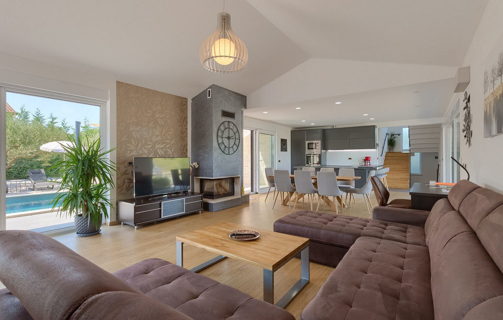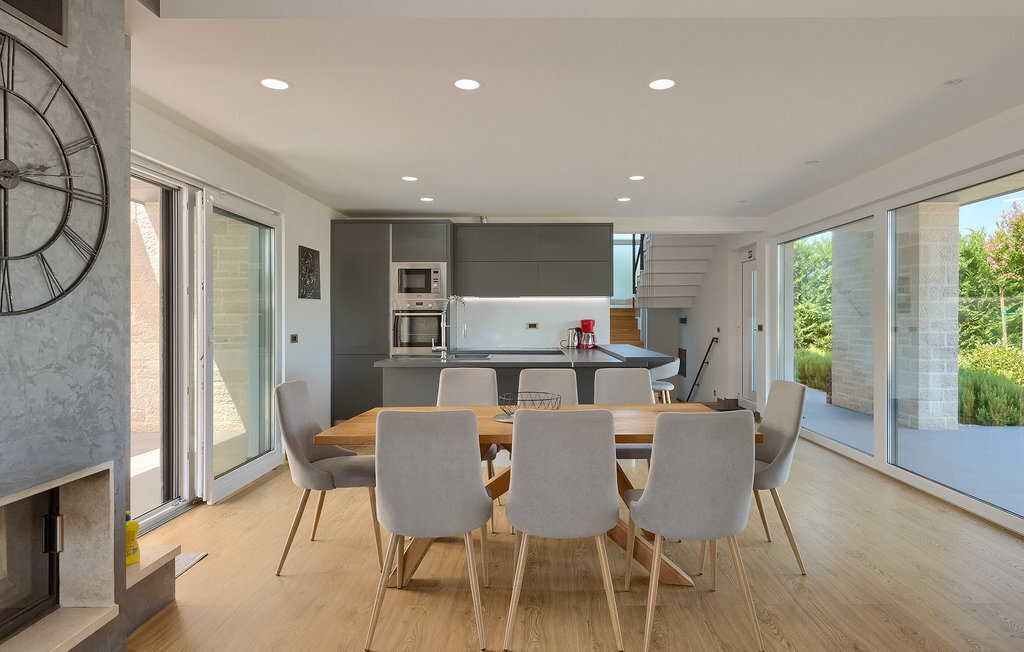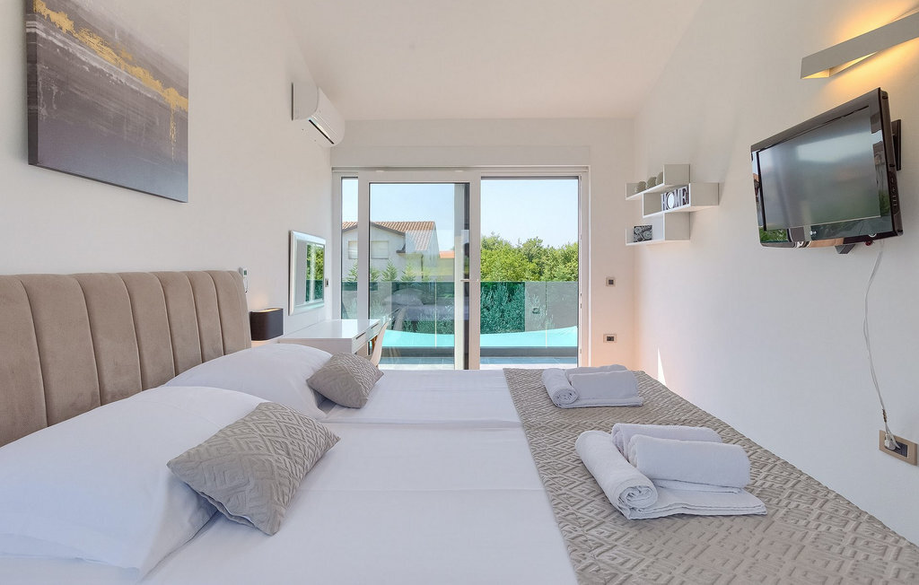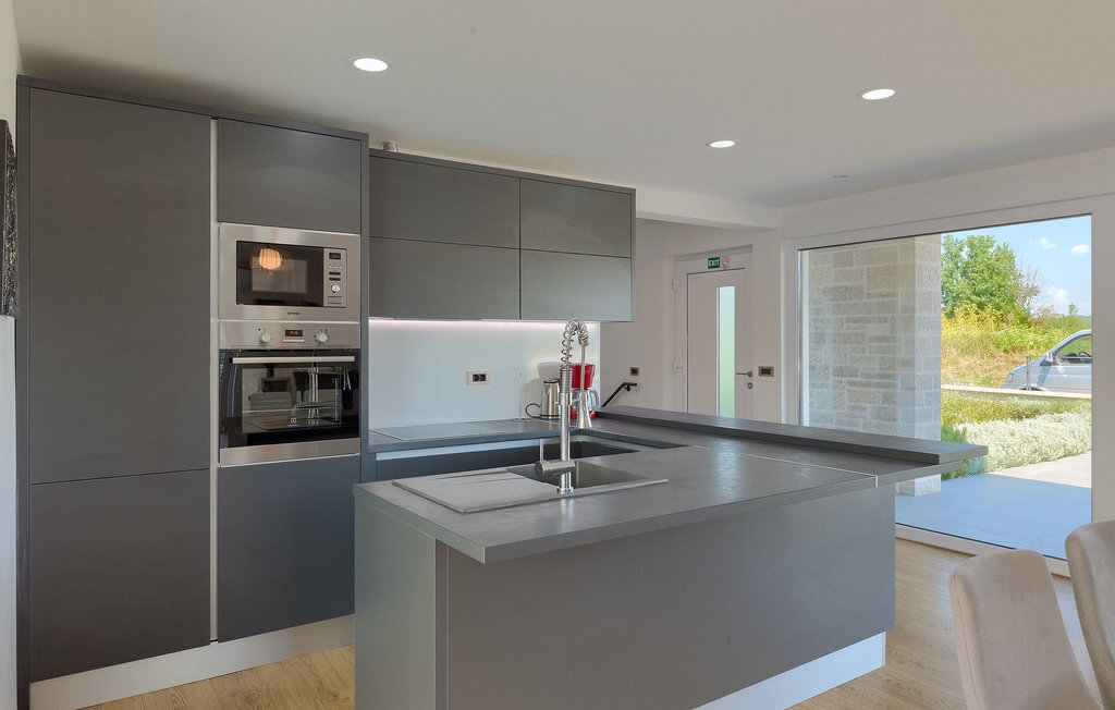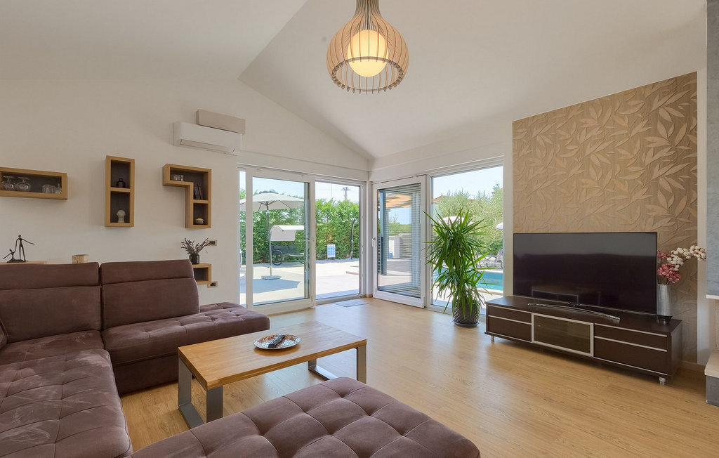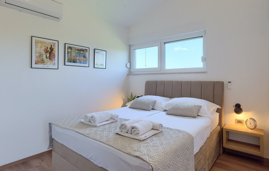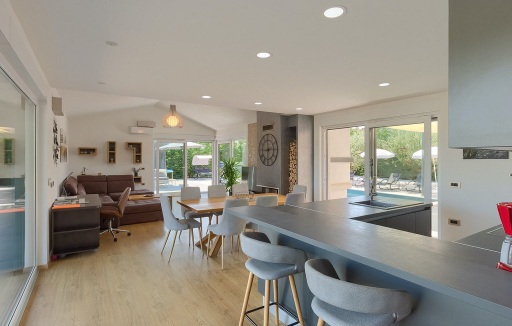 Si vous prévoyez de passer vos vacances en famille près de Porec, la Villa Radosi est le bon choix pour vous. Sur la terrasse, vous avez la possibilité de préparer votre barbecue préféré. La vue sur la terrasse, où un barbecue moderne et une grande table à manger sont à votre disposition, montre ce qui vous attend dans la villa. Lorsque vous passerez de la terrasse à la salle de séjour spacieuse, cette villa istrienne vous séduira par son intérieur moderne. De beaux meubles aux couleurs agréables et aux lignes douces confèrent une atmosphère domestique, tandis que des parois vitrées avec vue sur l'environnement font en sorte que vous n'oubliez pas que vous êtes encore en Istrie. Depuis le salon, vous entrez dans la salle à manger et dans l'élégante cuisine aux couleurs profondes. Quelques pas plus loin, un bel escalier en bois vous mène à l'étage supérieur où se trouvent 4 chambres et 3 salles de bains qui vous séduiront par leur aspect moderne. Cette villa se trouve à proximité de la petite ville istrienne de Visnjan. En vous promenant à Visnjan, vous découvrirez la longue histoire de cette ville à travers son riche patrimoine culturel, qui vaut définitivement le détour. Une partie inévitable de la culture istrienne est sans aucun doute les fêtes locales, les foires et les concerts de musique que vous rencontrerez pendant les mois d'été. Pour vivre pleinement la culture istrienne, nous vous recommandons l'offre gastronomique locale des tavernes locales, qui proposent des spécialités telles que les truffes, le jambon, les asperges et les fruits de mer. Si vous souhaitez visiter des villes plus importantes, Porec et Novigrad se trouvent à 20 minutes de route de Visnjan. À Porec et Novigrad, vous trouverez une offre riche en événements culturels, des restaurants proposant une cuisine traditionnelle istrienne et de nombreux monuments racontant l'histoire de cette région.