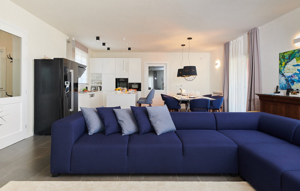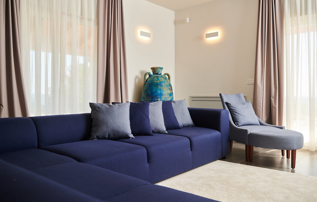 L'intérieur de la villa Rainis Hill Top vous séduira par son style d'aménagement moderne. Le rez-de-chaussée de la villa comprend un salon élégamment aménagé avec une cheminée, une salle à manger et une cuisine entièrement équipée. Au même étage se trouvent deux chambres à coucher avec salle de bain privée ainsi qu'un WC séparé. Au premier étage se trouvent deux autres magnifiques chambres à coucher avec salle de bain privée ainsi qu'un bureau.