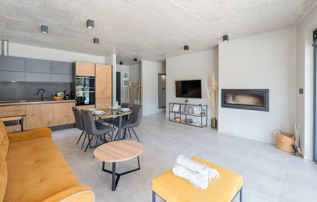L'intérieur de la Villa Fran se caractérise par un style moderne élégant. Le salon est aménagé de façon moderne, mais les meubles chaleureux, la cheminée et la magnifique vue sur les beaux environs à travers de grandes baies vitrées créent une atmosphère détendue. Une salle à manger et une cuisine entièrement équipée aux tons feutrés s'étendent depuis le salon. Au rez-de-chaussée se trouvent également deux chambres spacieuses et confortables avec leurs propres salles de bains élégamment aménagées.