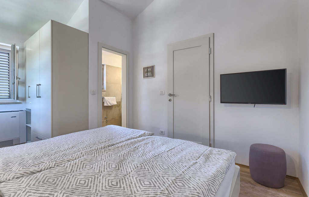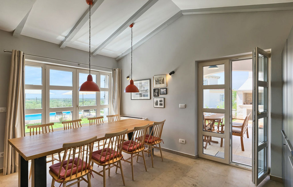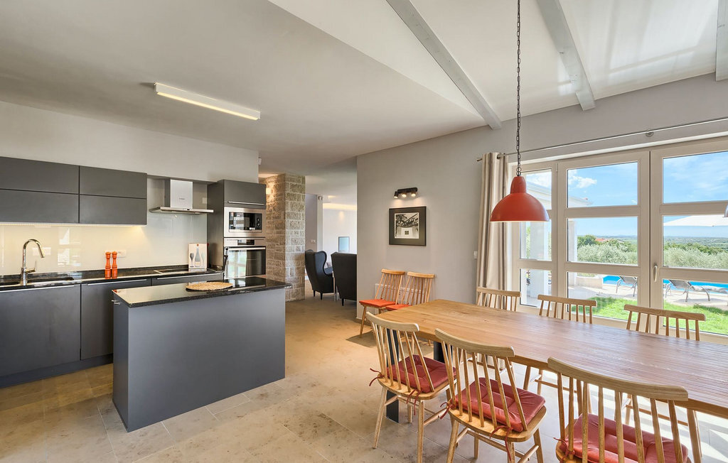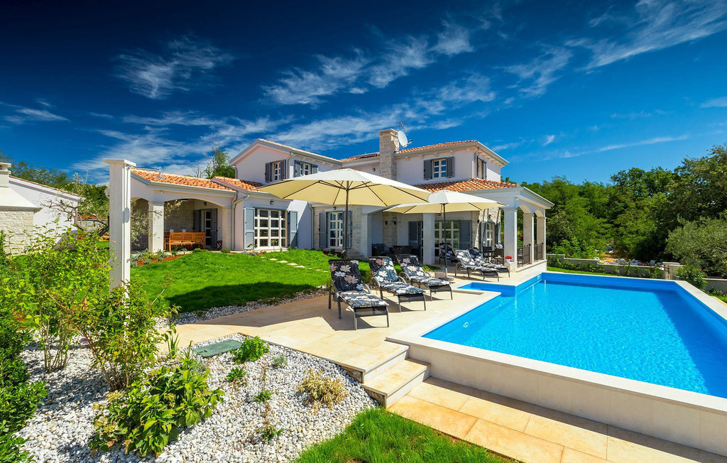 Vous rêvez de passer vos vacances dans une toute nouvelle villa de luxe avec une vue magnifique sur la mer Adriatique et les oliveraies avoisinantes ? Dans ce cas, la villa Carpe Diem pourrait être idéale pour vous ! Grâce à sa situation, cette villa est ensoleillée et lumineuse toute la journée. De plus, elle est extrêmement confortable grâce à son équipement complet. Au rez-de-chaussée de la villa, vous trouverez le salon, équipé d'un système stéréo et d'une grande télévision à écran plat. À côté du salon se trouve une élégante cuisine moderne avec un coin repas. La villa dispose au total de 4 chambres, chacune avec une salle de bain privée, et peut accueillir jusqu'à 8 personnes. Une chambre se trouve au rez-de-chaussée, tandis que 3 autres chambres sont réparties au premier étage. L'espace extérieur extrêmement charmant offre de confortables chaises longues depuis lesquelles vous pourrez profiter du chaud soleil d'Istrie au bord de la piscine. Si vous préférez l'ombre, plusieurs terrasses couvertes et deux salles à manger sont à votre disposition. A l'arrière de la villa se trouve une pelouse bien entretenue où les plus jeunes pourront s'amuser.La villa est située près d'un charmant village appelé Kastelir. Elle est proche de la ville de Porec et de ses plages ... Les magasins et les restaurants sont accessibles en quelques minutes à pied. Les zones d'intérêt comprennent les villes médiévales de Motovun et Groznjan, ainsi que les villes côtières de Rovinj et Vrsar. Un peu plus loin, les îles Brijuni, l'amphithéâtre romain de Pula et une excursion d'une journée à Venise sont des excursions recommandées qui sont de cette région. Pour les amateurs de golf, il y a un club de golf à Umag et un terrain de golf sur la magnifique île de Brijuni, à seulement 50 km de la villa. Le parc aquatique primé Istralandia se trouve également à proximité, lieu idéal pour passer une journée amusante au soleil avec toute la famille.