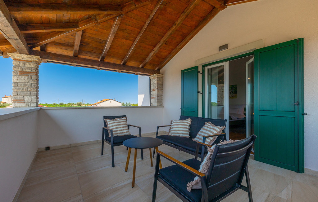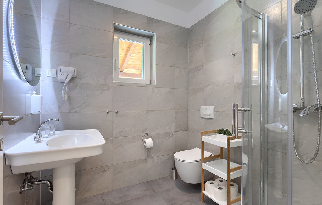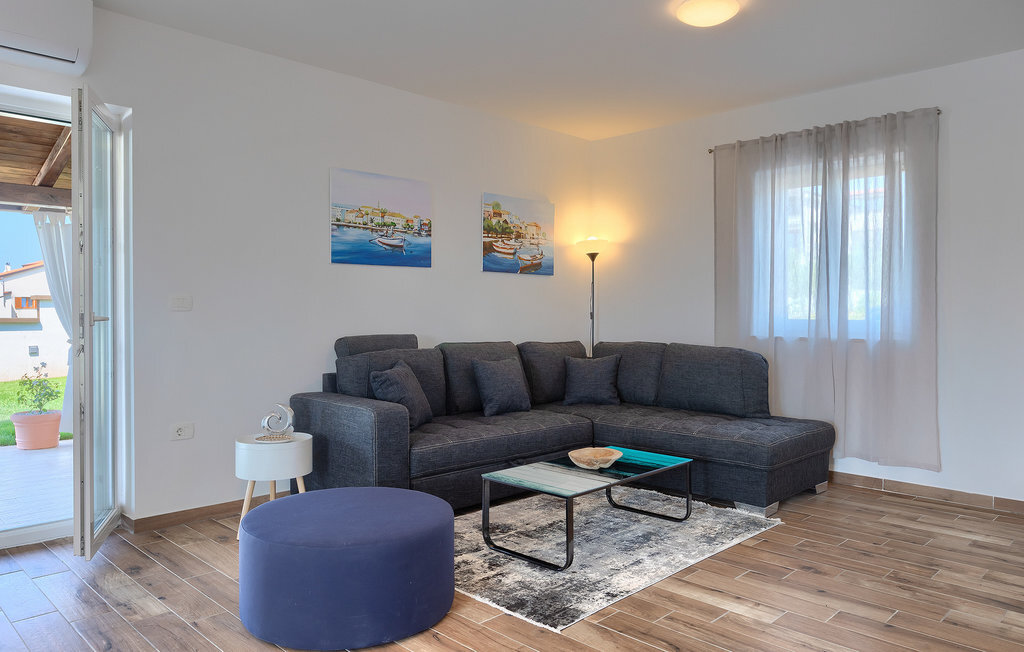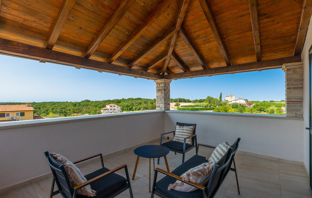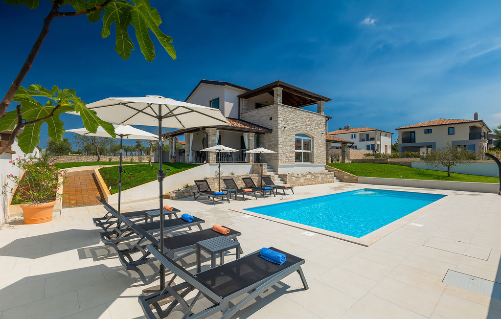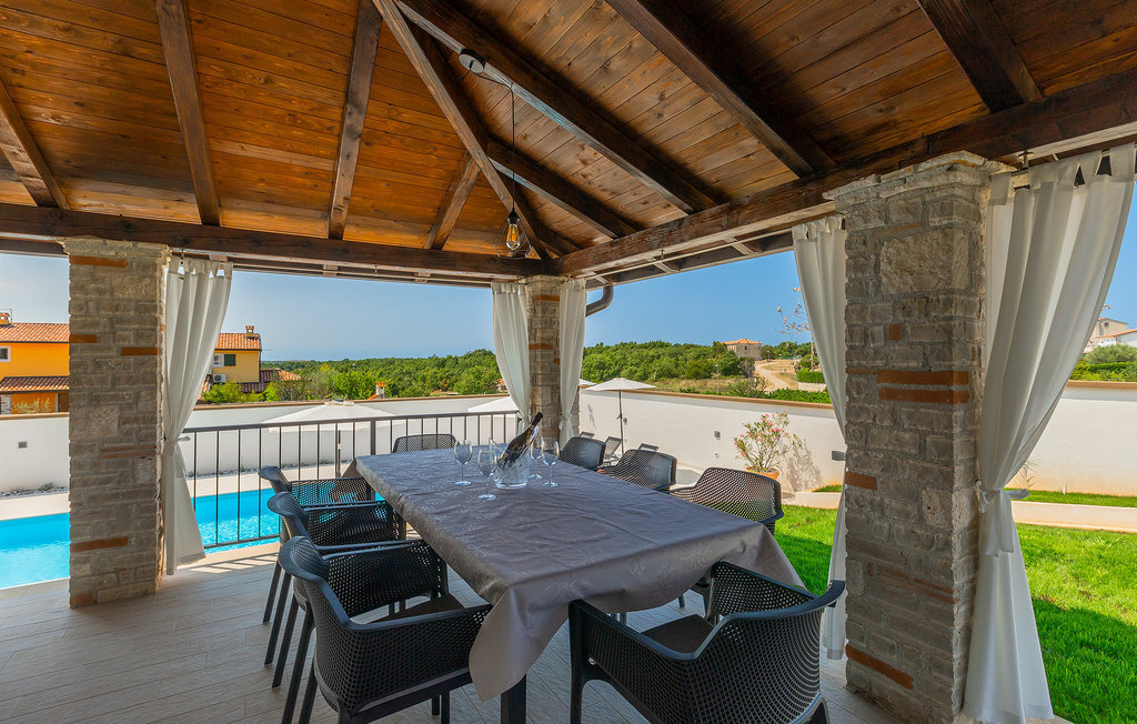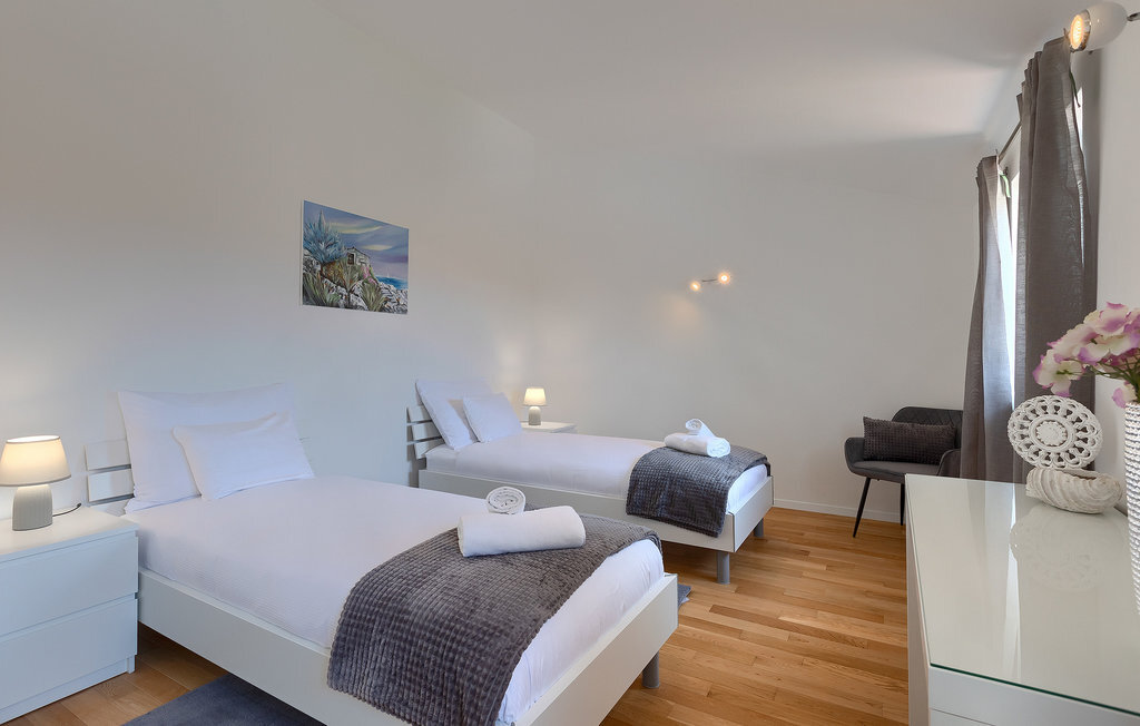 La magnifique villa Victoria Brtonigla est une véritable oasis où vous trouverez calme et détente, loin du stress de la vie quotidienne. La piscine rafraîchissante de 40m2 attirera votre attention dès votre arrivée à la villa. Il vous sera difficile de résister à l'envie de plonger dans l'eau fraîche. La piscine est entourée de chaises longues confortables sur lesquelles vous pourrez profiter du soleil d'Istrie tout en regardant les enfants jouer dans le jardin ou en feuilletant votre magazine préféré. À l'extérieur de la maison, chacun trouvera sa place préférée. La terrasse couverte avec cuisine d'été et grande table à manger sera probablement l'endroit où vous planifierez vos excursions dans la région en mangeant des plats fraîchement préparés au barbecue. De la terrasse, vous accédez directement à l'espace de vie ouvert et climatisé comprenant un salon, une salle à manger et une cuisine entièrement équipée. Une des chambres à coucher se trouve également au rez-de-chaussée. Cette chambre à coucher avec lit double dispose d'une salle de bain privée et d'un accès à sa propre petite terrasse. Des toilettes séparées pour les invités et une buanderie avec lave-linge et sèche-linge complètent ce niveau. À l'étage supérieur, trois autres chambres confortables promettent des nuits reposantes. L'une des chambres dispose de sa propre salle de bains, les deux autres chambres se partagent une salle de bains séparée. Une de ces chambres a deux lits simples, les autres chambres ont des lits doubles.