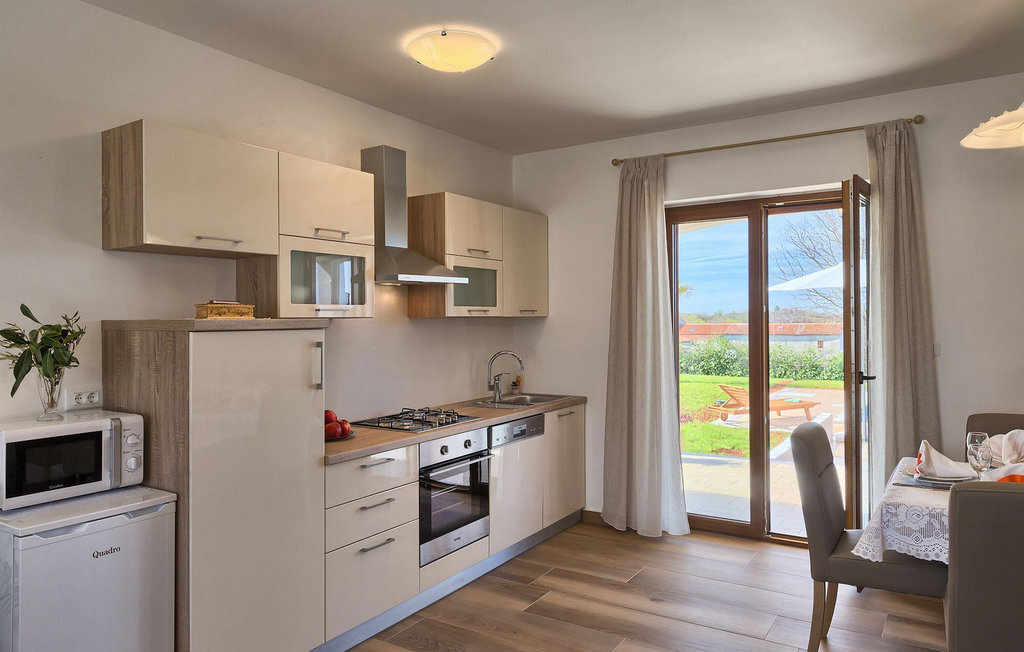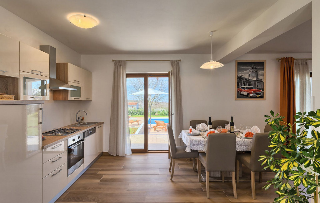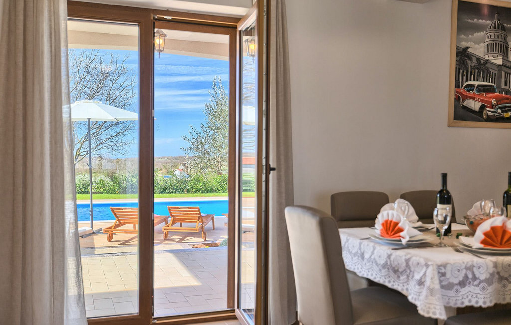 Cette belle villa familiale se trouve dans un petit village d'Istrie et est idéale pour 6 personnes, car elle dispose de 3 chambres à coucher, mais grâce au canapé-lit dans le salon, la villa peut accueillir jusqu'à 8 personnes. La Villa Montreo, située sur un terrain de 600 m2, est le logement familial parfait. Vous avez à votre disposition la piscine privée avec des chaises longues, un barbecue au charbon de bois, le jardin spacieux avec des balançoires pour les enfants et un baby-foot et des fléchettes au rez-de-chaussée inférieur pour vous amuser encore plus pendant vos vacances reposantes. Outre la cuisine lumineuse avec coin repas, équipée de tout ce dont vous pouvez avoir besoin pendant votre séjour, le rez-de-chaussée comprend un salon, des toilettes séparées et une chambre avec salle de bain privée. L'étage supérieur comprend les deux autres chambres à coucher et les salles de bain. Toutes sont climatisées et disposent d'un lit double. Dans l'une des chambres à l'étage, le lit peut être divisé en deux lits simples si nécessaire. Les chambres à l'étage supérieur ont accès à un balcon où vous pourrez profiter de la vue sur l'environnement paisible de l'Istrie.La villa est située dans un petit village du centre de l'Istrie. L'emplacement est parfait pour ceux qui souhaitent passer des vacances reposantes. Toutes les curiosités de l'Istrie et de la côte adriatique sont néanmoins accessibles en un court trajet en voiture. Vous pouvez acheter des produits frais directement auprès des agriculteurs du village. La petite ville typiquement istrienne de Tinjan se trouve à moins de 5 km de la villa. Avec ses paysages à couper le souffle, cette région est idéale pour ceux qui aiment se promener et faire du vélo. En ce qui concerne la gastronomie, l'Istrie centrale est connue pour son huile d'olive vierge, son prosciutto et sa malvasia, qui sont appréciés dans tout le pays. Si vous souhaitez visiter les plages, vous pouvez très facilement vous rendre sur la côte ouest de l'Istrie, par exemple dans la région de la ville historique de Porec. Une excursion d'une journée dans le parc national de Brijuni, la visite de la baie de Lim ou de la ville de Porec est toujours une bonne idée.